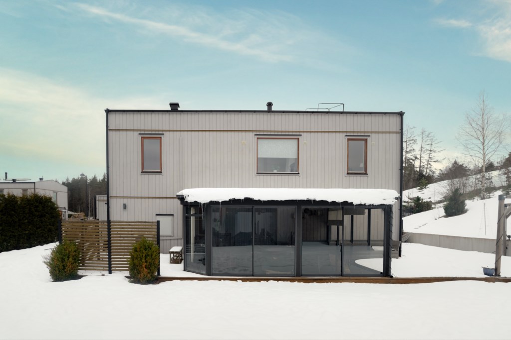 Altanen och uterummet blir en naturlig samlingspunkt under stora delar av året, med plats för både matgrupp och loungemöbler – perfekt för långa middagar och sociala stunder med familj och vänner.