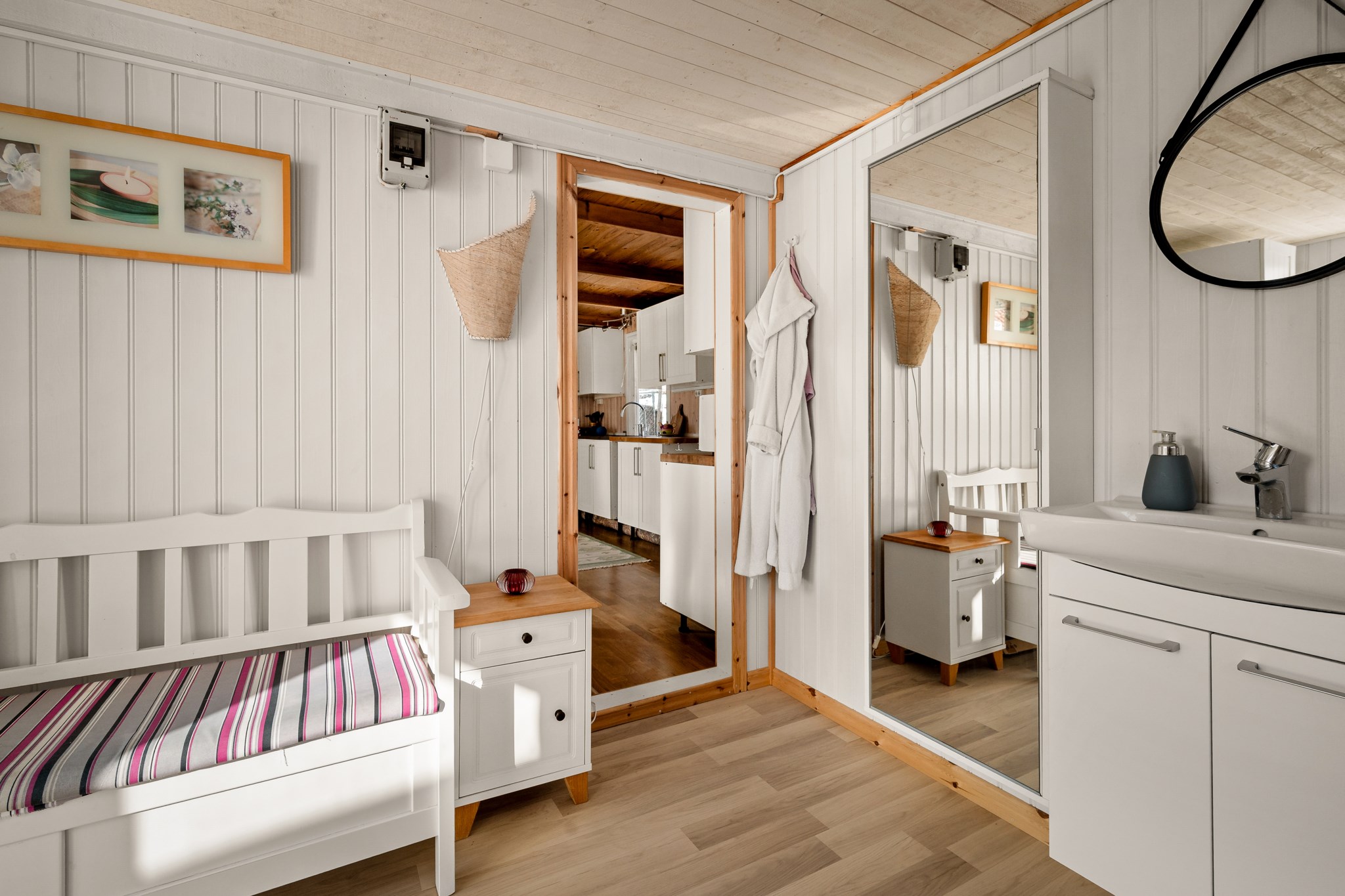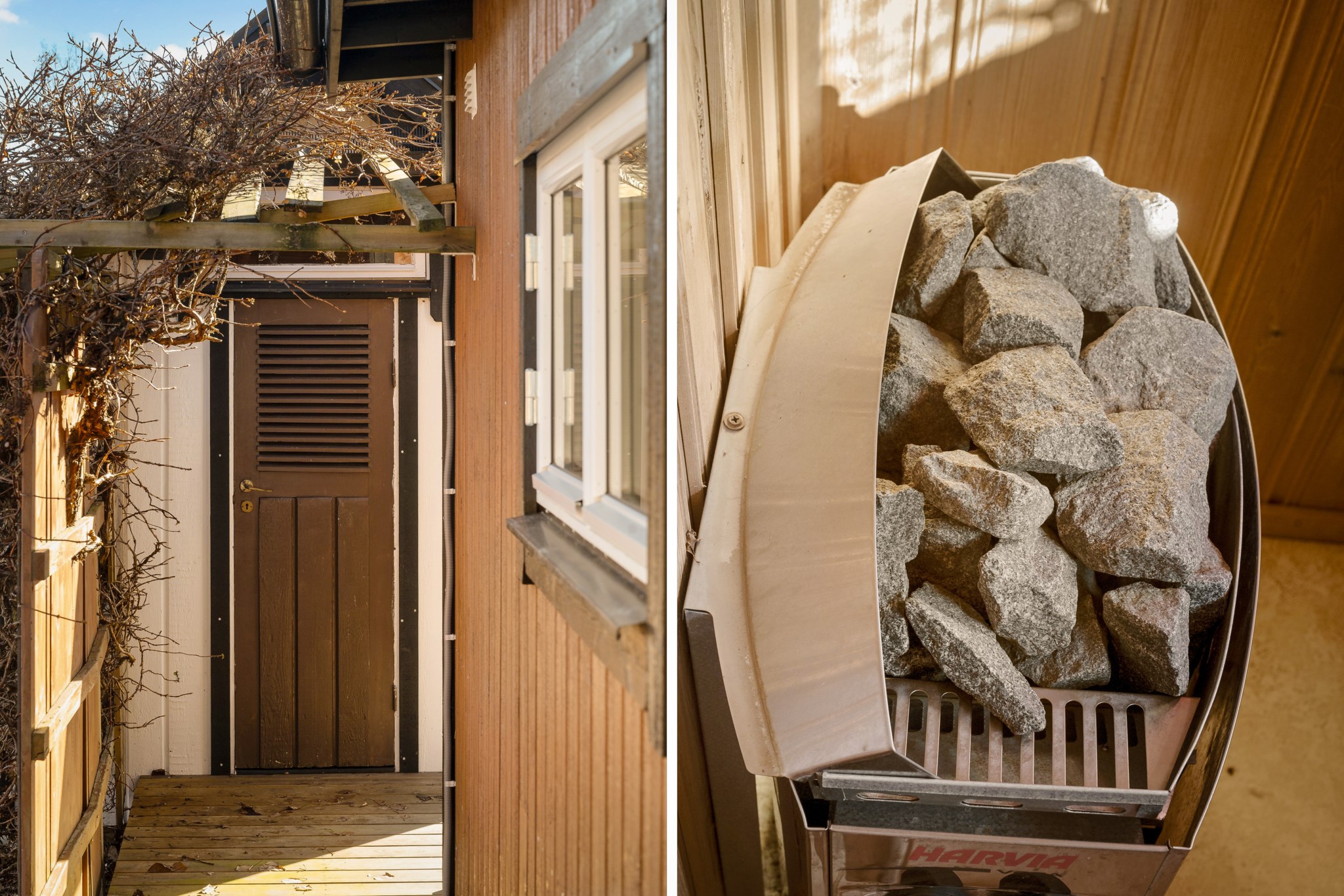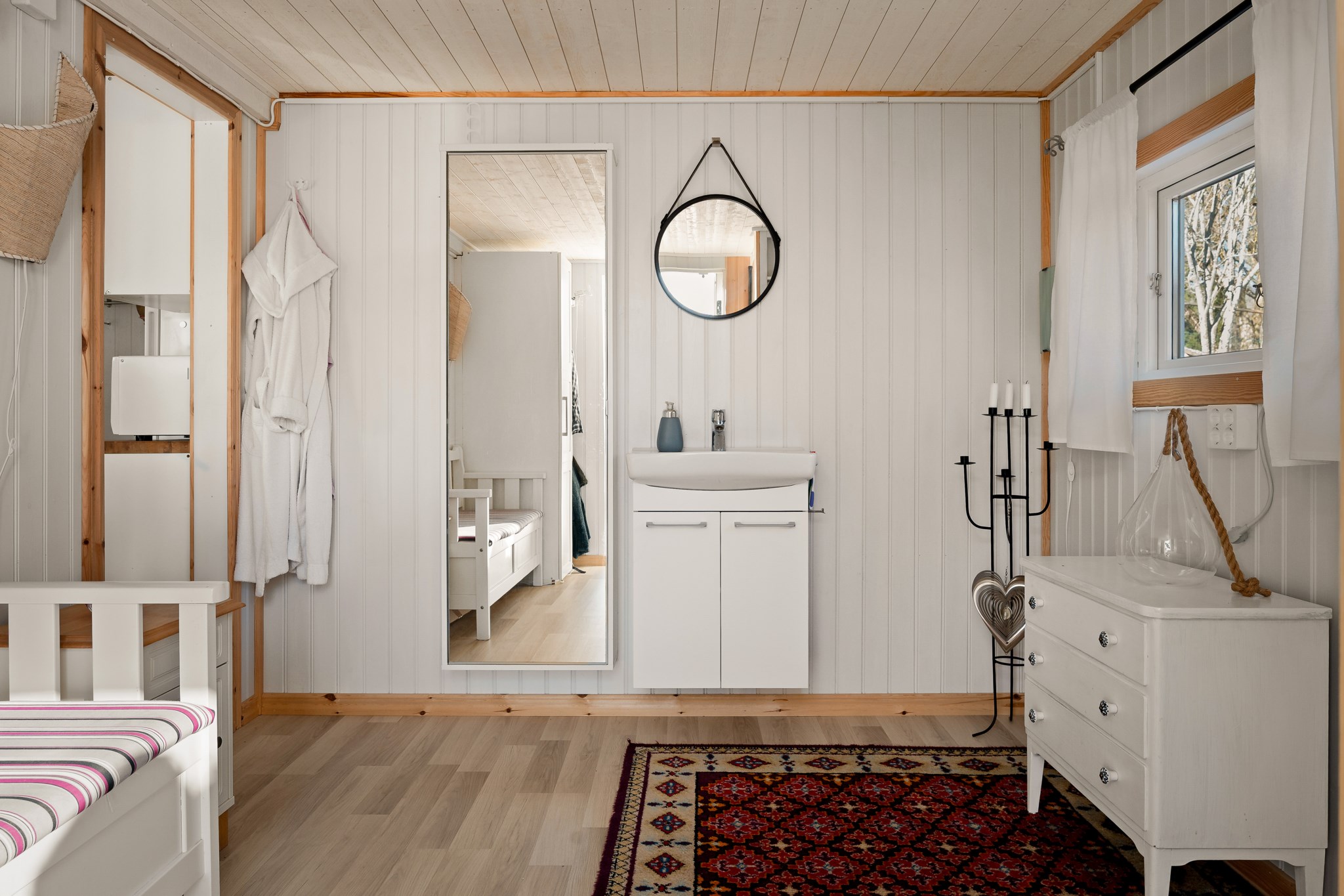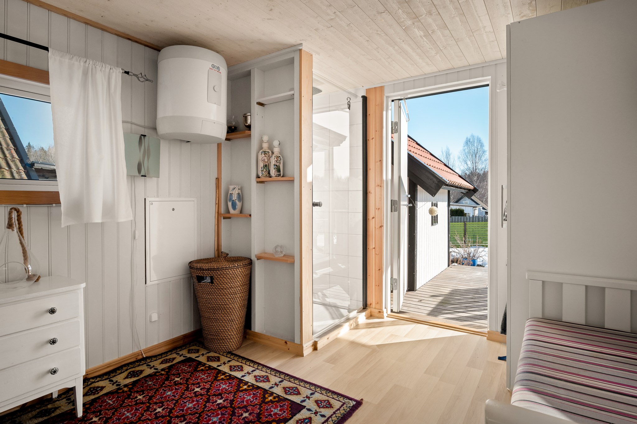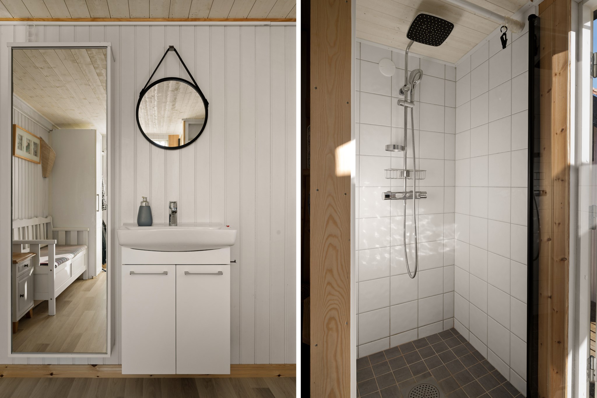 Badrummet är fräscht och rymligt med handfat och helkaklad dusch. I direkt anslutning väntar bastun - den perfekta platsen att koppla av och varva ner efter en lång dag.