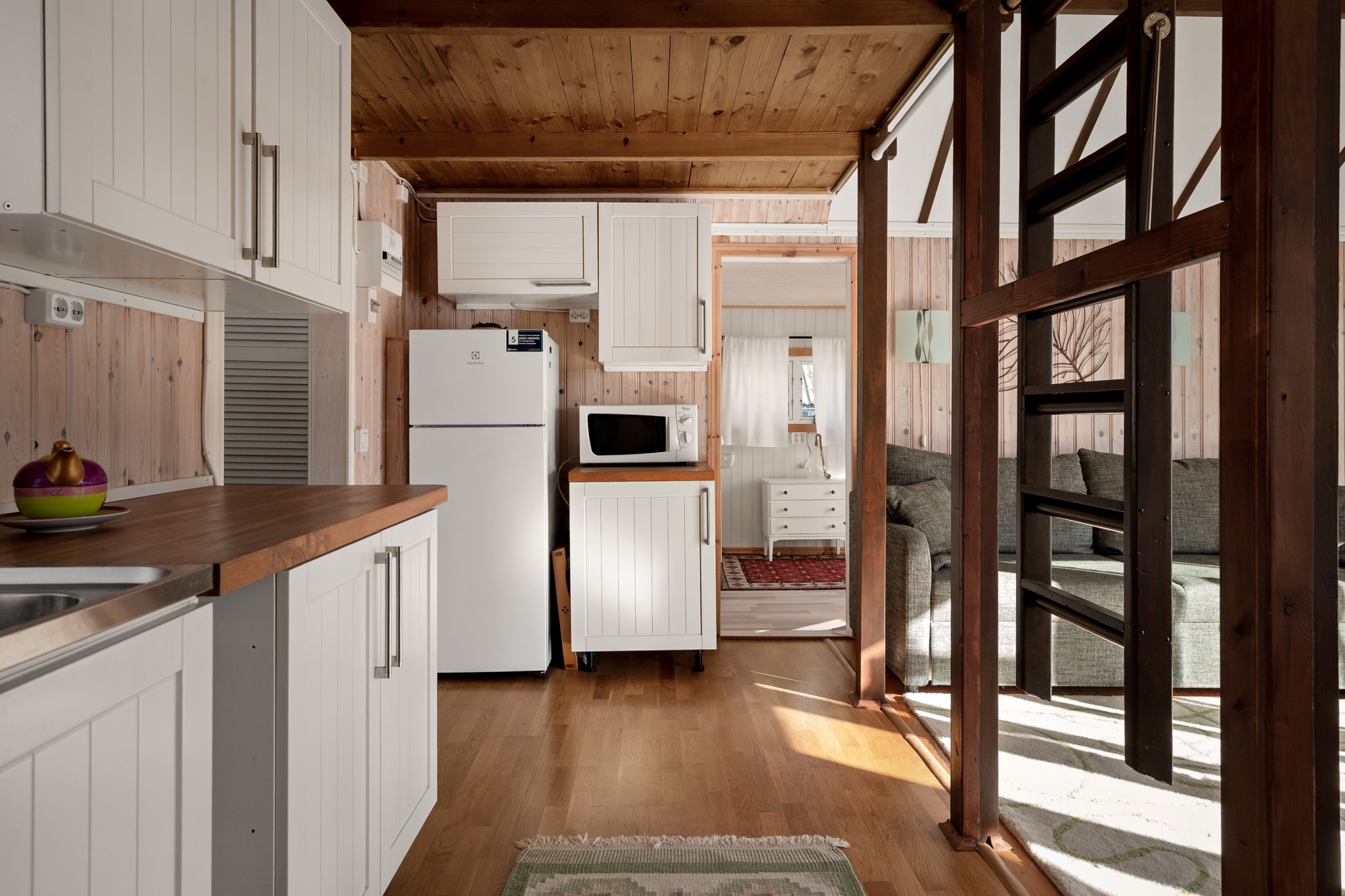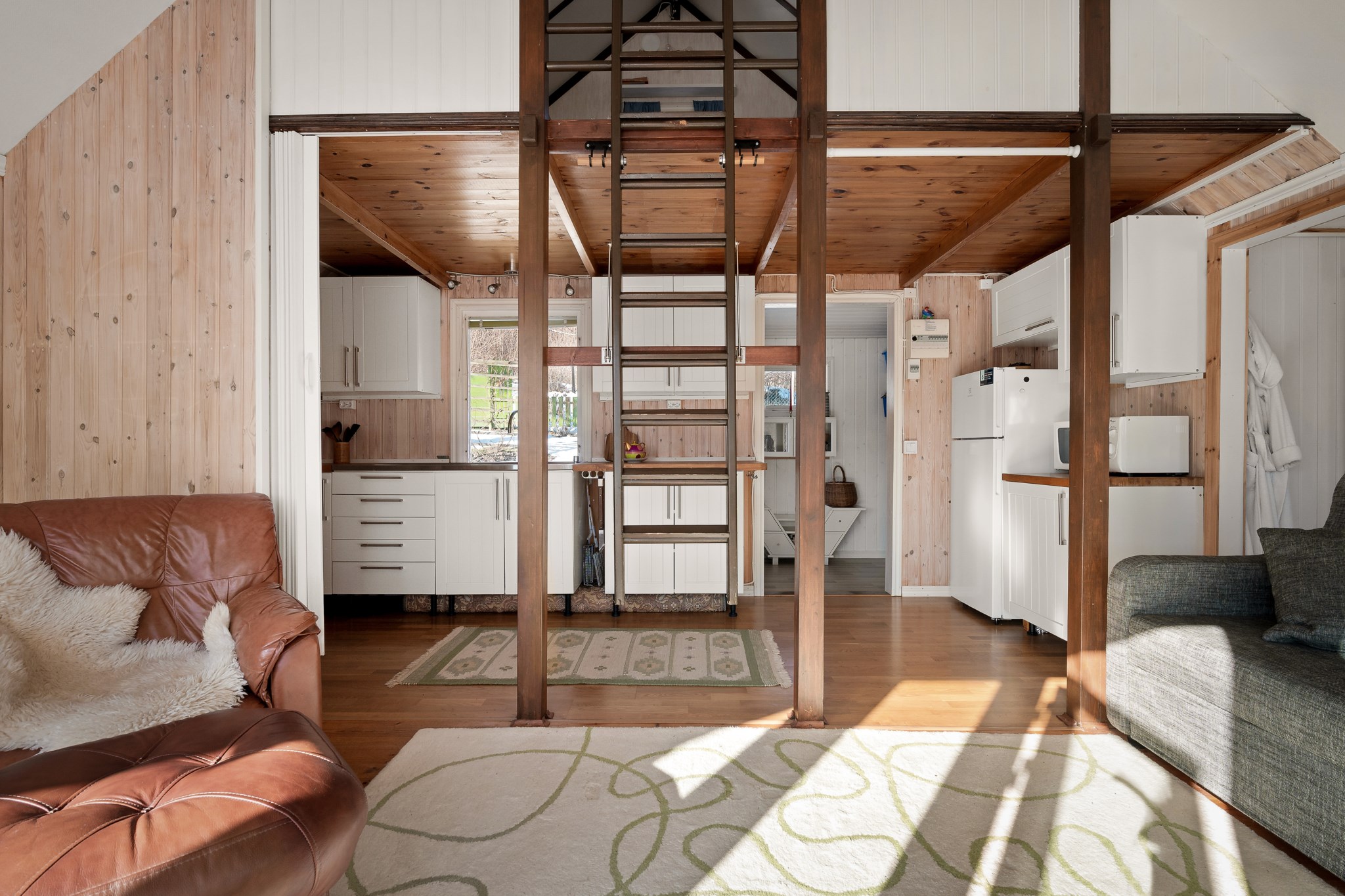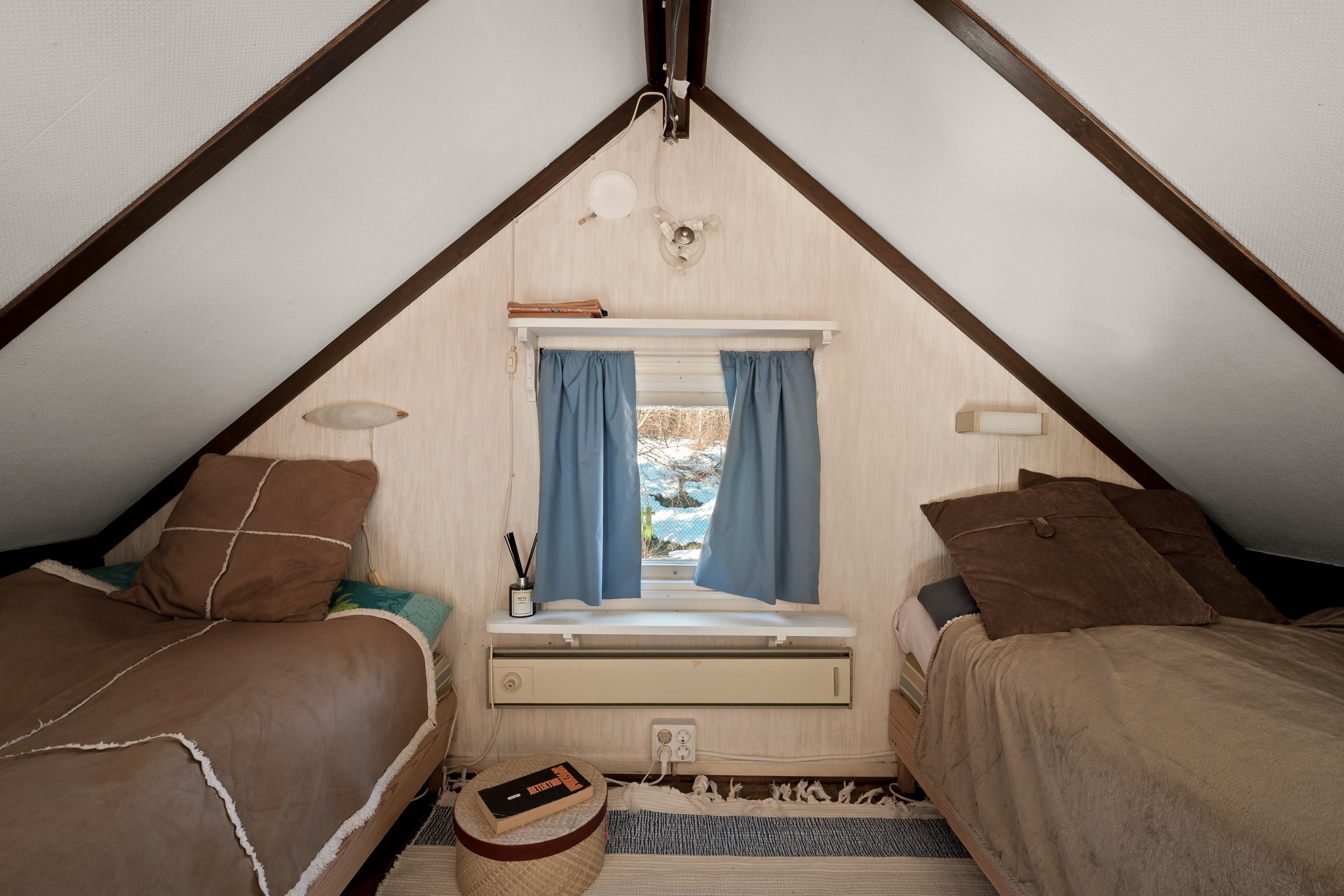 Ovanför allrummet finns ett mysigt sovloft med plats för två bäddar - en perfekt liten oas för vila efter dagens äventyr. Här får både familj och gäster en trivsam plats att landa på.