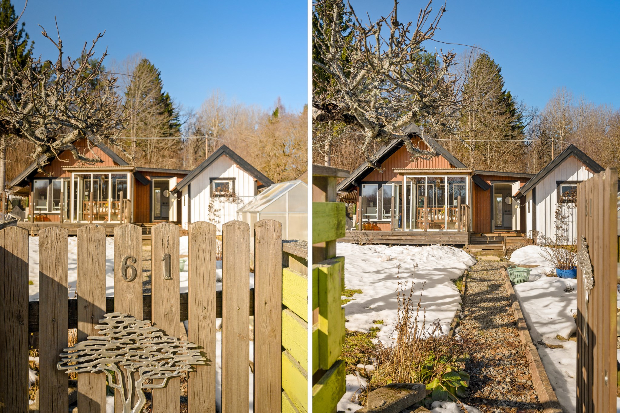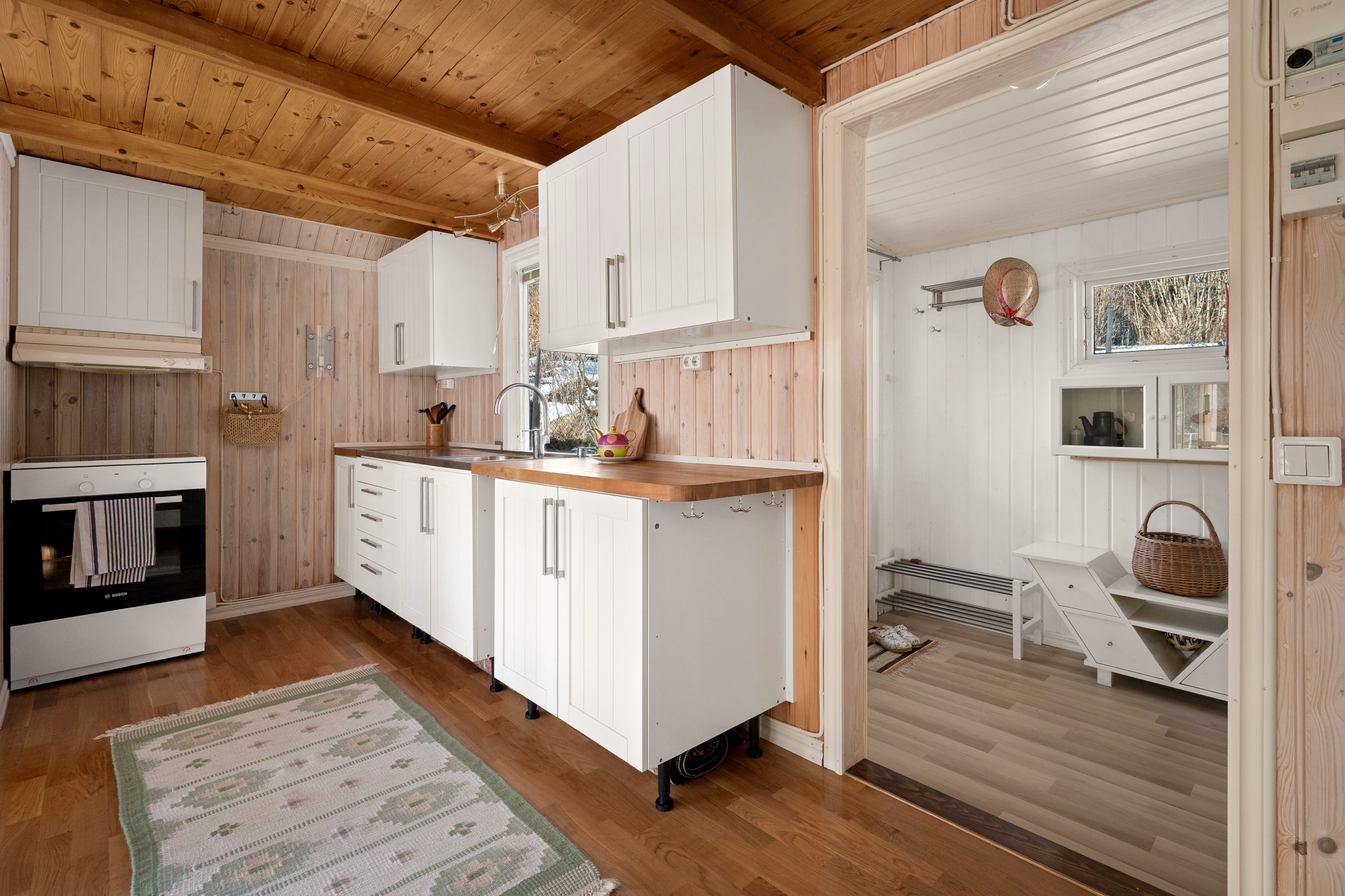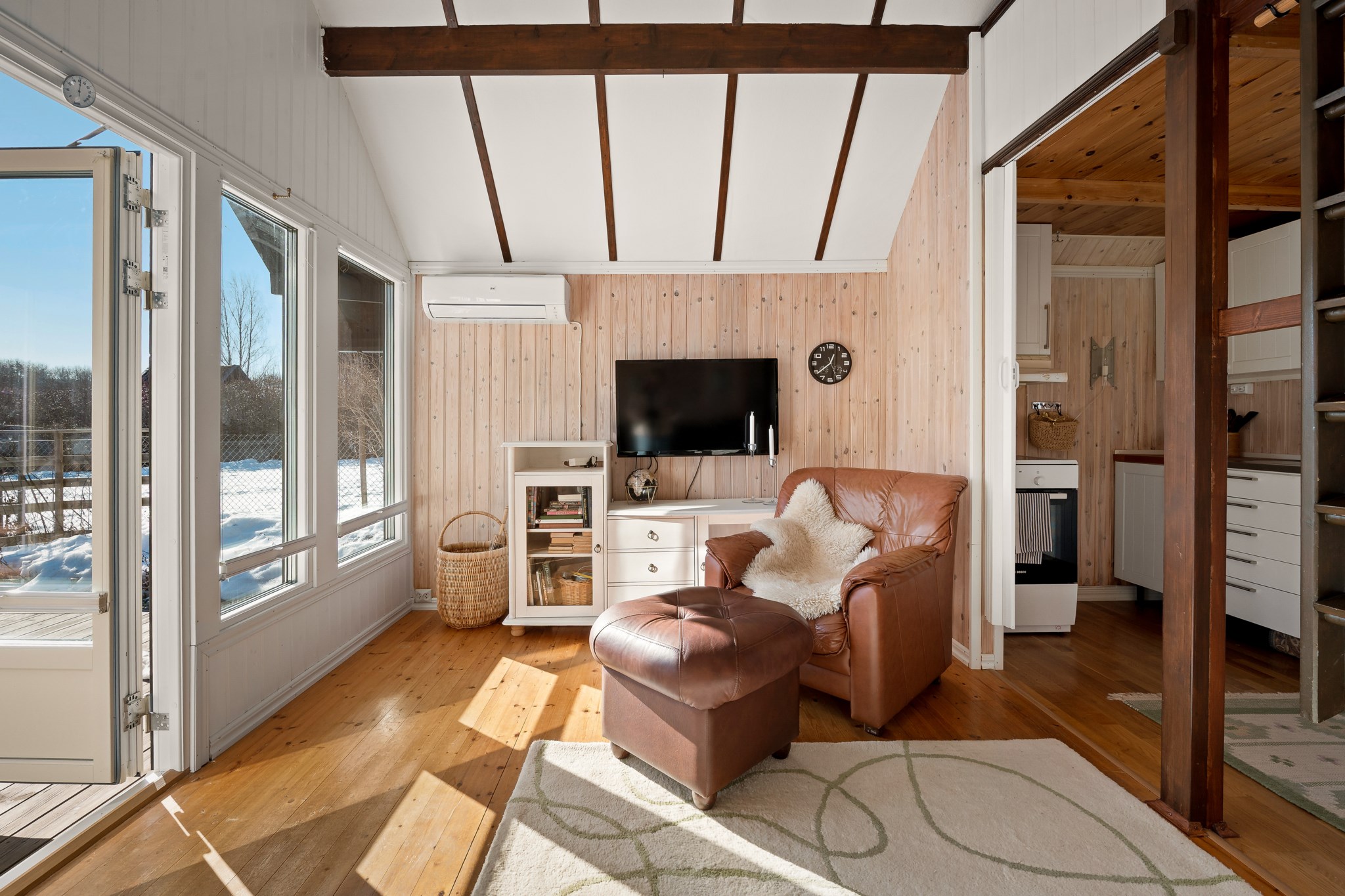 Detta smakfullt nyrenoverade fritidshus om 25 kvm ligger på en attraktiv hörntomt med skogen som närmaste granne. Tomten är lummig och grönskande med flera fruktträd och bärbuskar som skapar en idyllisk och trivsam miljö - perfekt för både avkoppling och sommarens skördestunder. Här bor du i ett rofyllt läge där fågelkvitter och naturens stillhet bidrar till en harmonisk atmosfär.