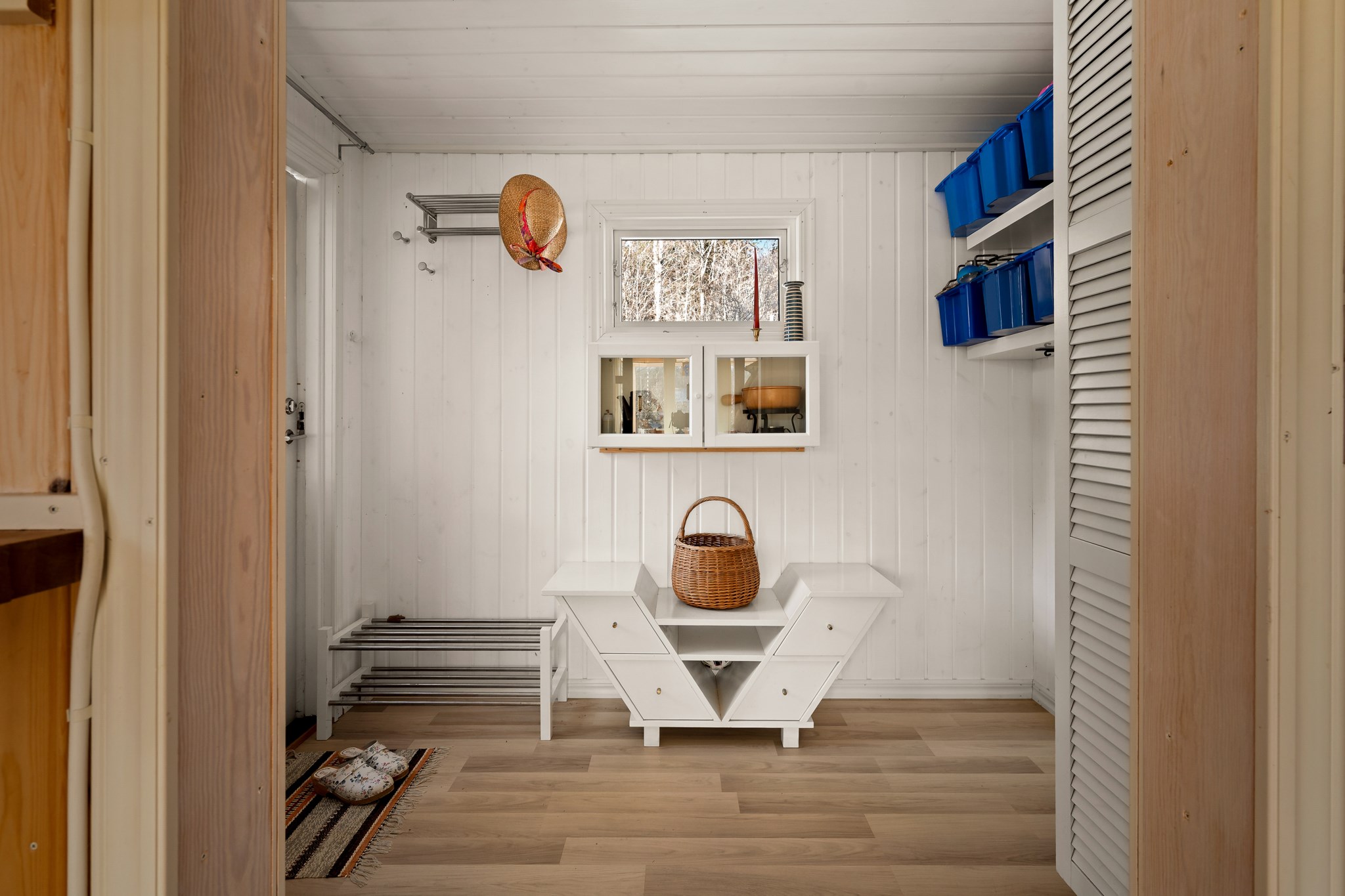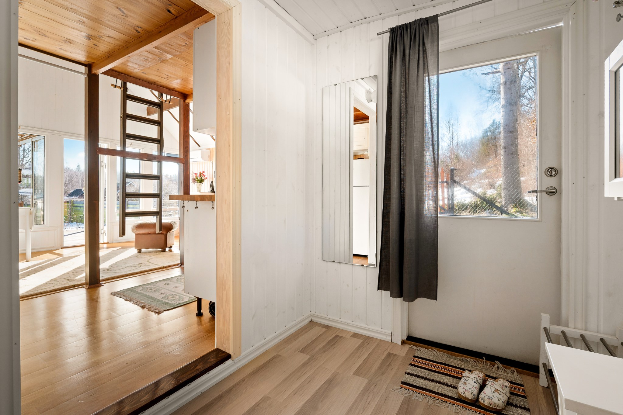 Redan i hallen möts du av en välkomnande känsla med plats för ytterkläder och skor. Vidare öppnar bostaden upp sig i en luftig planlösning mellan kök och allrum. Den generösa takhöjden upp till nock ger rummet en härlig rymd och släpper in fint ljus som gör hemmet både öppet och inbjudande.