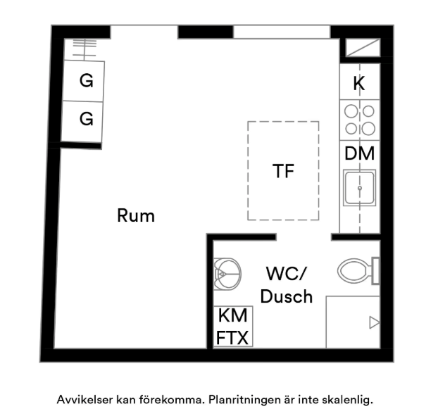 Smart planerad studioetta i nyskick!