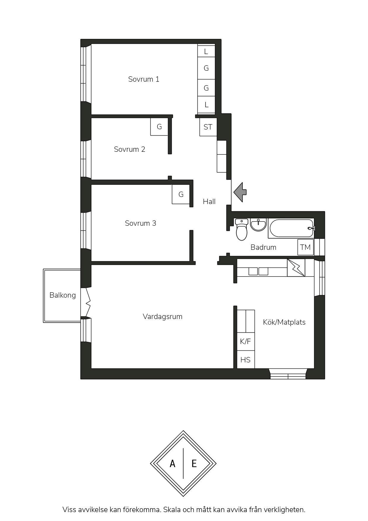 Ljus hörnfyra med fönster i tre väderstreck och balkong i sydväst!