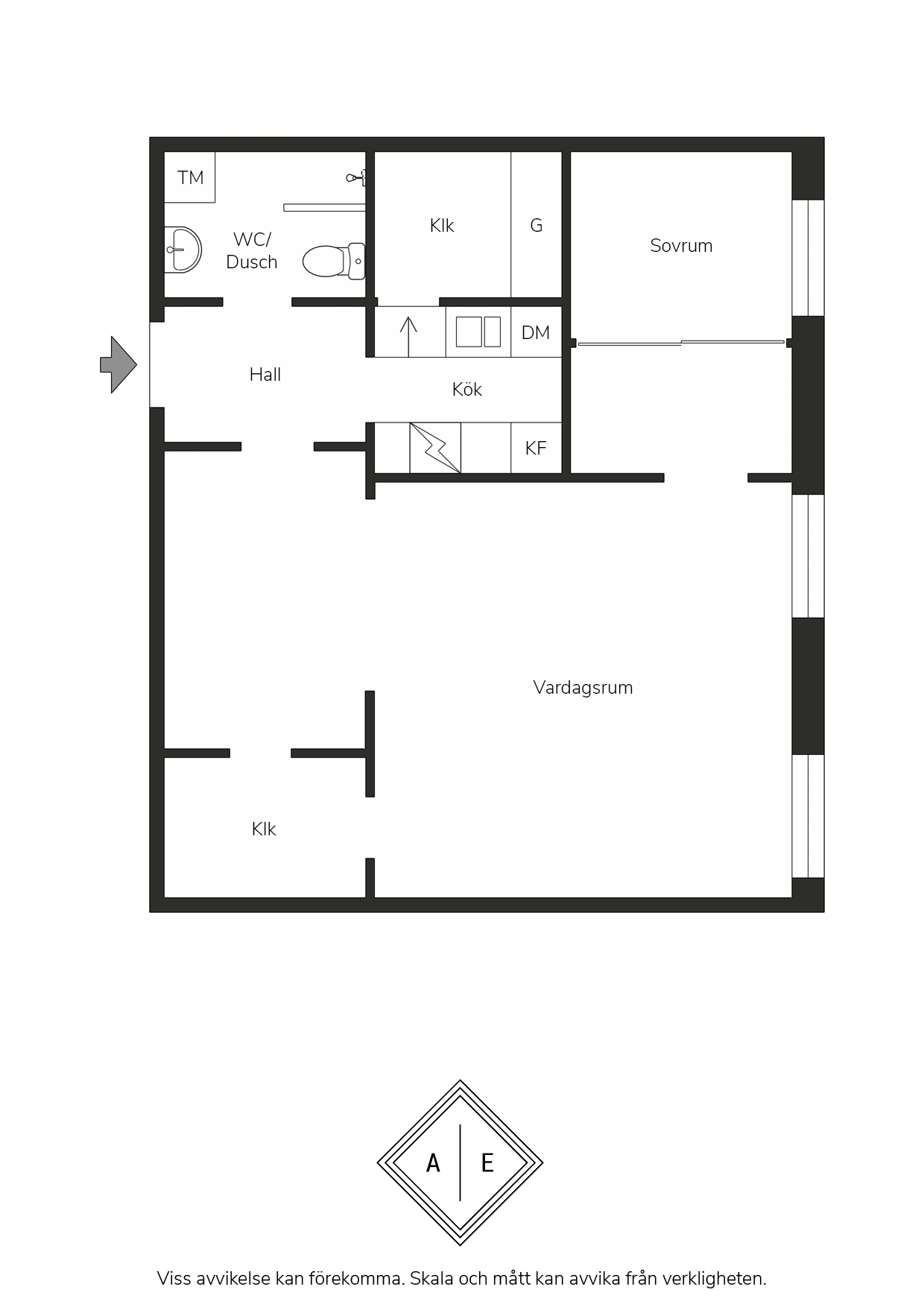 Välkomnande och rymlig hall med goda förvaringsmöjligheter i en garderob direkt vid entrén. Hallen leder vidare in i ett förlängt rum som idag disponeras som matsal, vilket skapar en luftig och flexibel planlösning med fina sociala ytor.