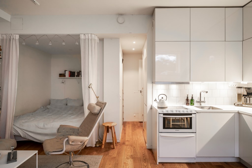 Bostaden erbjuder ett fullt utrustat kök med diskmaskin, avskild sovalkov samt smarta förvaringslösningar. Smakfullt renoverat badrum.