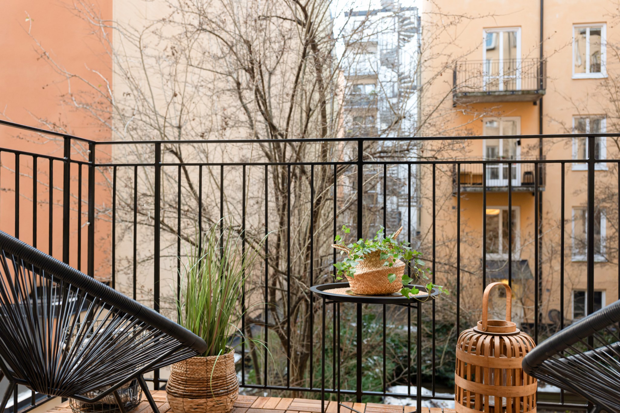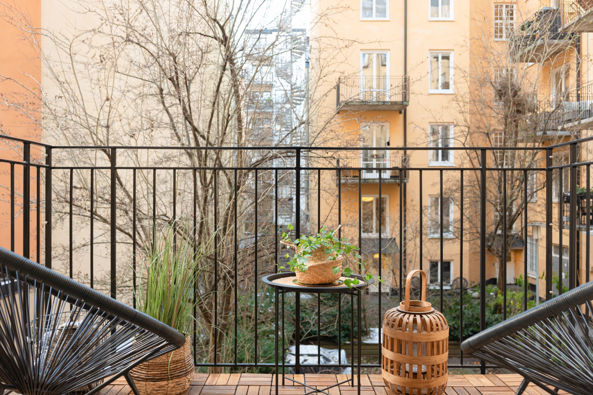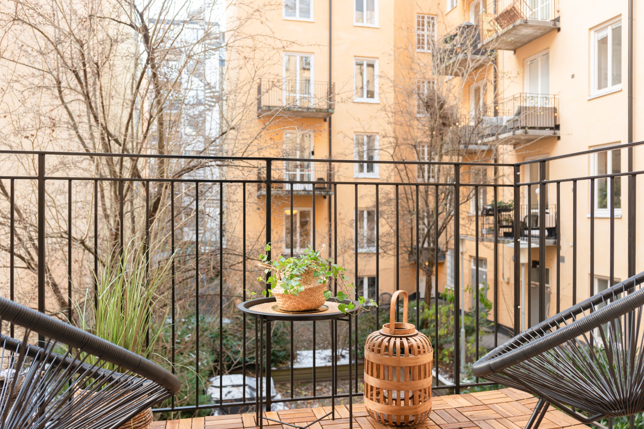 Till lägenheten hör en stor balkong i bra skick. Balkongen har ny trall samt ny målat räcke.