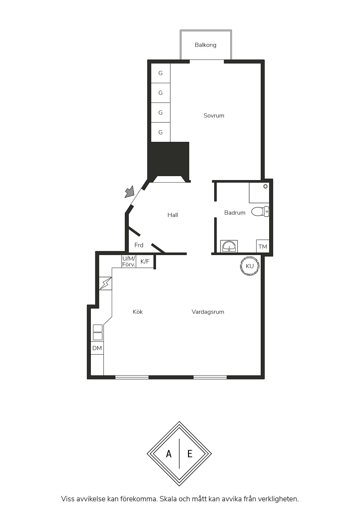 Den sociala sällskapsdelen rymmer både matplats och soffgrupp och erbjuder goda förvaringsmöjligheter i genomtänkta lösningar. Sovrummet är rofyllt med plats för dubbelsäng, bra förvaring och utgång till balkong i lugnt läge. Renoverat badrum med tvättmaskin.