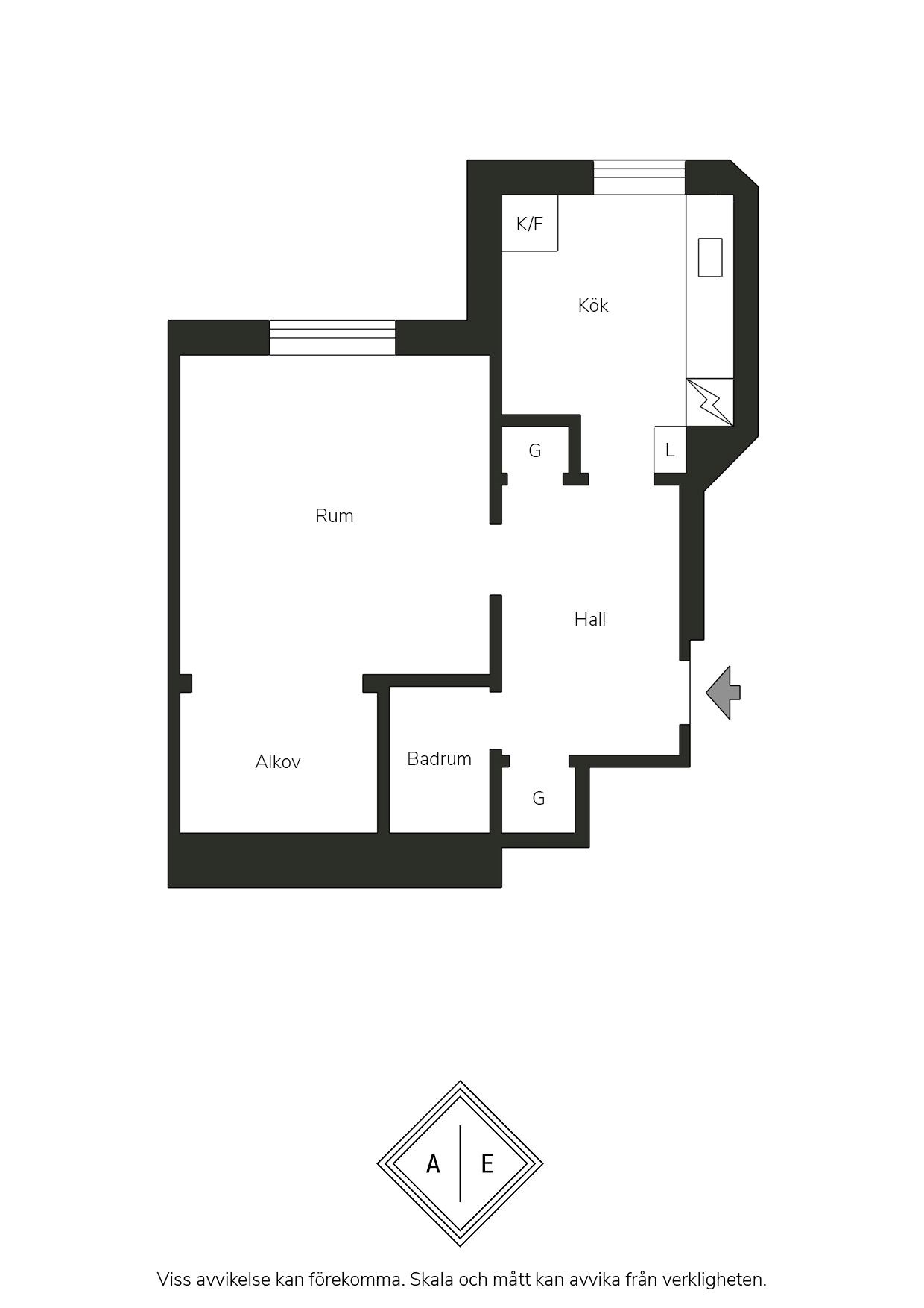 Bostaden präglas av en harmonisk kombination av tidstypiska detaljer såsom spröjsat fönsterparti, generös takhöjd, spegeldörrar, trägolv och köksskåp med god förvaring – allt i en tydlig och charmig 30-talskaraktär. Golven i hall och allrum är nyslipade och både väggar och tak är nyligen målade, vilket ger ett fräscht och enhetligt intryck. Allrummet är socialt och rymligt med plats för både soffgrupp och en avskild sovdel i alkoven. Köket är funktionellt utformat med generösa förvaringsmöjligheter och utrymme för en mindre matplats, och nås via en vacker speglad dörr från den välkomnande hallen. Det vitkaklade badrummet är utrustat med badkar. Bostaden har dessutom god potential att disponeras som en 2:a. Se alternativ planlösning.