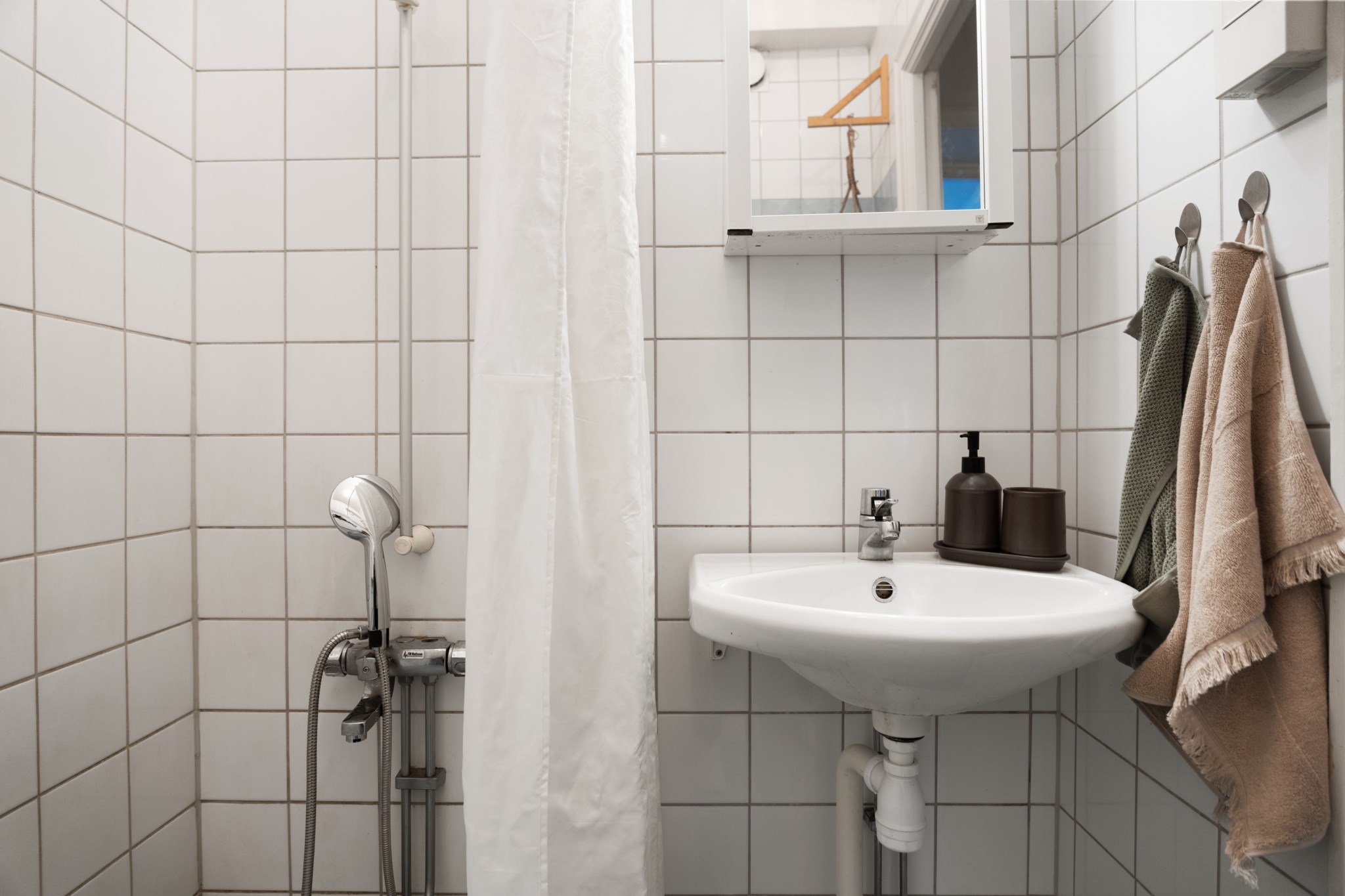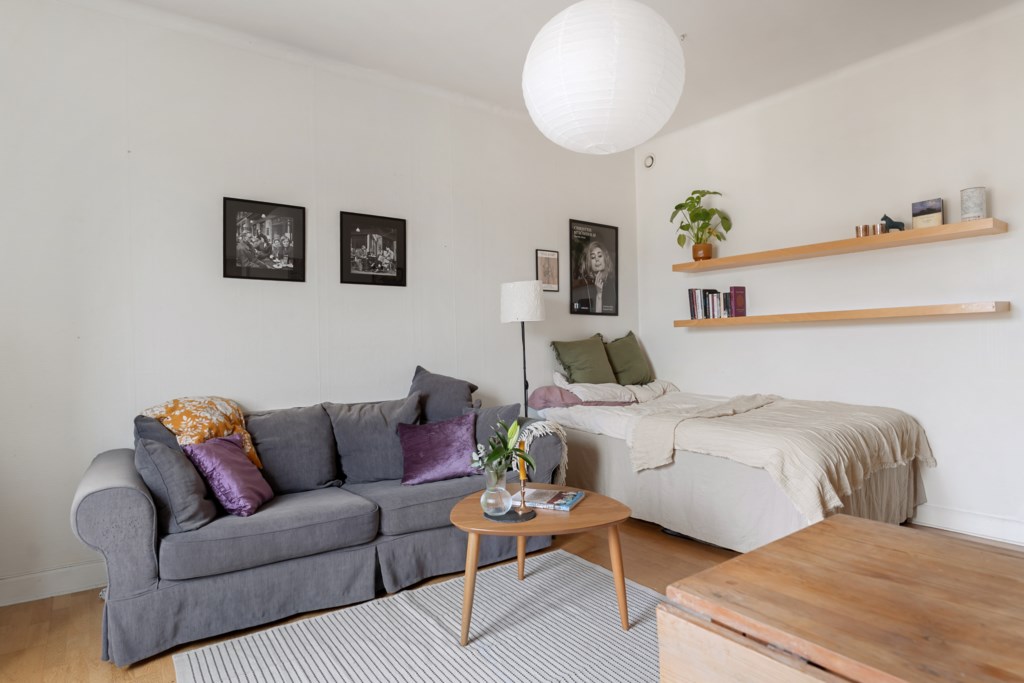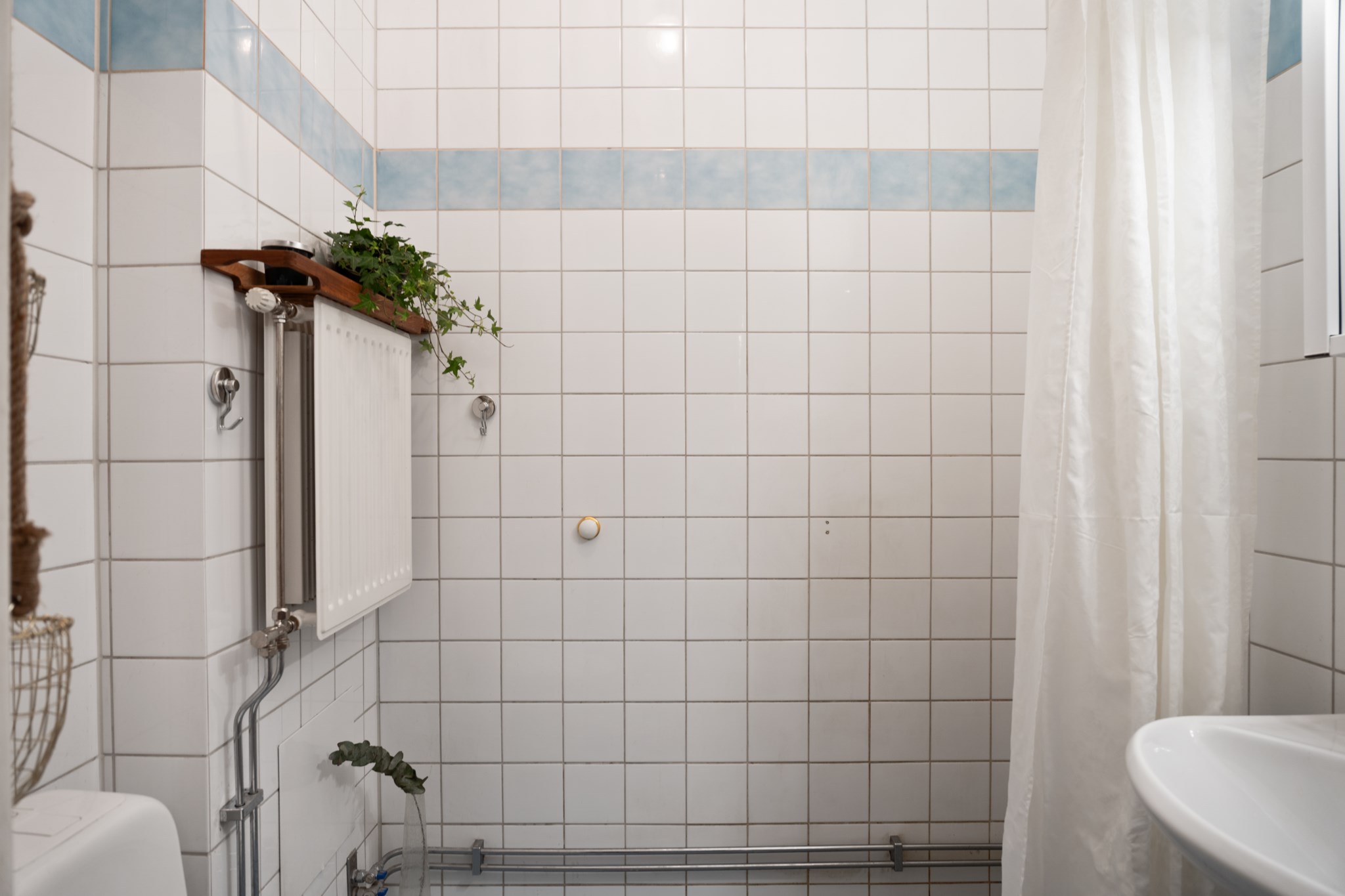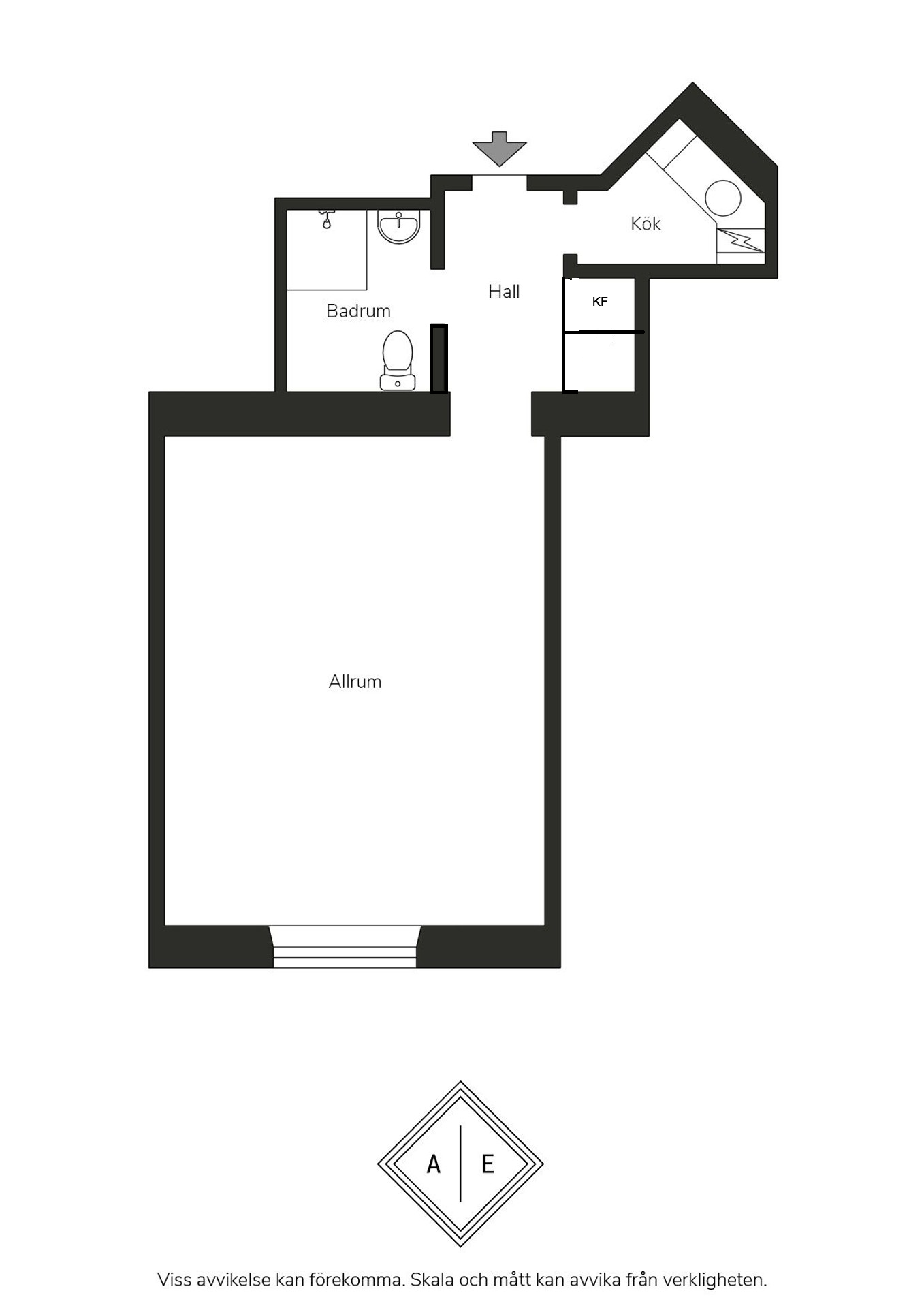 HALLLjus och välkomnande hall med ljusa målade väggar och trägolv. Förvaring i form av inbyggd garderob och avhägningsmöjligheter via hatthylla. KÖKFräscht kök med vita köksluckor, bänkskiva i trä och mörkt stänktskydd. Köks maskinella utrustning består av spis, ugn, fläkt samt kylskåp. Det är ljusa målade väggar och trägolv. ALLRUMRymligt och luftigt allrum med ljusa målade väggar och parkettgolv. Rummet rymmer säng, soffmöbel, mindre matgrupp samt övrig inredningsmöbel efter behov. Förvaring i form av garderob. Härligt ljusinsläpp via fönster. BADRUMLjus badrum med vita kaklade väggar med ljusblåa detaljer och ljusblått klinkergolv. Badrummet består av WC-stol, handfat med spegelskåp samt dusch. FÖRRÅDFööråd