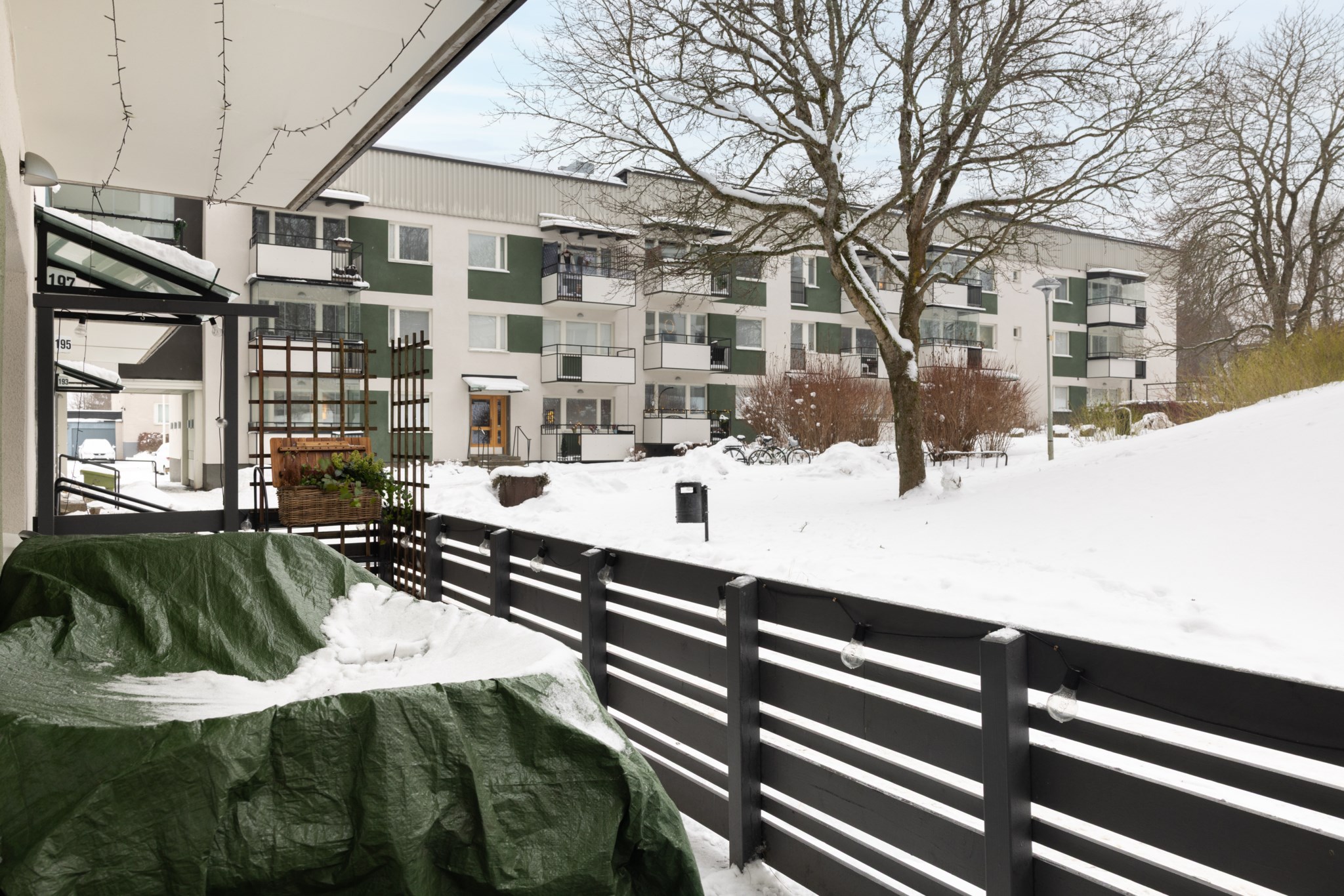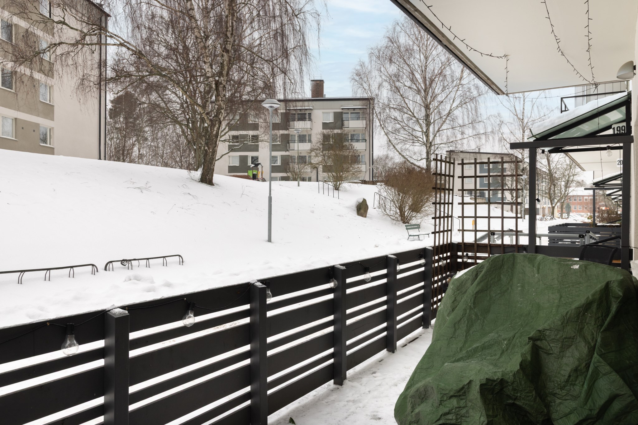 Pricken över i:et är den generösa uteplatsen – en riktig oas som förlänger bostaden under årets varmare månader. Här finns gott om plats för loungemöbler, grill och planteringar – perfekt för avkoppling, sociala stunder och morgonkaffet i solen.