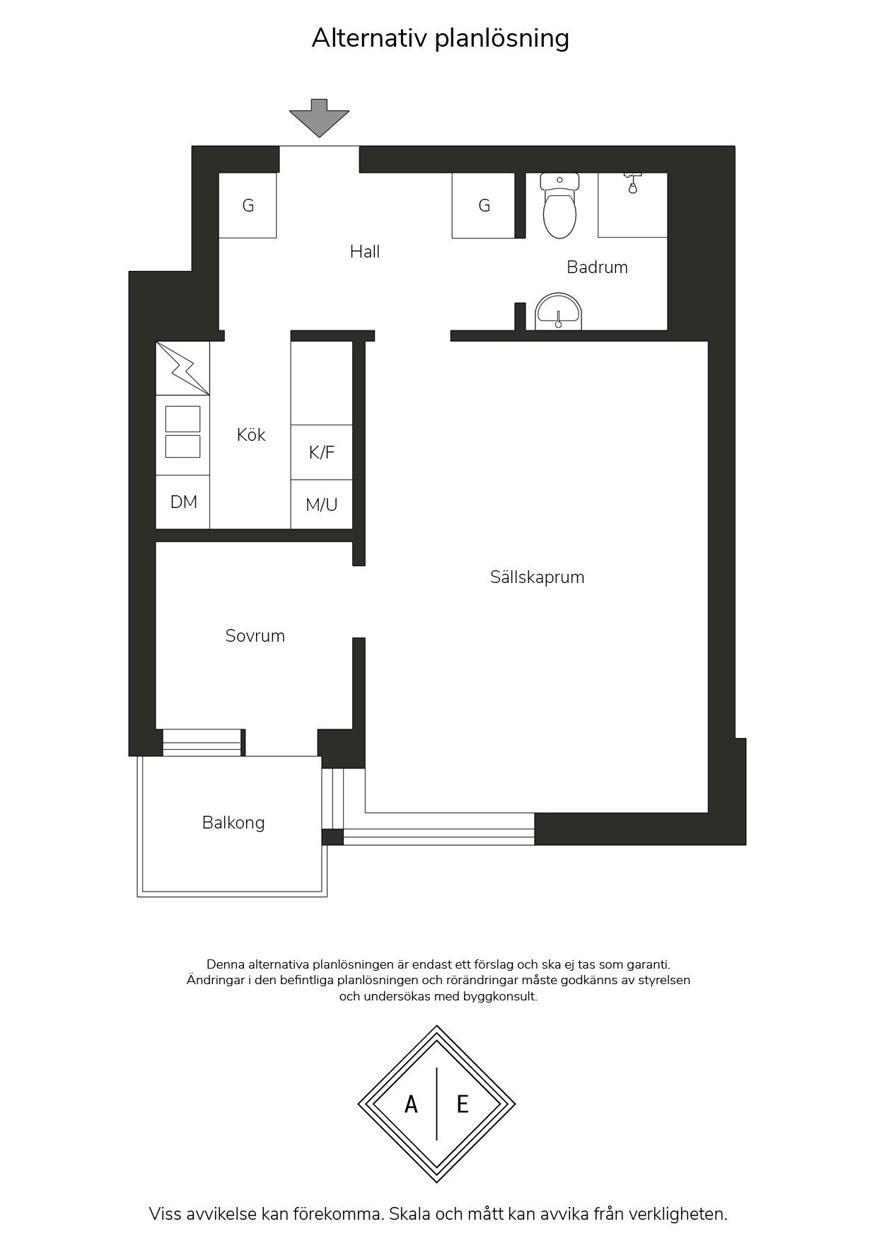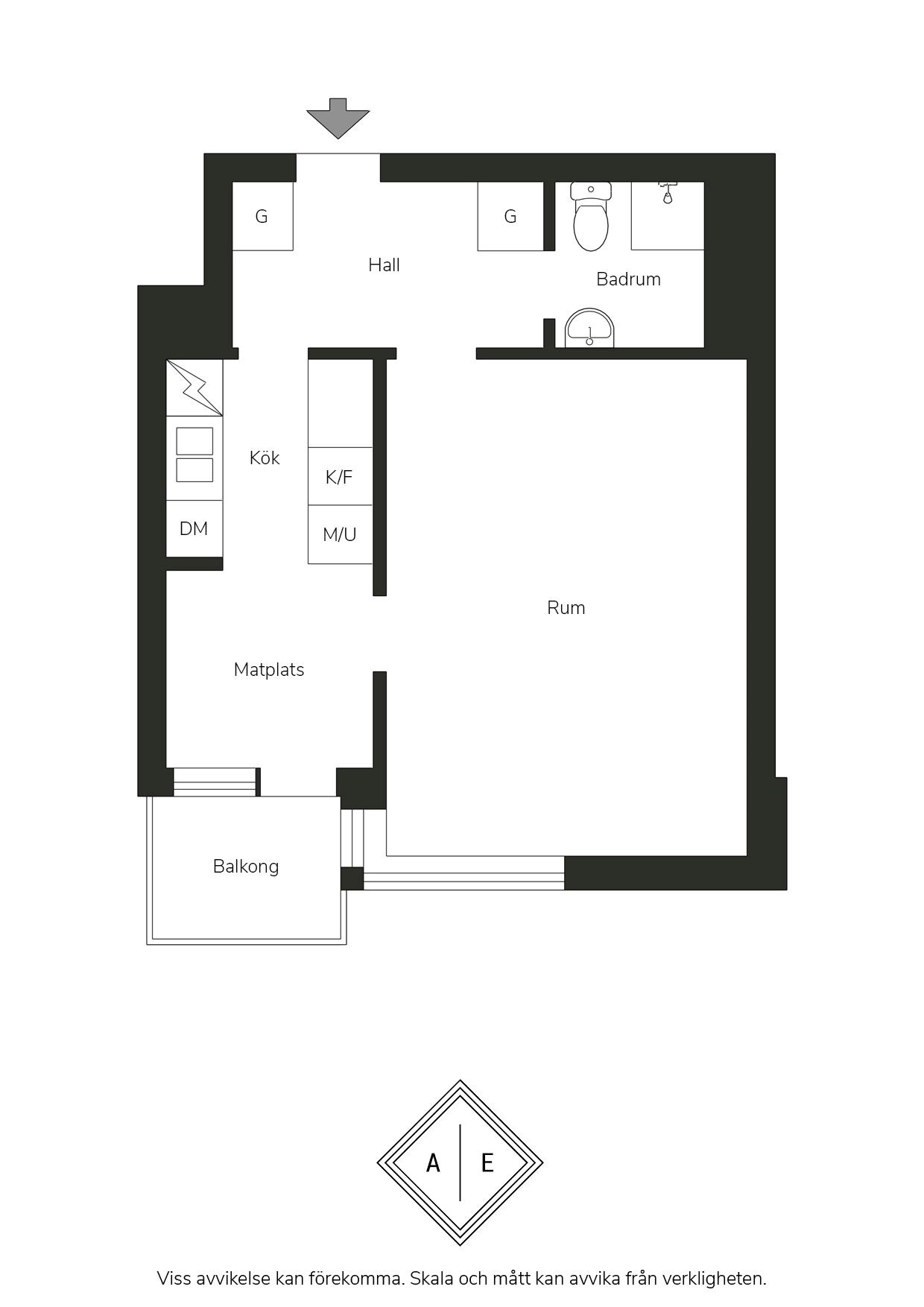 Allrummet är generöst tilltaget och rymmer enkelt både soffgrupp, TV-möbel och säng, med gott om utrymme för ytterligare möblemang. Köket är fullt utrustat och erbjuder bra förvaring hela vägen upp till tak och gott om arbetsyta, vilket ger både funktion och en känsla av rymd. Intill fönstret finns en perfekt plats för ett matbord för minst fyra personer – en naturlig samlingspunkt för både vardag och fest. Möjligt att skapa sovrum av matrummet för den som önskar en mini-tvåa.