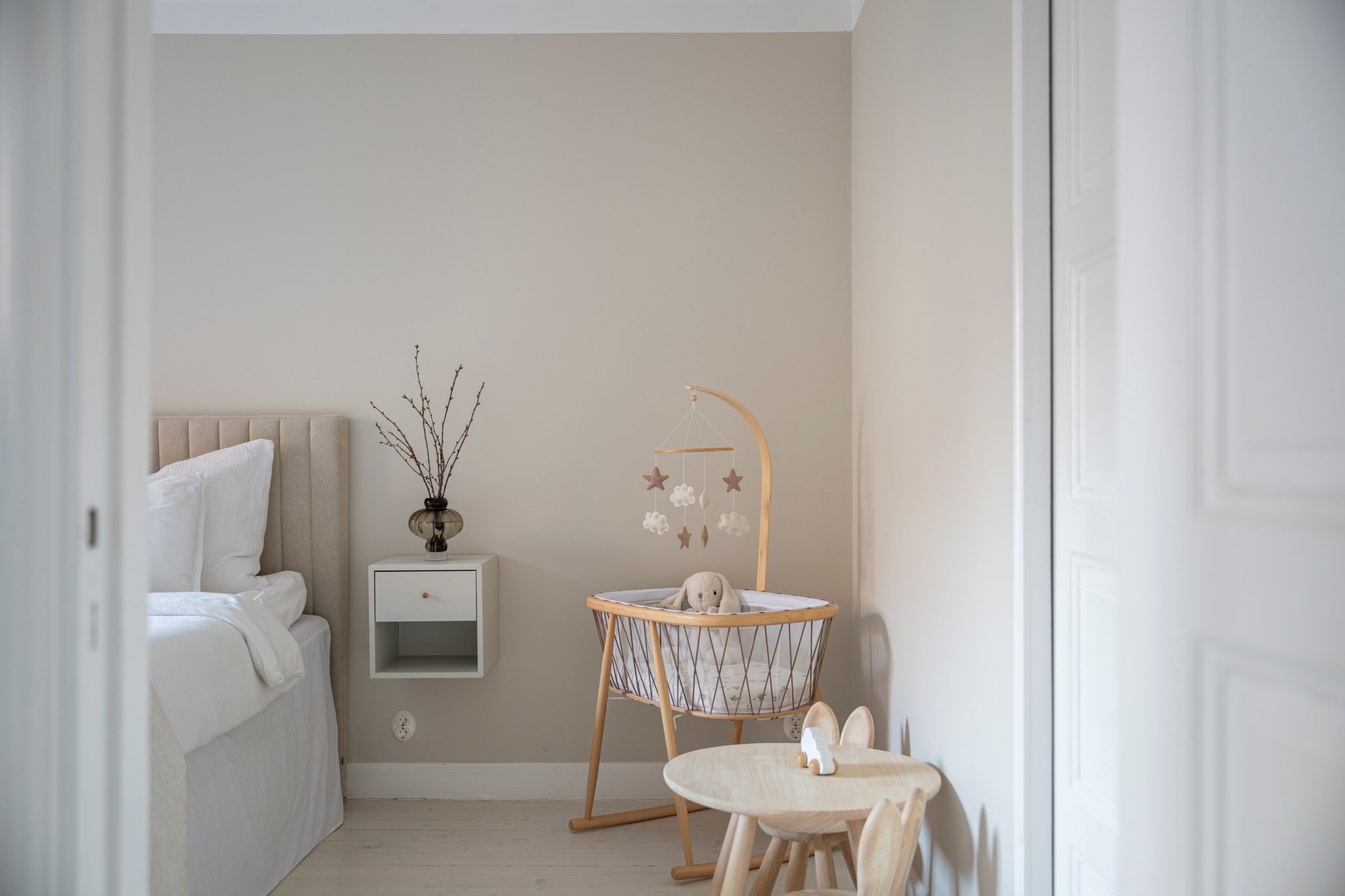 Rogivande sovrum med ljust trägolv och ljusa väggar. Här finns gott om plats för säng, nattduksbord, förvaringsmöbel och annan önskad inredning. Utgången till balkongen ger ett behagligt ljusinsläpp som skapar en luftig atmosfär. I anslutning finns en walk-in-closet med generösa förvaringsmöjligheter.