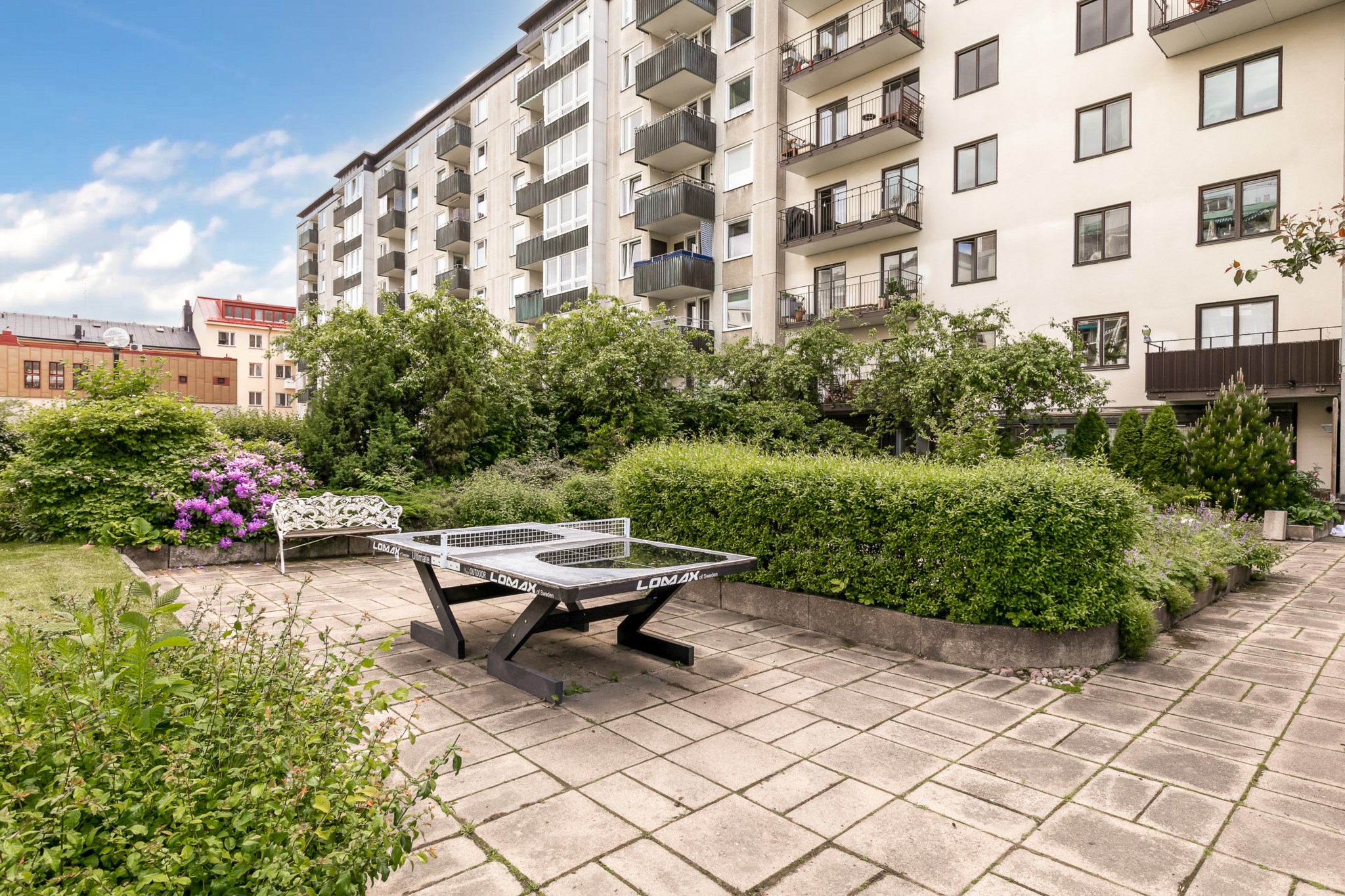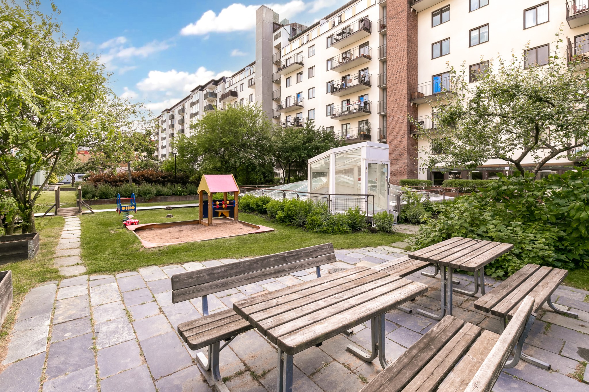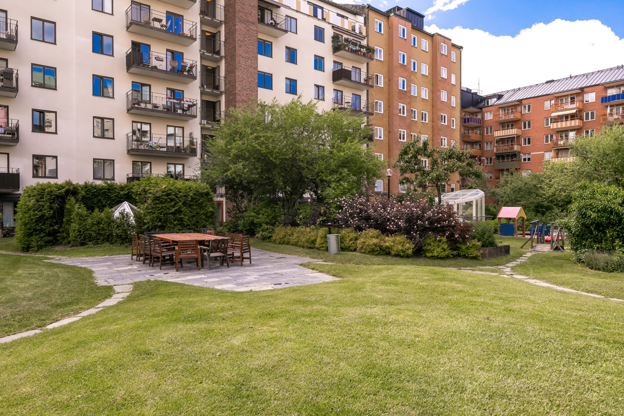 Föreningen har en pågående utredning om garaget eller innergården ska renoveras först.GårdsplatsFöreningen har en gemensam innergård.ParkeringI föreningen finns cirka 160 garageplatser. Garaget hyrs ut till Stockholm Parkering, men föreningen har dispositionsrätt till 35 platser för de boende. I övrigt råder boendeparkering i området.