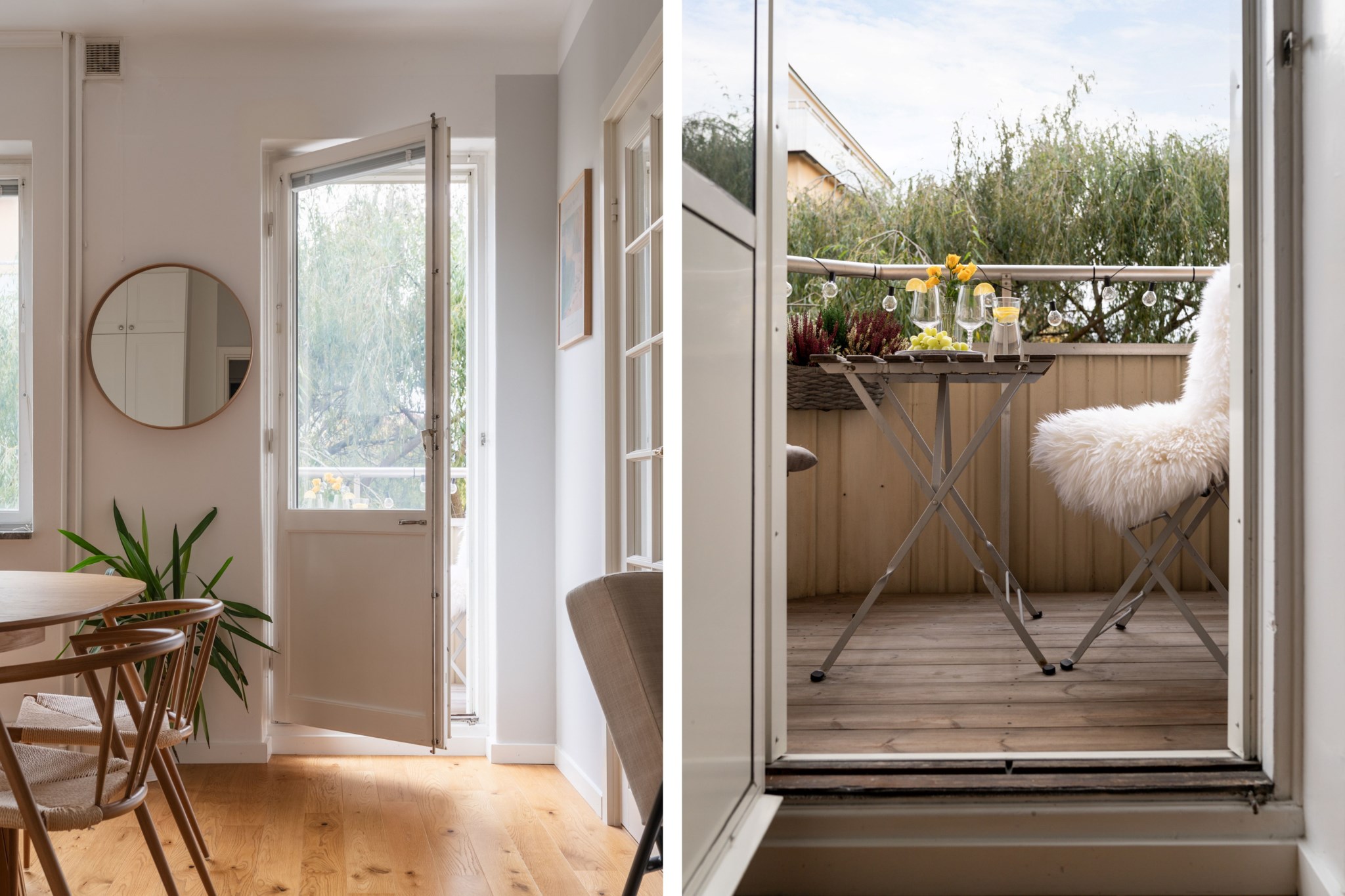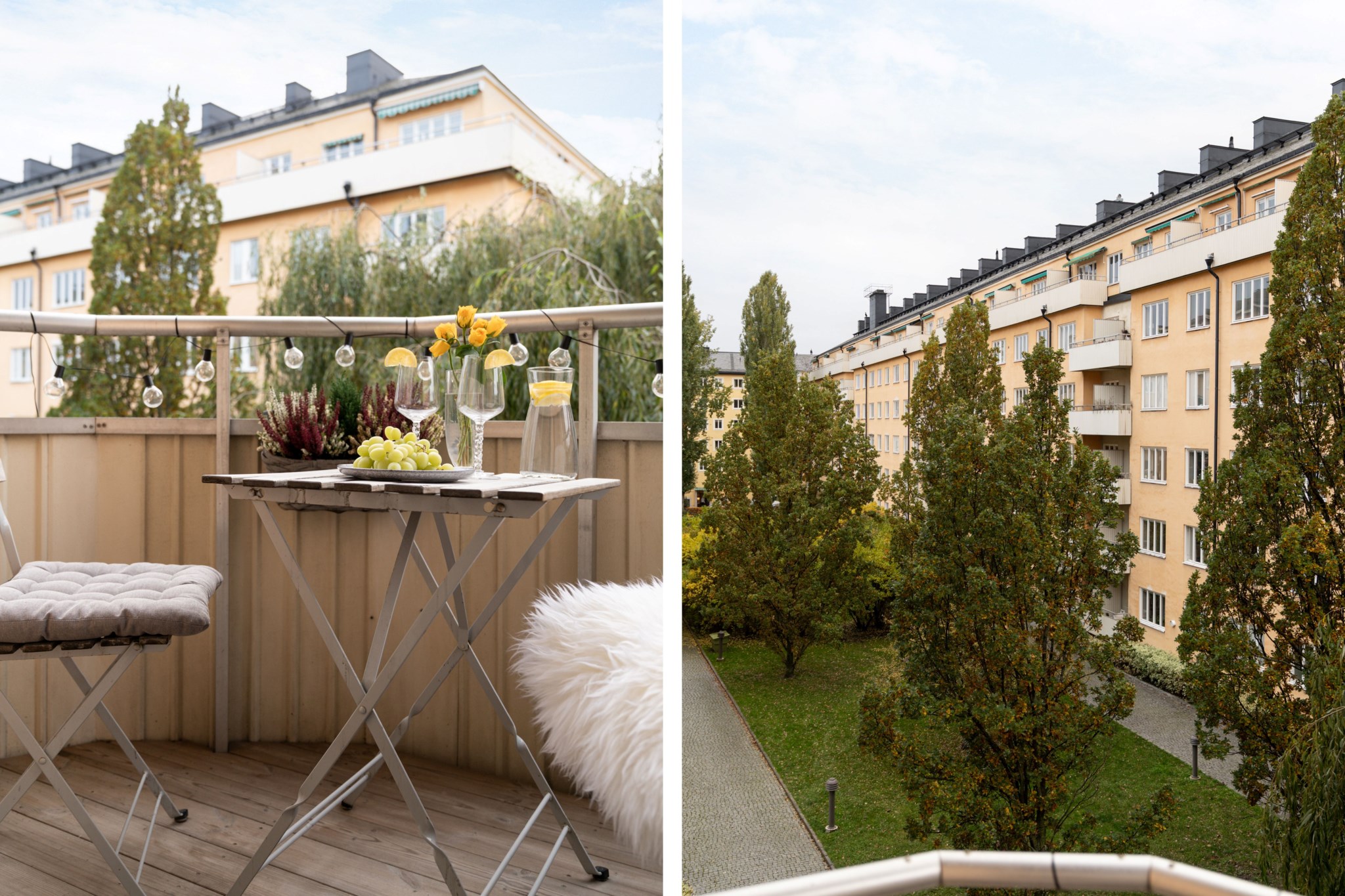Till bostaden hör en trevlig balkong med utgång från köket. Här finns plats för balkongmöbler och utsikt mot den lugna innergården med goda möjligheter att skapa en trivsam och avkopplande utomhusmiljö.