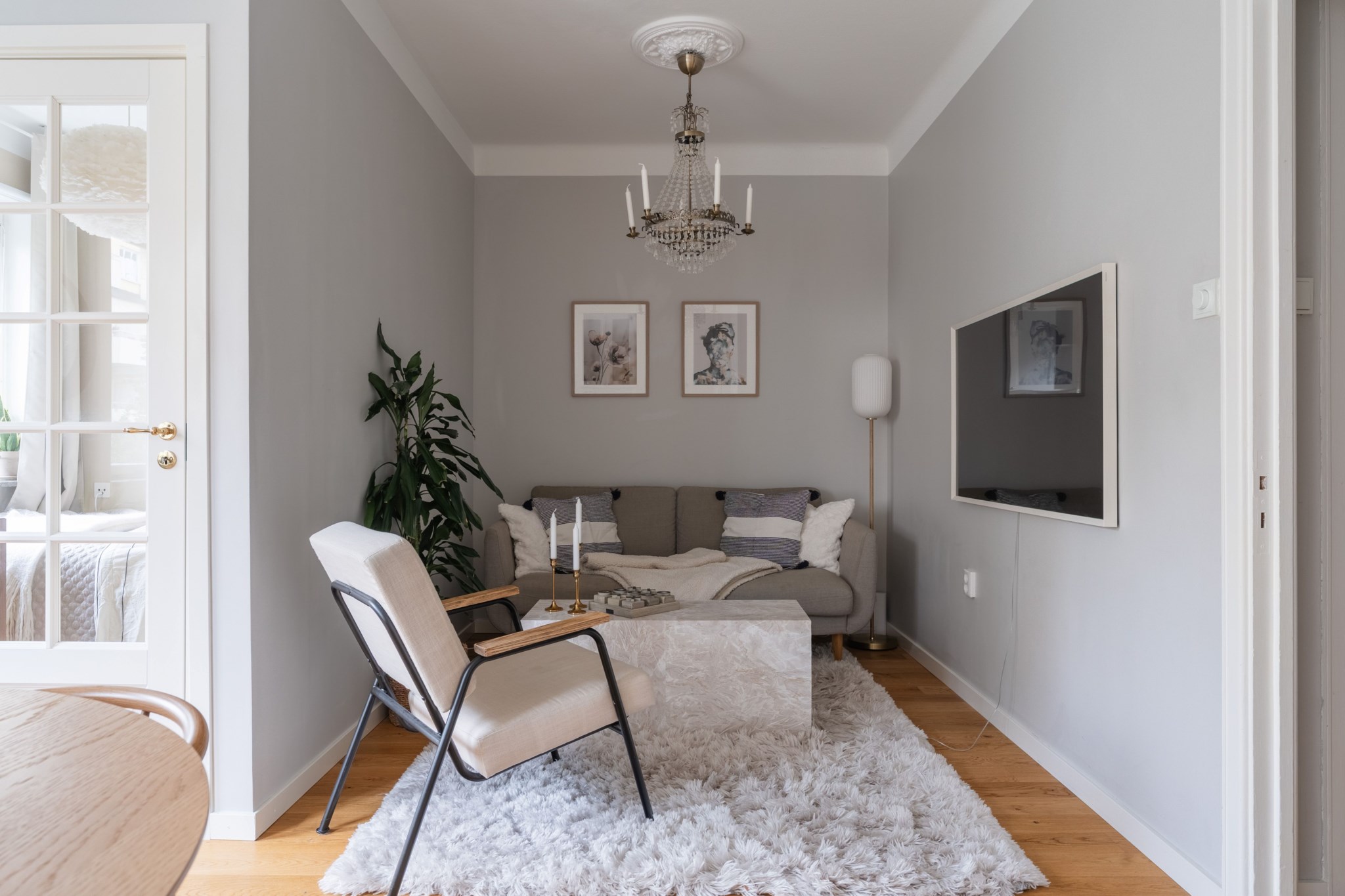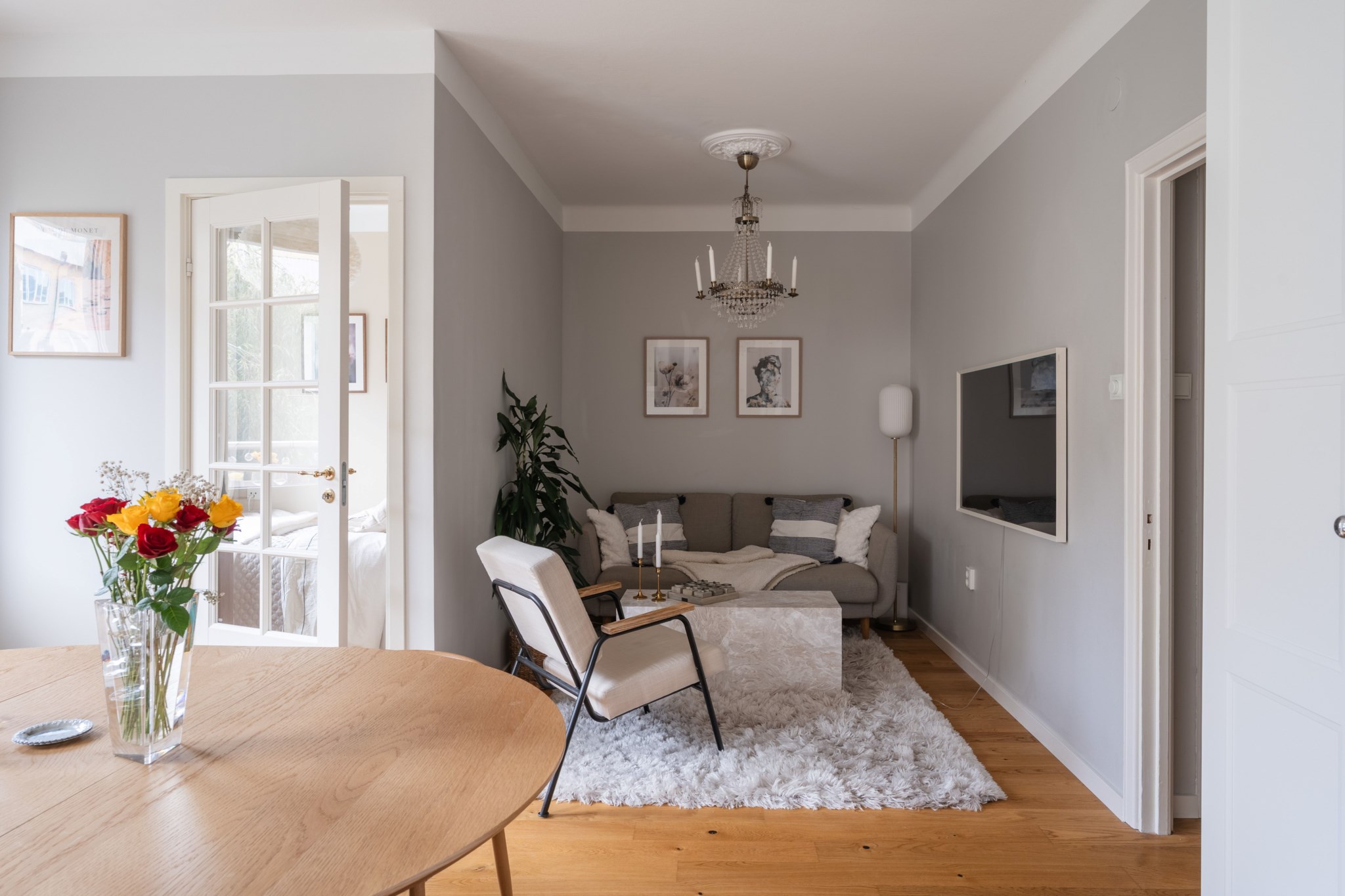 Denna bostad har allra bästa förutsättningar för ett rofyllt hem på bästa adress för såväl singeln som det kärleksfulla paret.