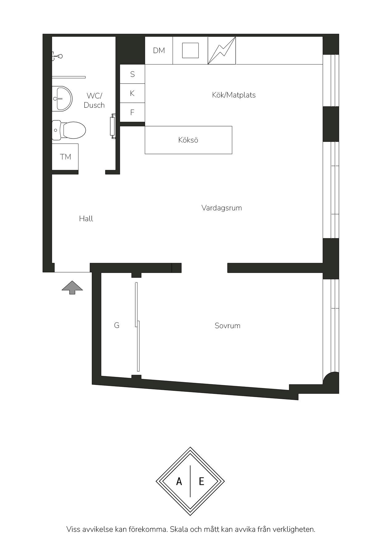 Det separata sovrummet är rymligt och rofyllt med goda förvaringsmöjligheter. Det finns även utrymme för skrivbord, vilket gör det enkelt att skapa ett funktionellt hemmakontor eller arbetsplats. Badrummet är fräscht, rymligt och helkaklat. Ytterligare förvaring finns i lägenheten samt i tillhörande vindsförråd.