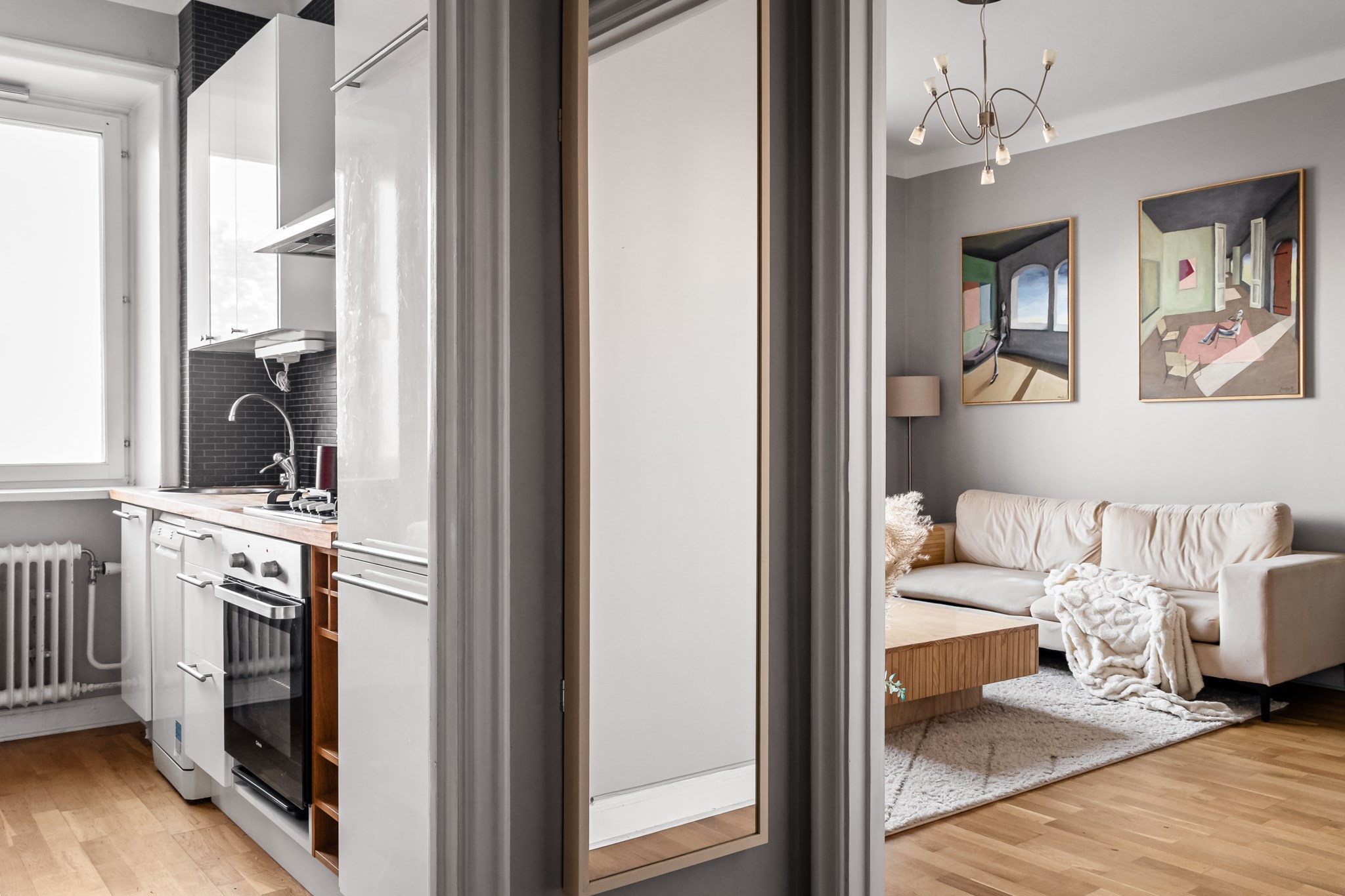 Välkommen till denna underbara och väldisponerade lägenhet om 34 kvm på attraktiva Essinge Brogata. Ett hem som kombinerar charm, funktion och livskvalitet. Här bor du i ett ljust och luftigt hem med väl genomtänkta ytor där varje kvadratmeter används på bästa möjliga sätt. Lägenheten bjuder på en inbjudande planlösning med separat kök och sovalkov. Köket har generösa arbetsytor, diskmaskin, gott om förvaring och plats för en matplats invid fönstret. Den rymliga sovalkoven är smart avskild från vardagsrummet och skapar en naturlig sovdel. Vardagsrummet har vackert ljusinsläpp, gott om plats för både soffa och arbetsplats. Den klassiska 30-talscharmen sitter kvar i detaljer som högt i tak och stora fönsterpartier. Lägenheten upplevs behaglig, tyst och mycket trivsam. Den är i gott skick och helt inflyttningsklar!