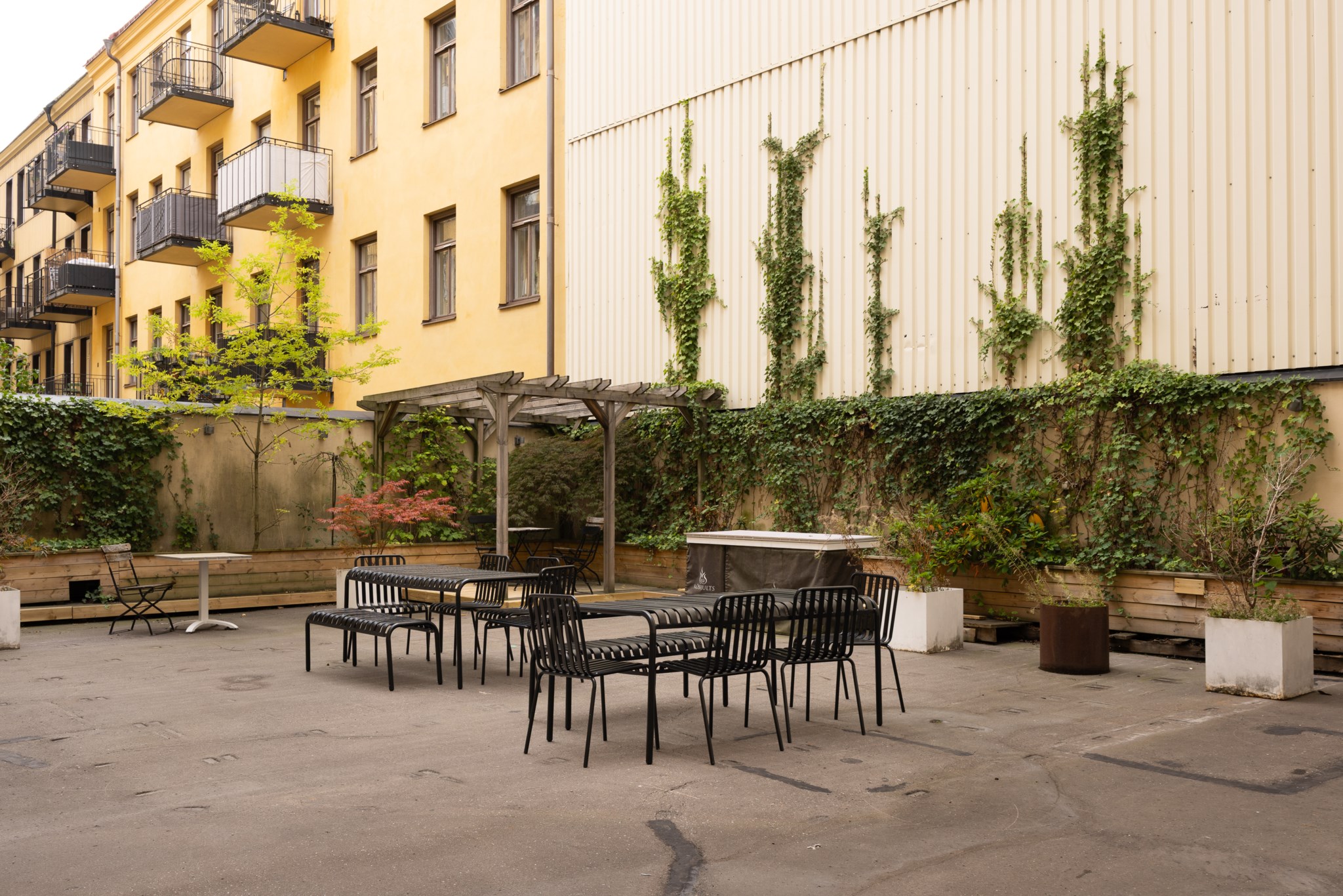 2009 Ommålning av trapphus och hisskorgar, Inredning av gården