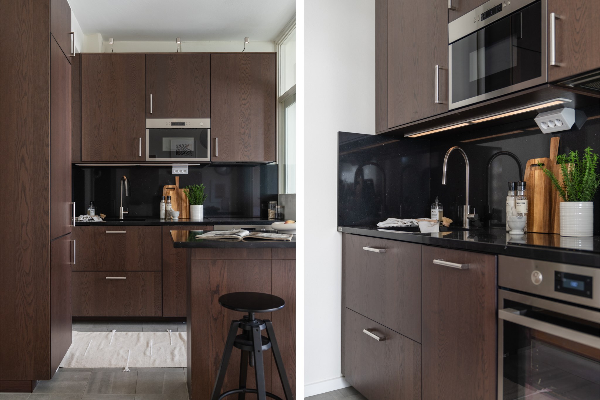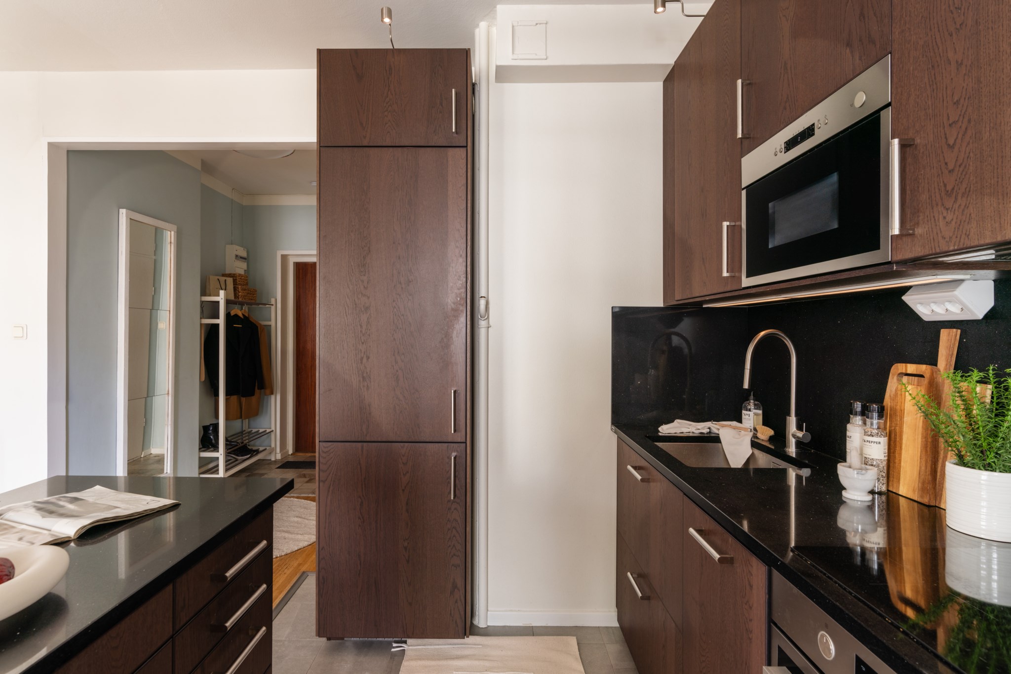 Köket är nyrenoverat och funktionellt utformat med bra arbetsytor och förvaring. Här finns plats för både matlagning och umgänge.