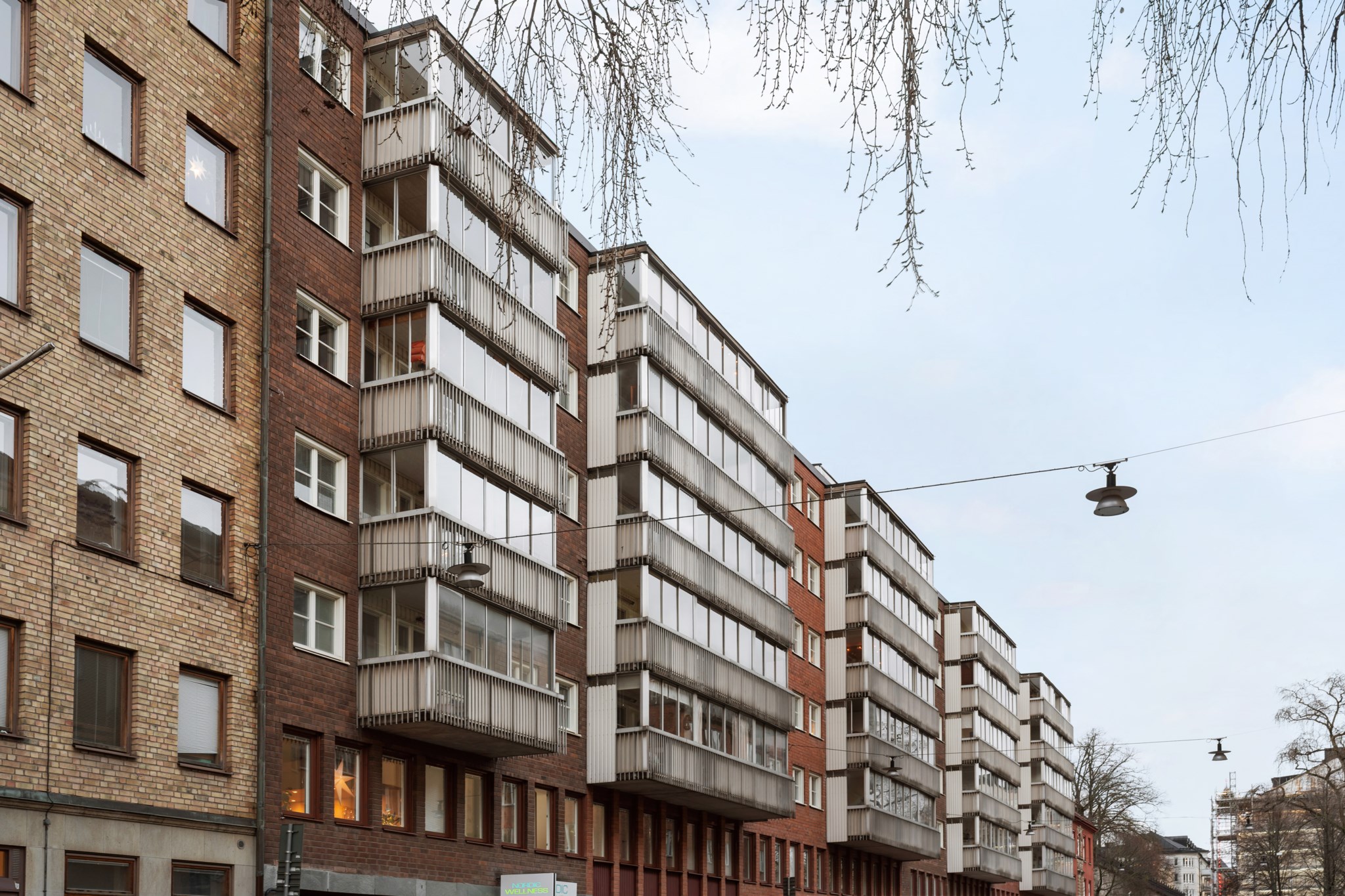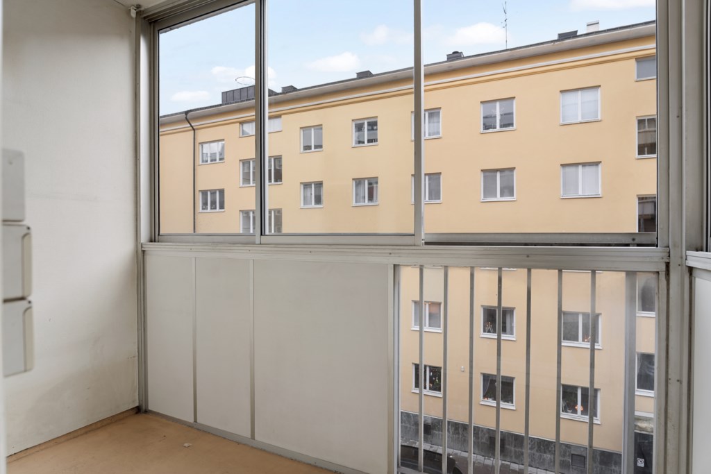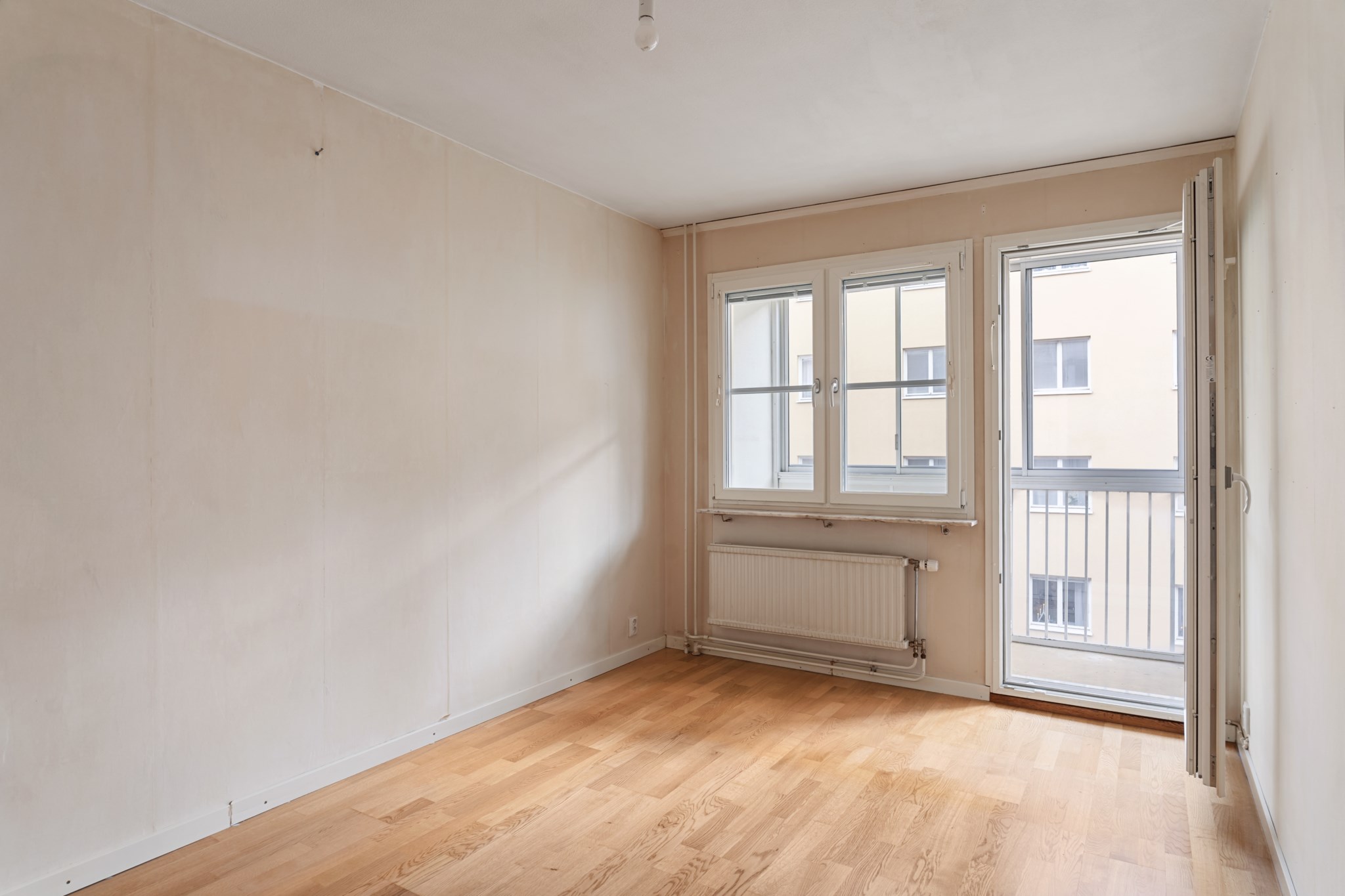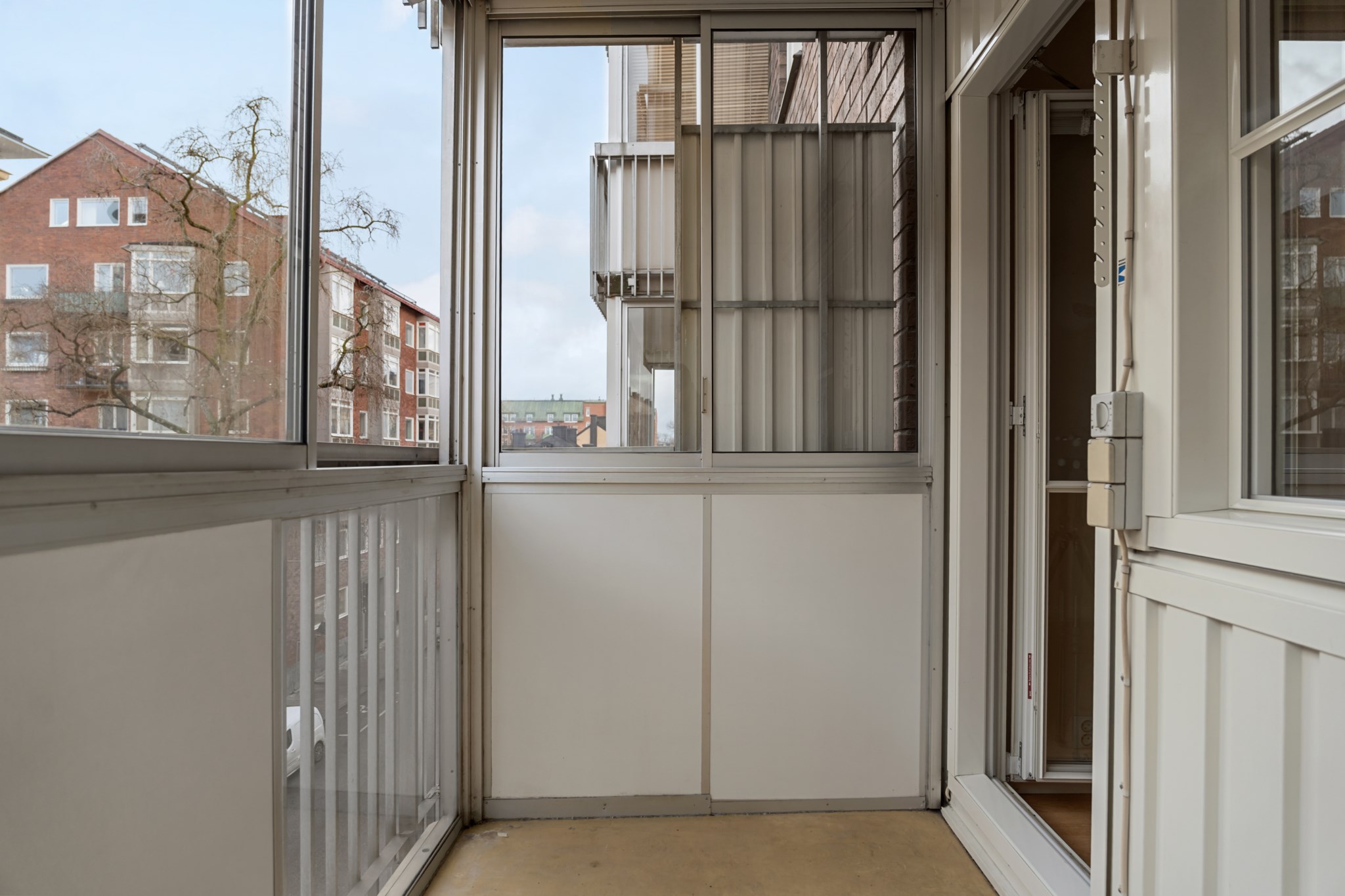 Stora fönsterpartier i två väderstreck skapar ett fantastiskt ljusflöde och en luftig känsla. Den inglasade balkongen i soligt söderläge bjuder på utsikt över takåsarna. I dagsläget finns två rymliga sovrum, men planlösningen möjliggör enkelt ett tredje. Badrummet är nyligen stambytt och helkaklat med tvättmöjligheter.