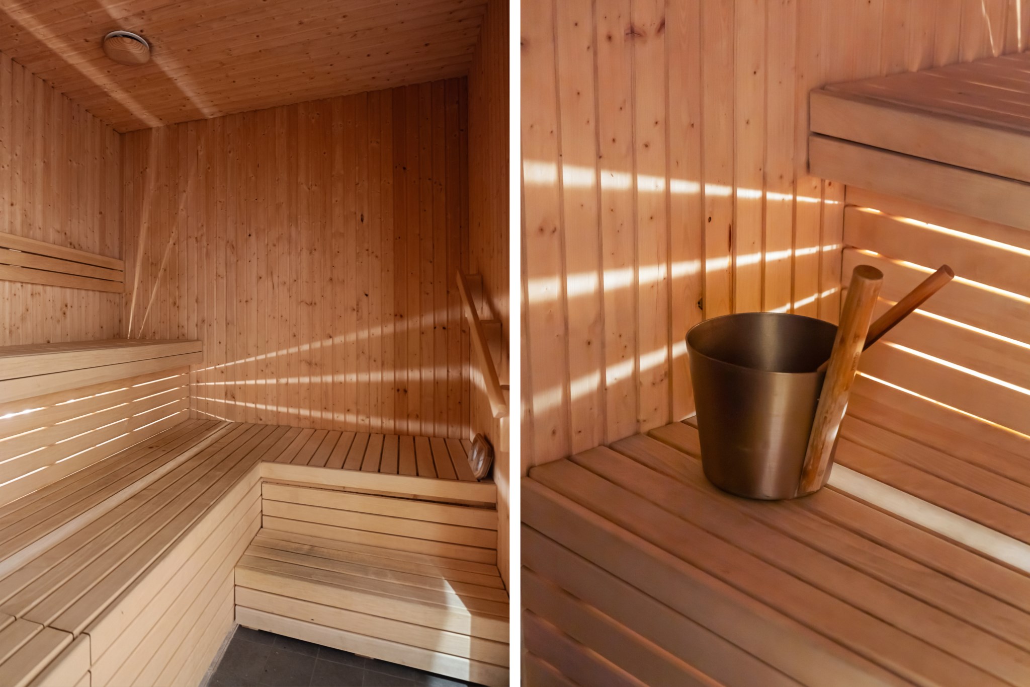 Avkoppling och välbefinnande. Avdelningen rymmer två bastur samt omklädningsrum, kompletterat av en trivsam poolmiljö.