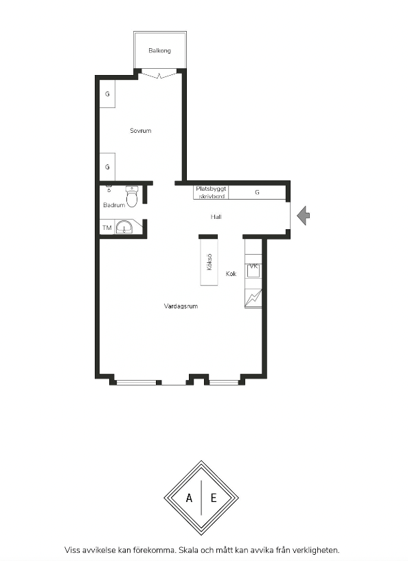 Till lägenheten hör en balkong.