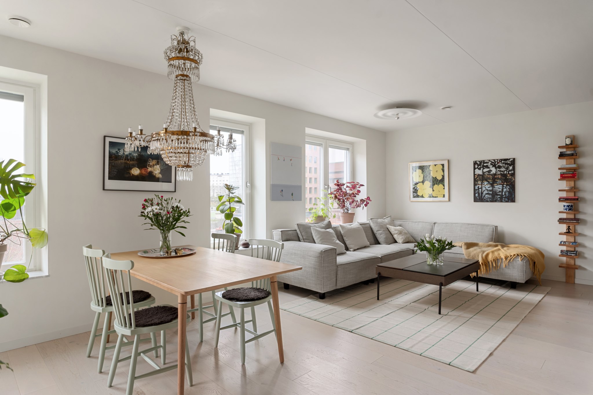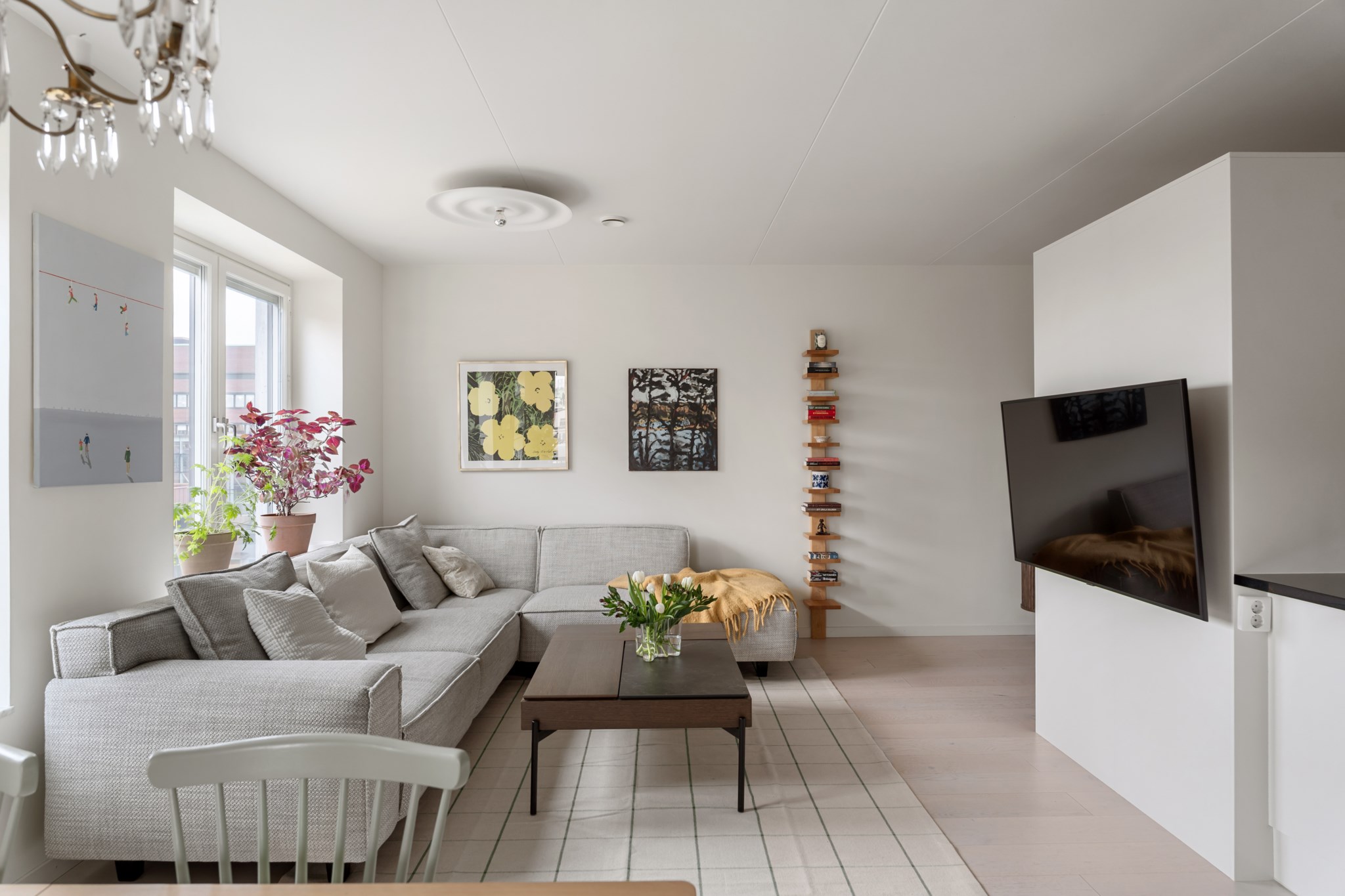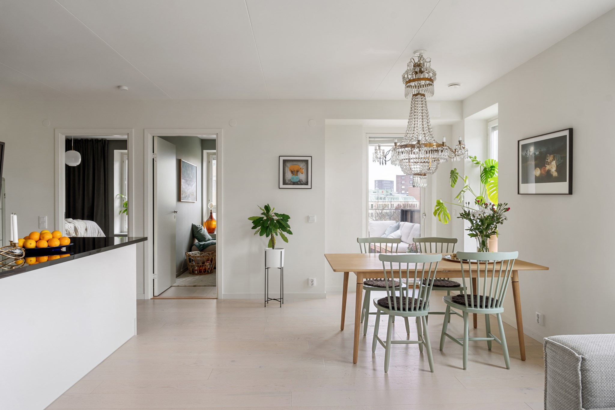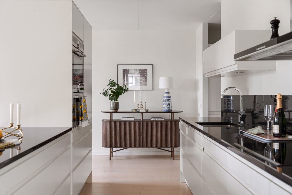 Lägenheten i sig är ljus och trivsam, med välplanerade ytor, fina materialval och en harmonisk känsla rakt igenom. Ett hem som bjuder in till både vardag och fest, där du kan njuta av lugna hemmakvällar eller öppna upp för sociala middagar med vänner.