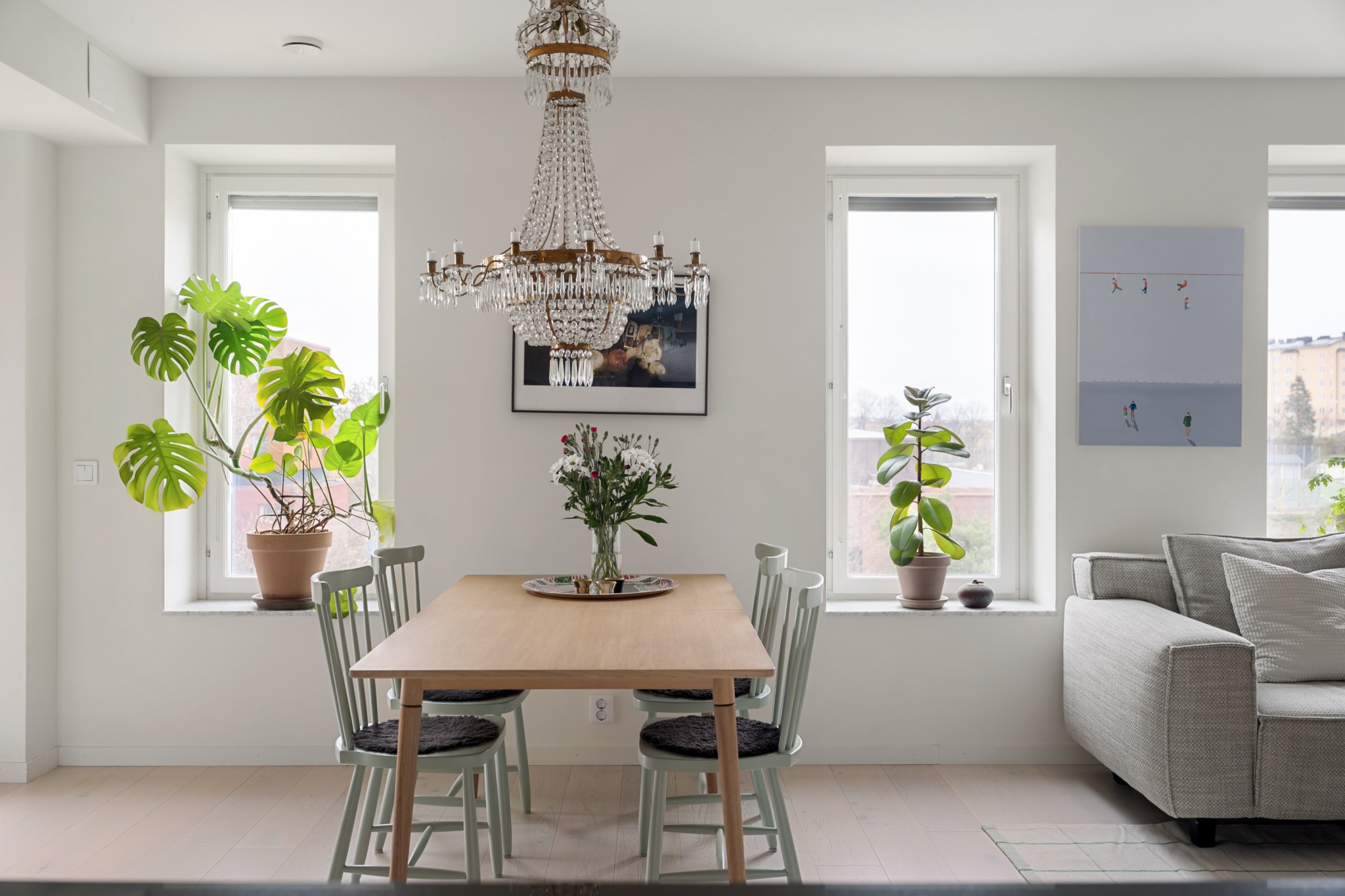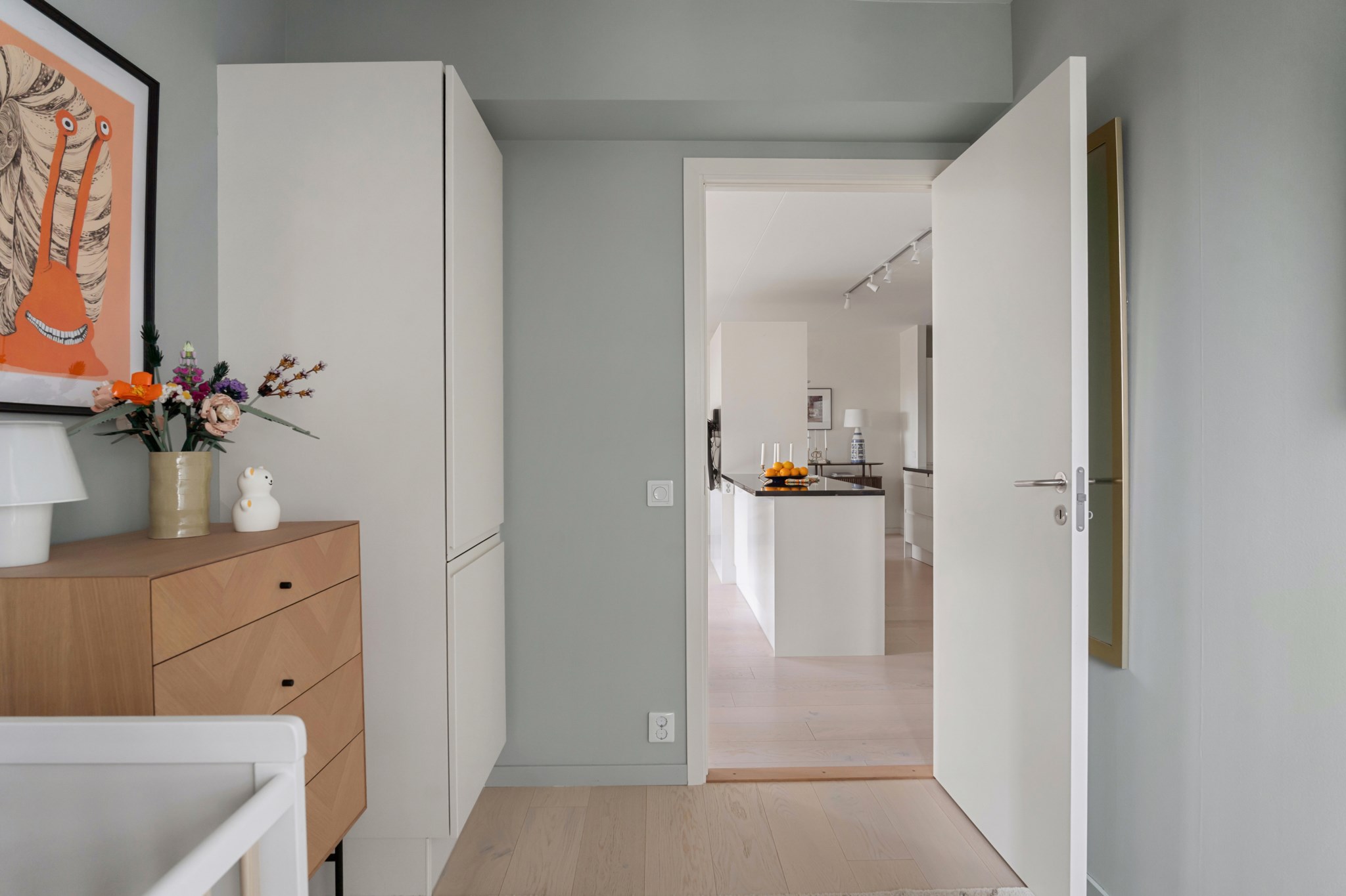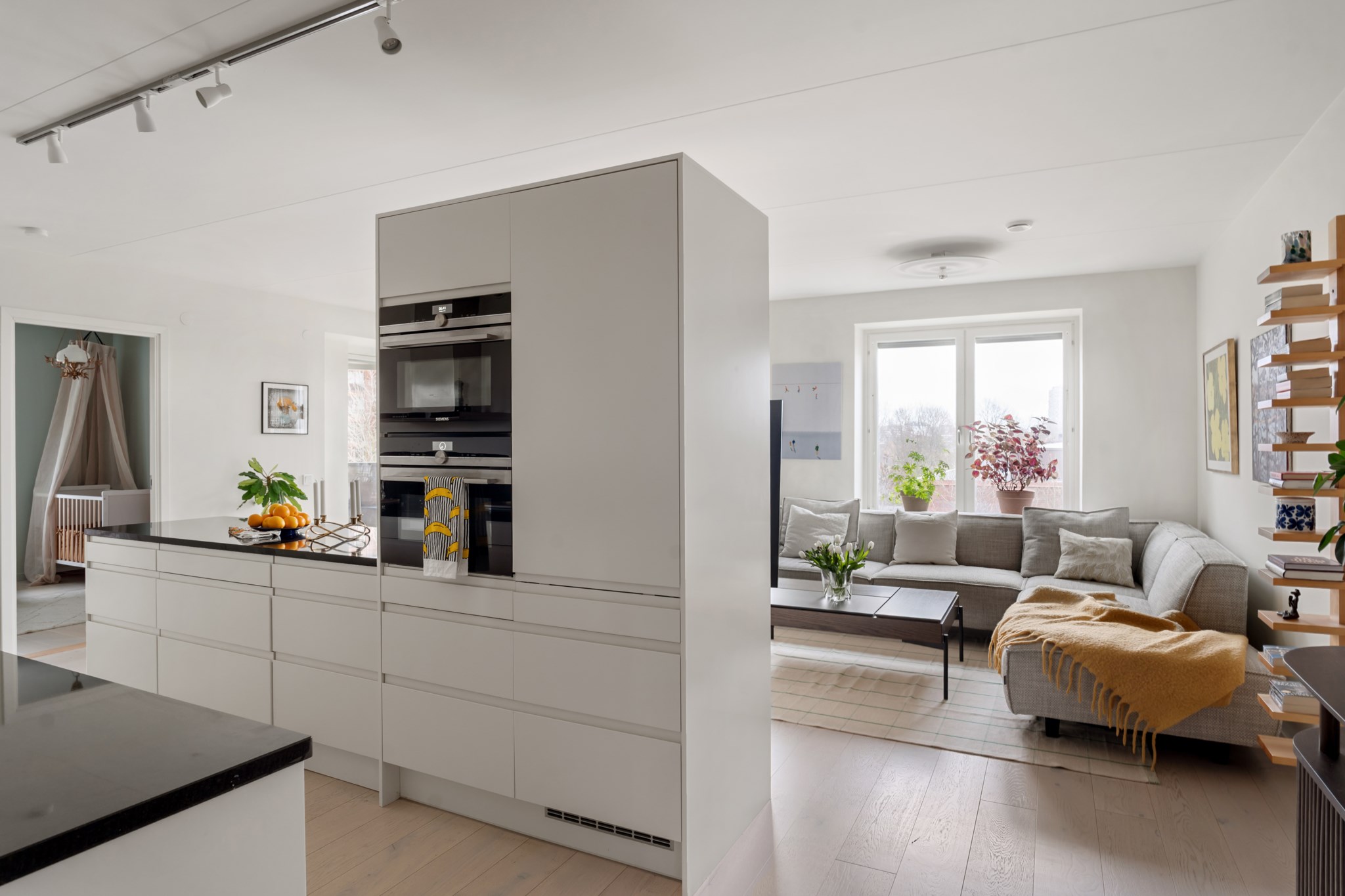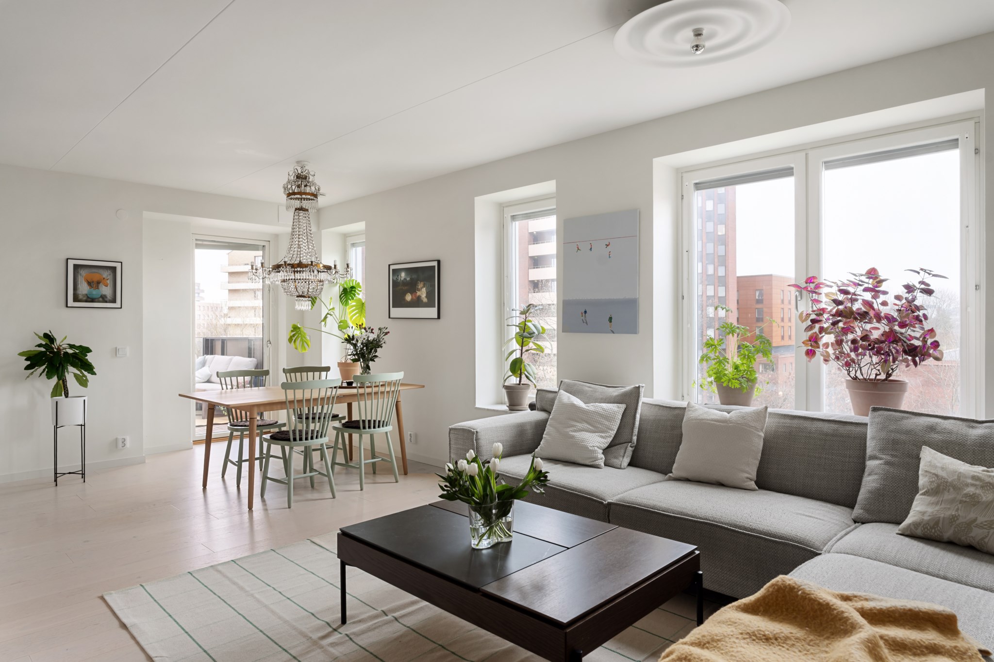 Lägenheten i sig är ljus och trivsam, med välplanerade ytor, fina materialval och en harmonisk känsla rakt igenom. Ett hem som bjuder in till både vardag och fest, där du kan njuta av lugna hemmakvällar eller öppna upp för sociala middagar med vänner.