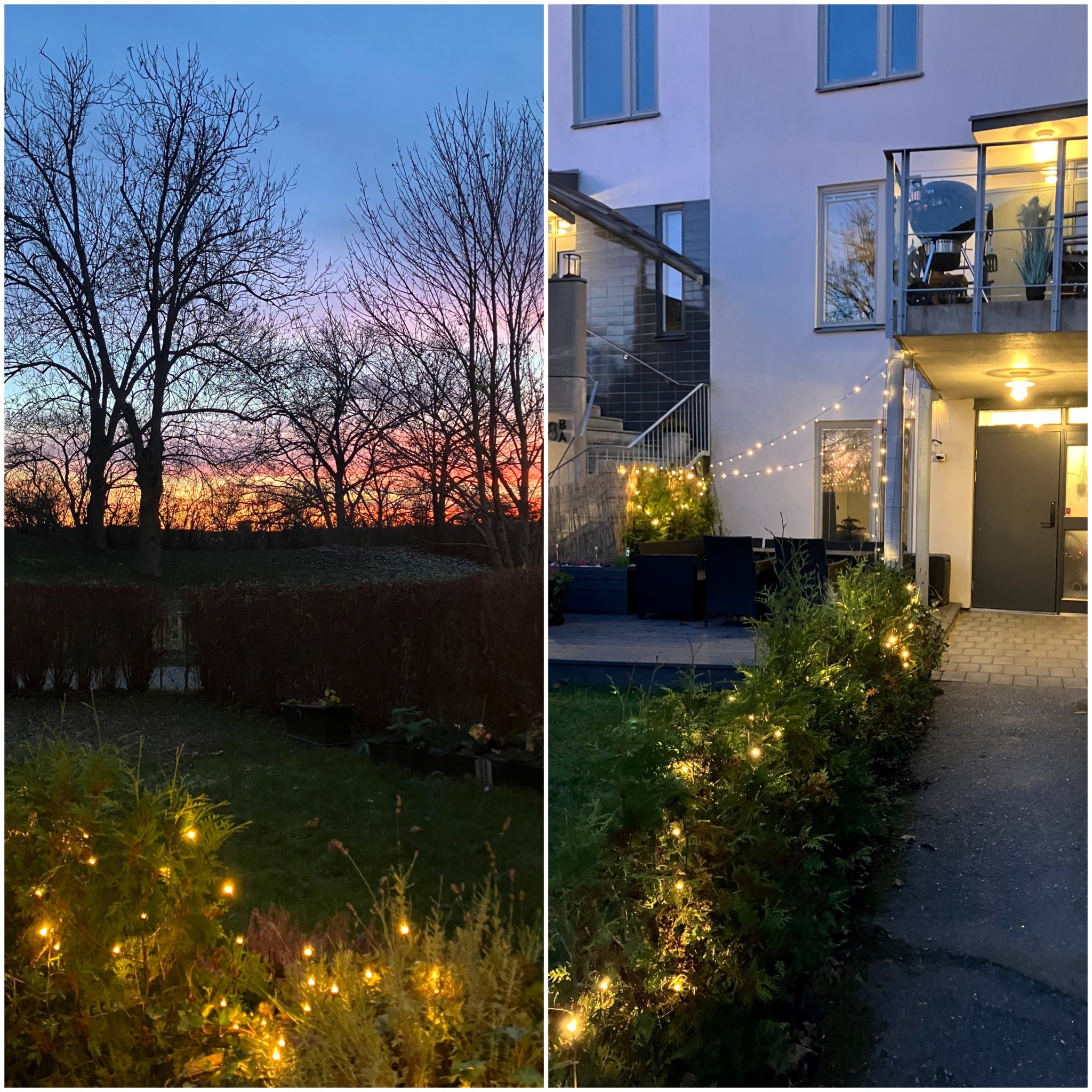 Utomhus väntar en generös och välskött uteplats som bjuder in till avkoppling och sociala tillställningar. Här finns både trall för lounge- och matgrupp, samt en gräsmatta som passar utmärkt för lek eller odling.