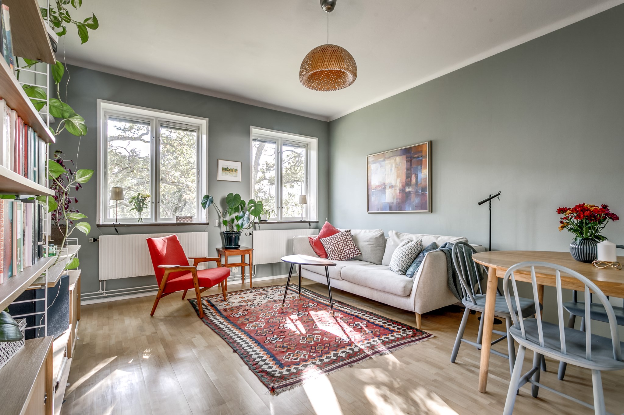 Varmt välkomna till denna optimalt planerade tvåa i populära Hjorthagen. Här kliver ni in i en bostad med insynsskyddat läge och grönskande omgivning. Bostaden har ett harmoniskt ljusinsläpp från sex fönster i två olika väderstreck vilket gör detta till en ljus och trivsam plats att bo på. Planlösningen lämpar sig väl både för singeln och paret då det finns gott om förvaringsmöjligheter samt ett sovrum som rymmer en dubbelsäng. Grönskande oas med idyllisk småstadskänsla men samtidigt ett stenkast från city. Bara att flytta in. Välkomna!
