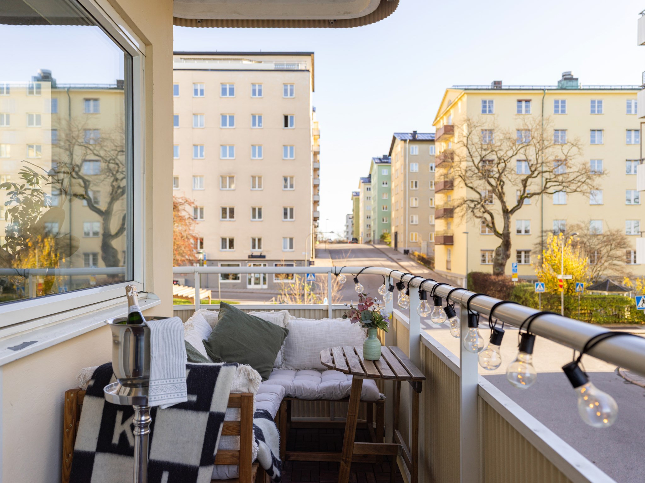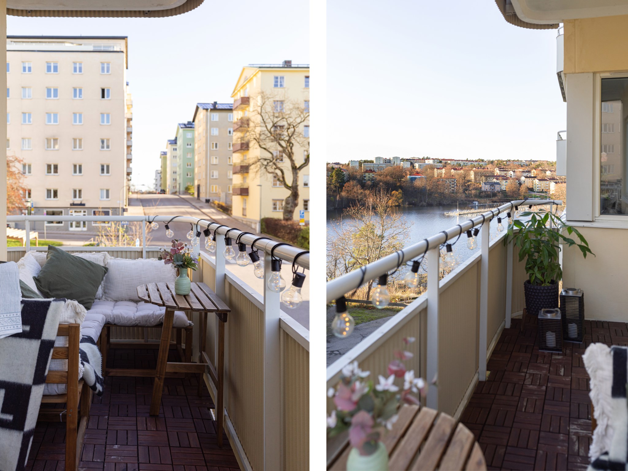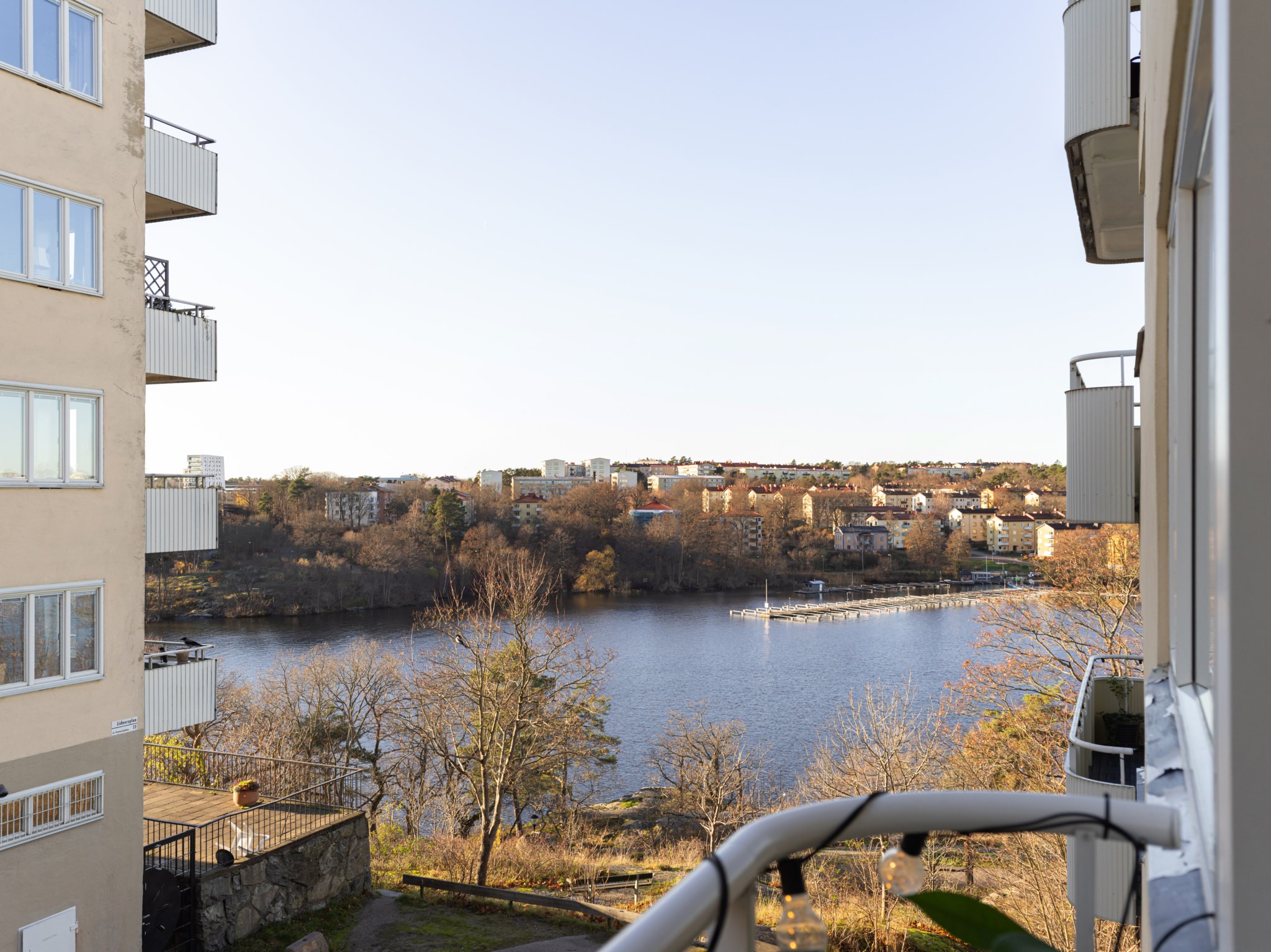 Till bostaden hör en balkong med en rogivande utsikt mot Ulvsundasjön. Här finns plats för balkongmöbler och växter med goda möjligheter att skapa en trivsam och inbjudande utomhusmiljö.