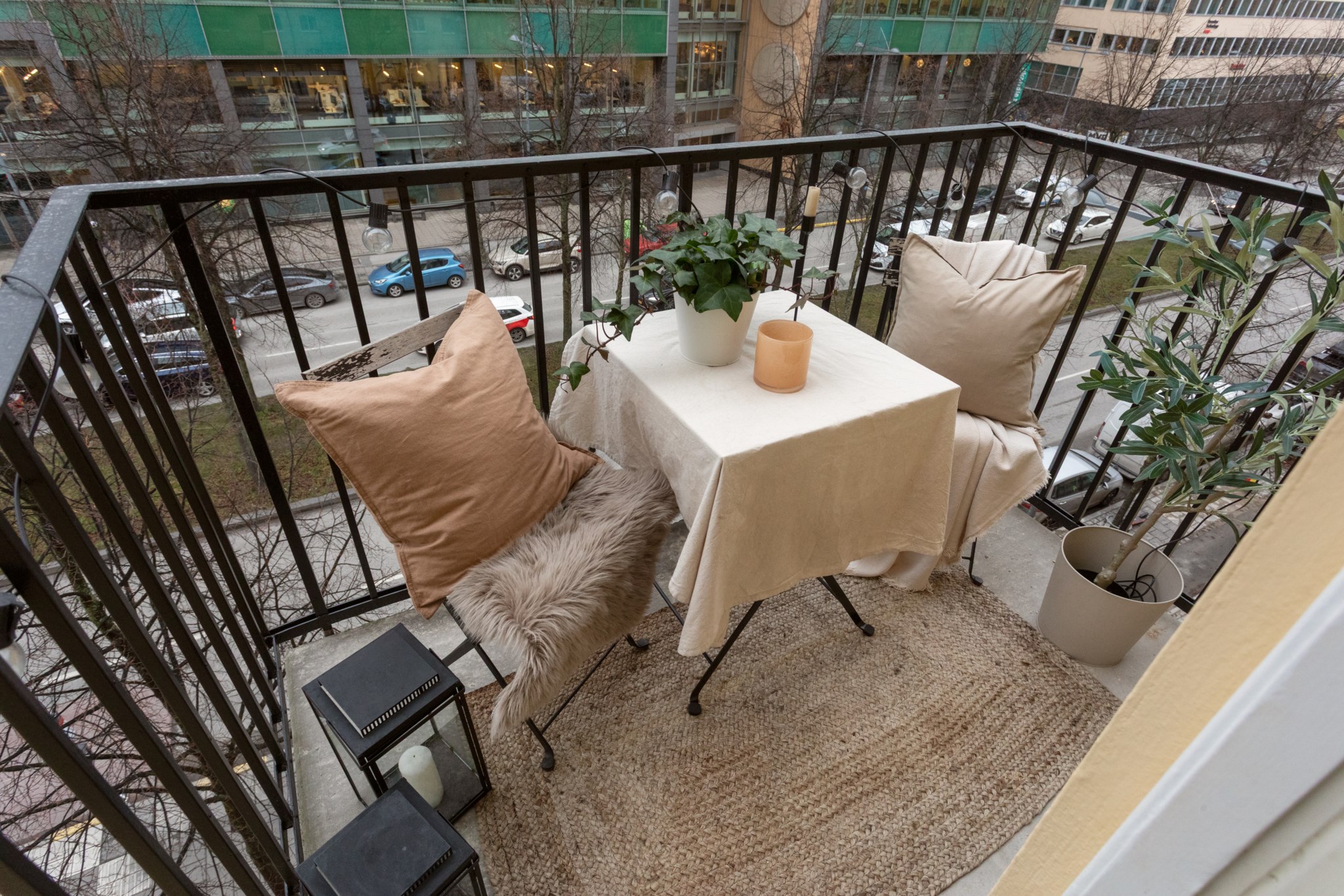 Till bostaden hör en trivsam balkong med charmigt, svart smidesräcke. Balkongen har plats för balkongmöbler och växter med goda möjligheter att skapa en trivsam utomhusmiljö att vistas i under de varmare månaderna.