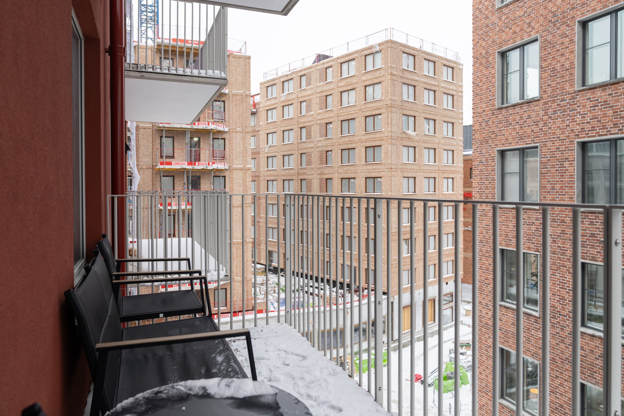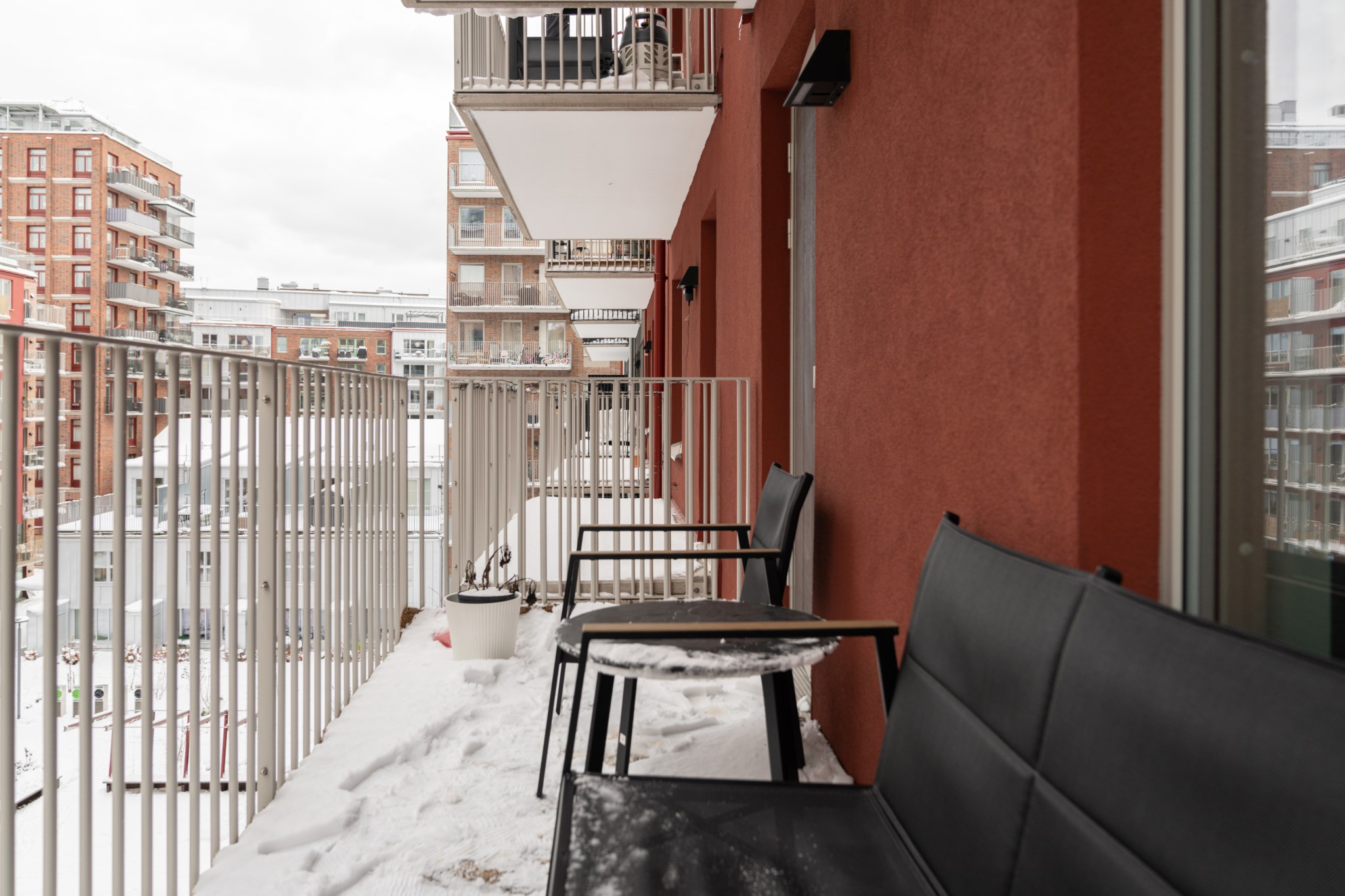 Från vardagsrummet kliver du ut på en generös balkong med utsikt mot den lugna innergården – en perfekt förlängning av bostaden sommartid och en självklar plats för avkoppling.