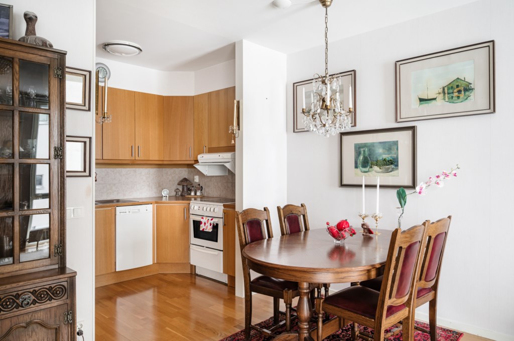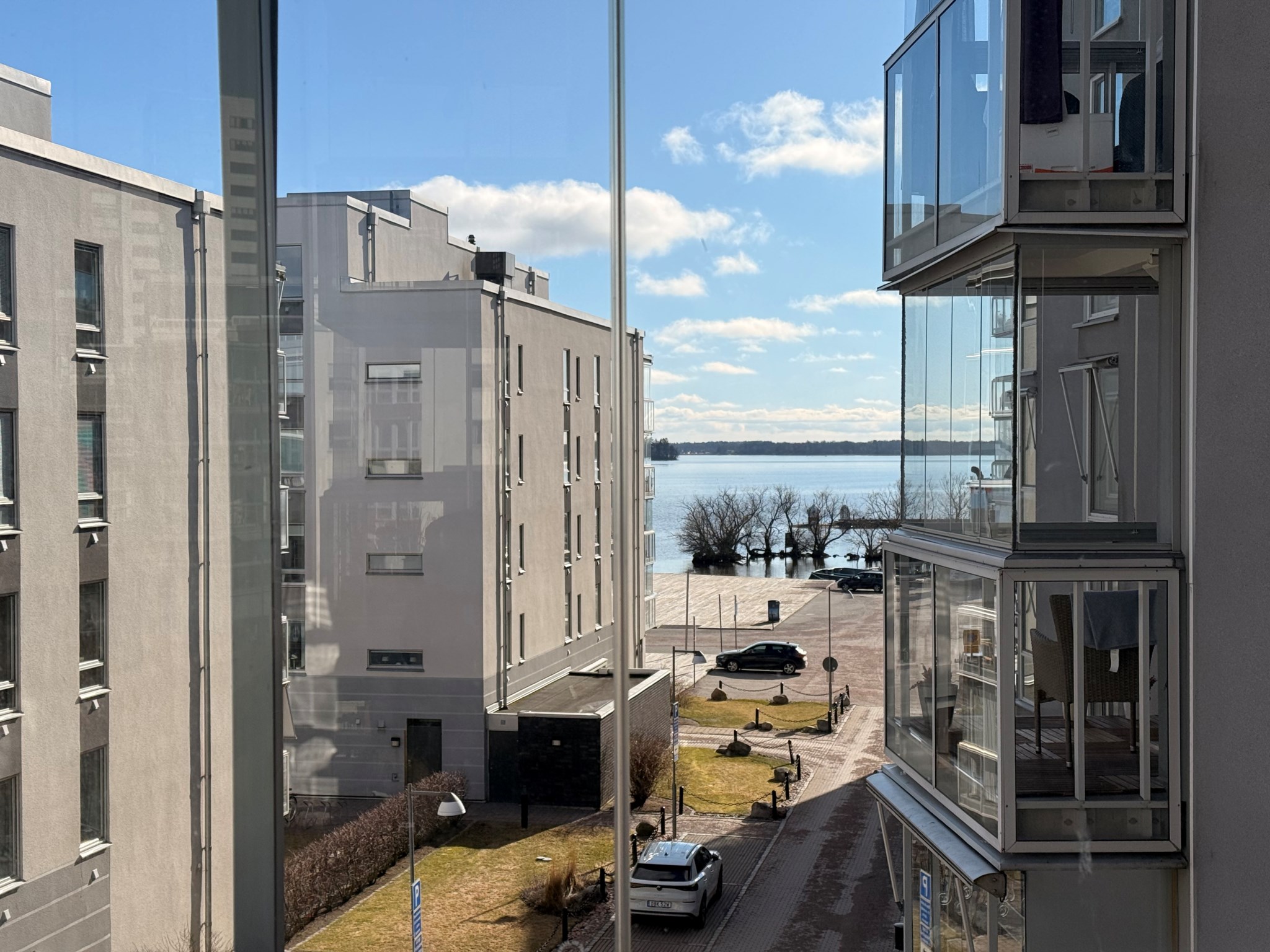 Bostaden har en genomtänkt planlösning med ljusa ytor, generöst vardagsrum och ett sovrum med plats för både säng och förvaring. Den inglasade balkongen blir ett extra rum större delen av året, perfekt för morgonkaffet eller lugna kvällar med vacker utsikt.