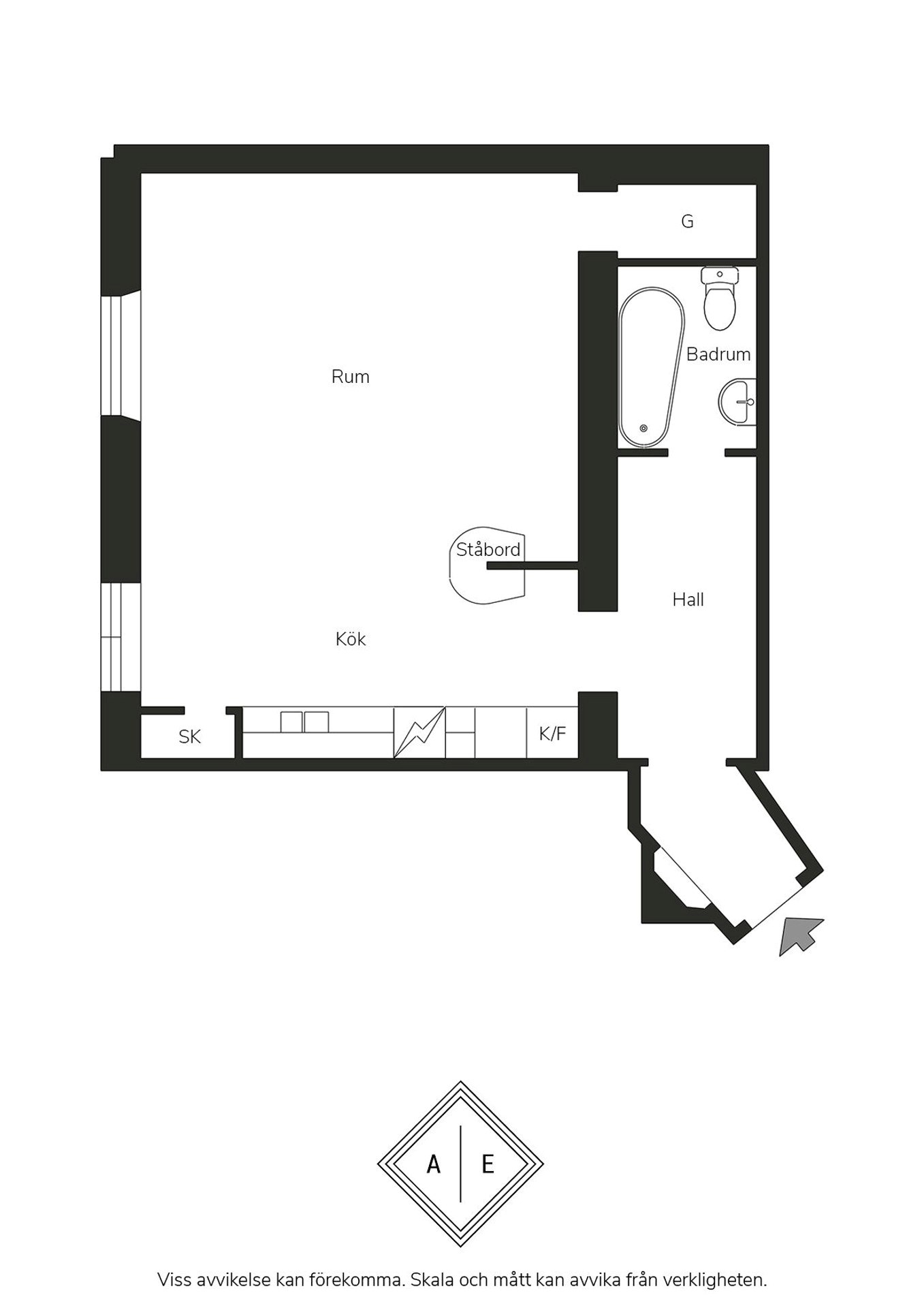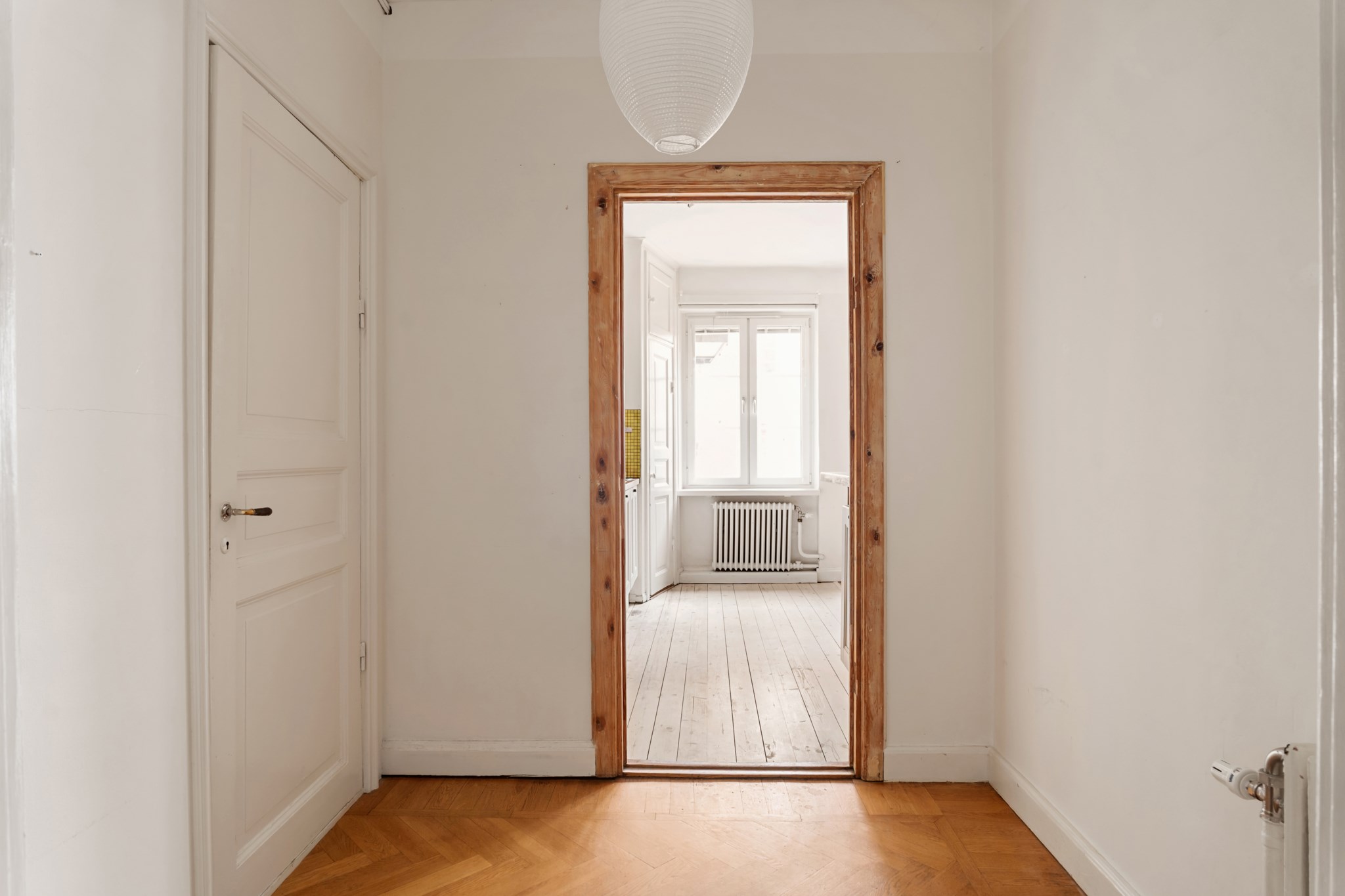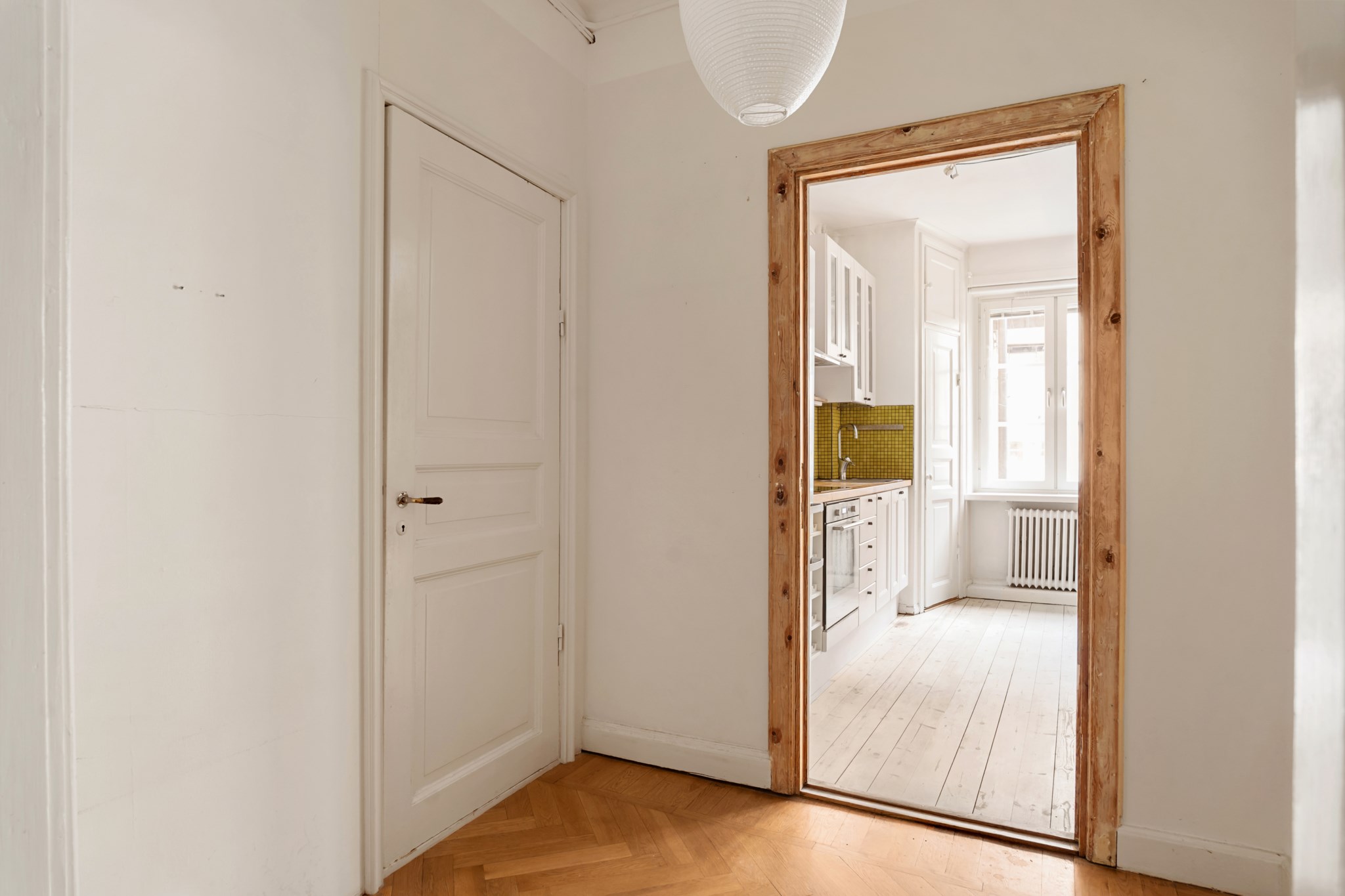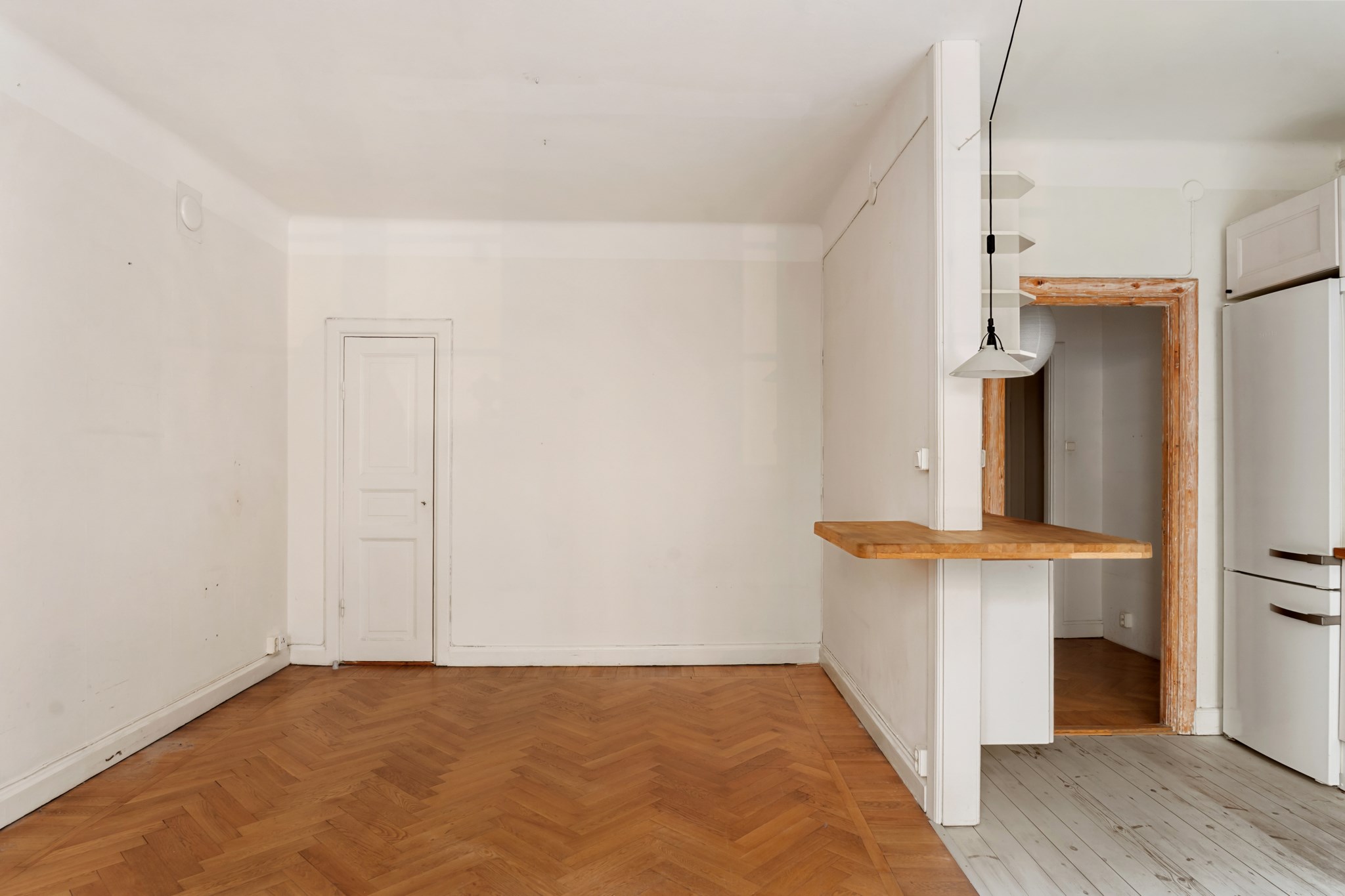 Här möts du av tydlig karaktär och vackra tidstypiska detaljer såsom stora spröjsade fönster, speglade dörrar, generös takhöjd och klassisk fiskbensparkett. Planlösningen är yteffektiv och trivsam med goda möjligheter för både umgänge och avkoppling, och det finns även möjlighet att bygga om bostaden till en tvåa.