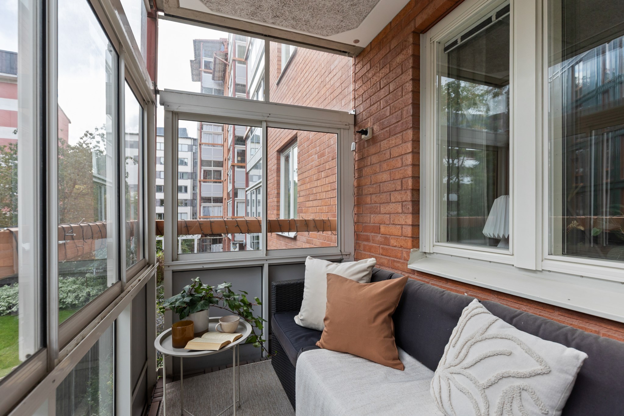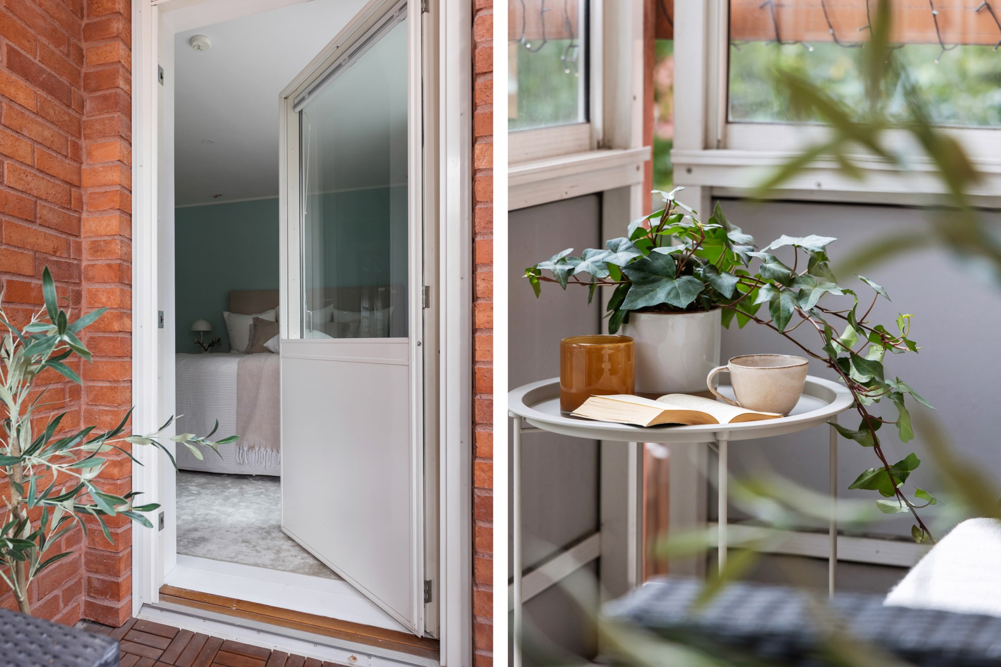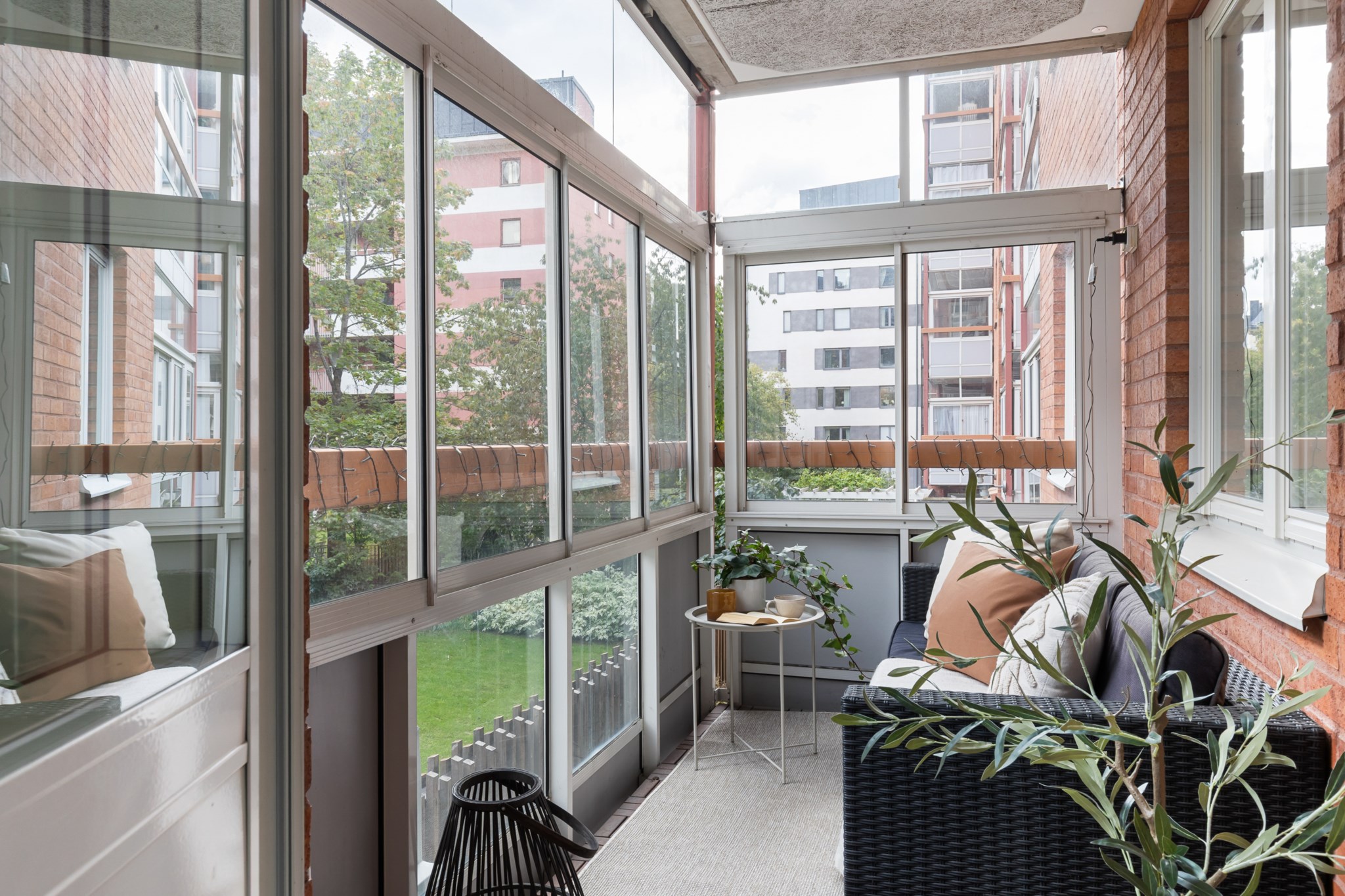 Till bostaden hör en trevlig årstunarbalkong som kan öppnas upp under de varma månaderna. Här finns gott om plats för balkong- eller loungemöbler samt växter med goda möjligheter att skapa en trivsam och avkopplande utemiljö.