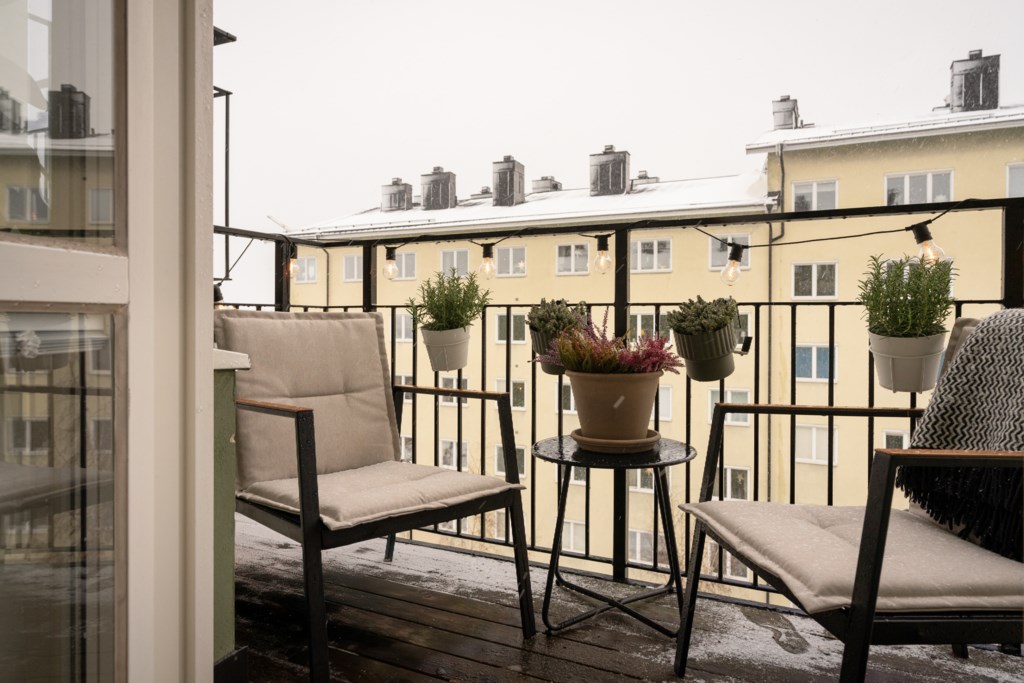 Till lägenheten hör en balkong. Här inryms utemöbler och planteringar, allt för att skapa din egen oas. Balkongen omges av svart smidesräcke. Vacker utsikt mot vattnet. Balkongen vätter i västerläge med fin utsikt.