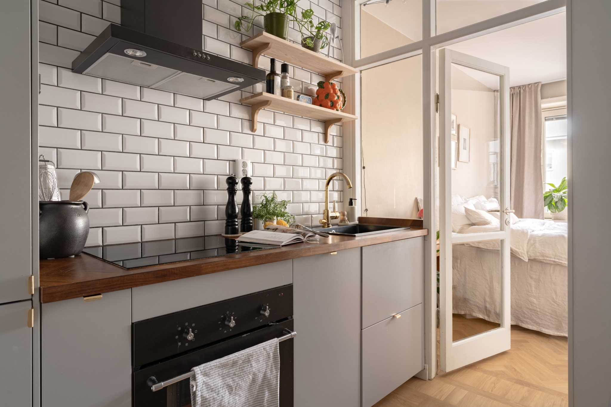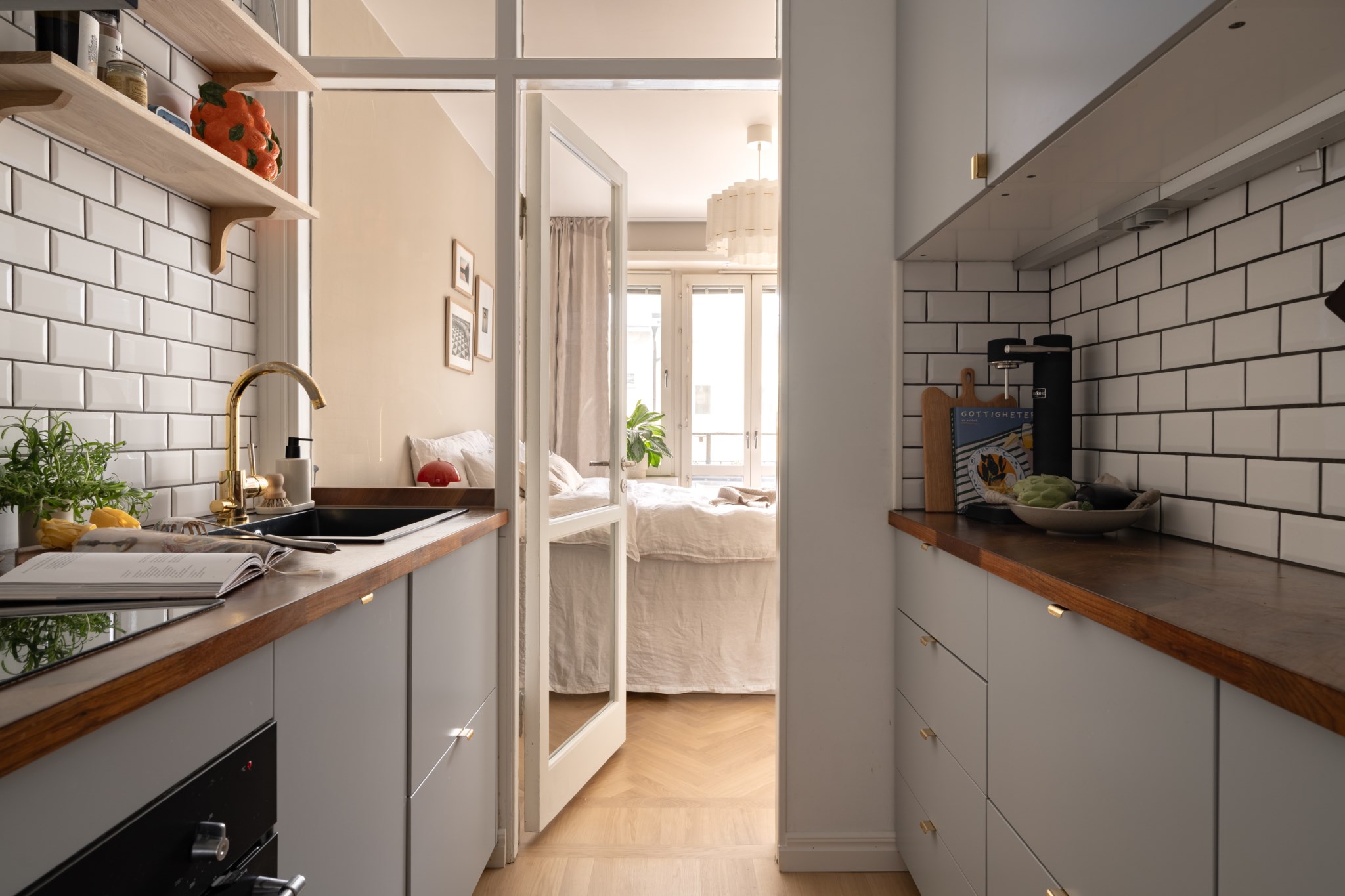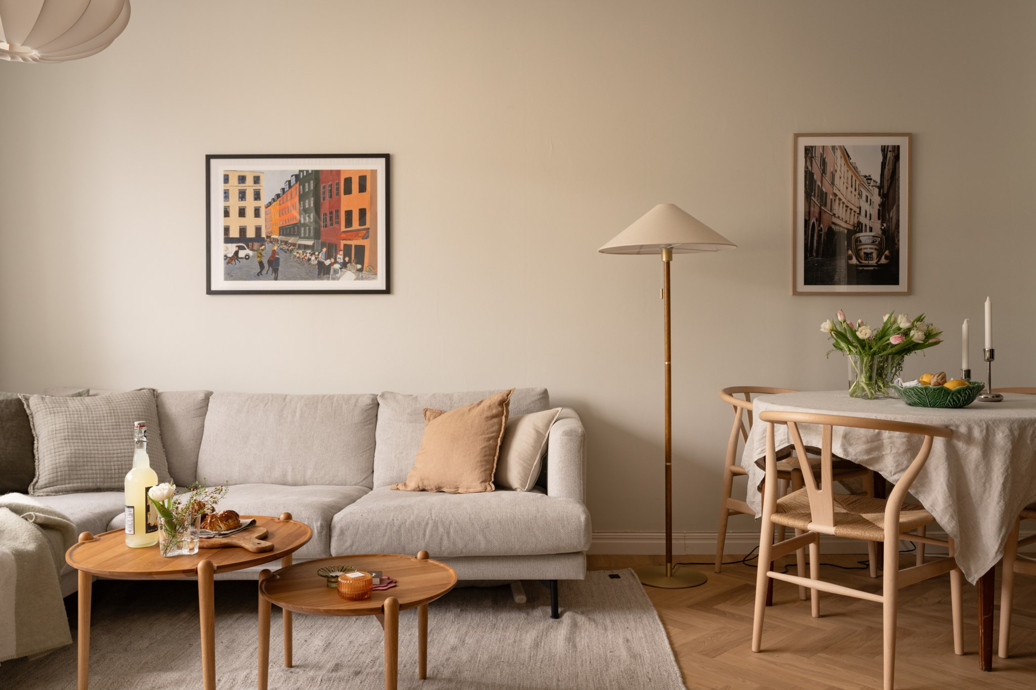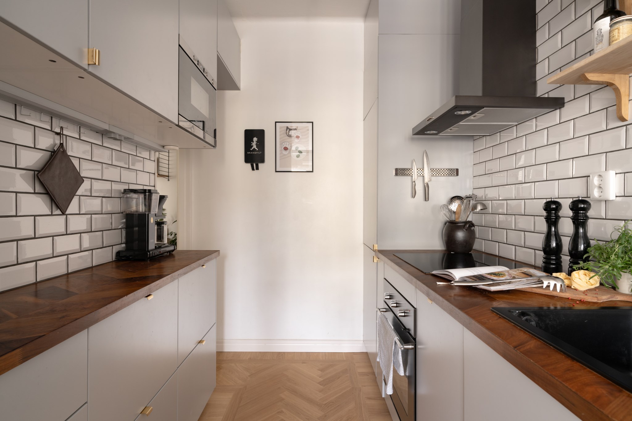 Här kan du flytta in precis som det är, otroligt fina materialval och med vacker fiskbensparkett genomgående i hela lägenheten. Ett stort och pampigt vardagsrum som rymmer både soffgrupp, matplats och kontorsplats. De stora fönstren ger ett vackert ljusinsläpp och skapar en känsla av rymd. Trevligt kök med bra arbetsyta och bra förvaring. Sovrum med plats för dubbelsäng, en garderob med skjutdörr och en platsbyggd gör att det finnns gott om förvaring. Här når du den trevliga balkongen i västläge med otrolig utsikt på våning 4!