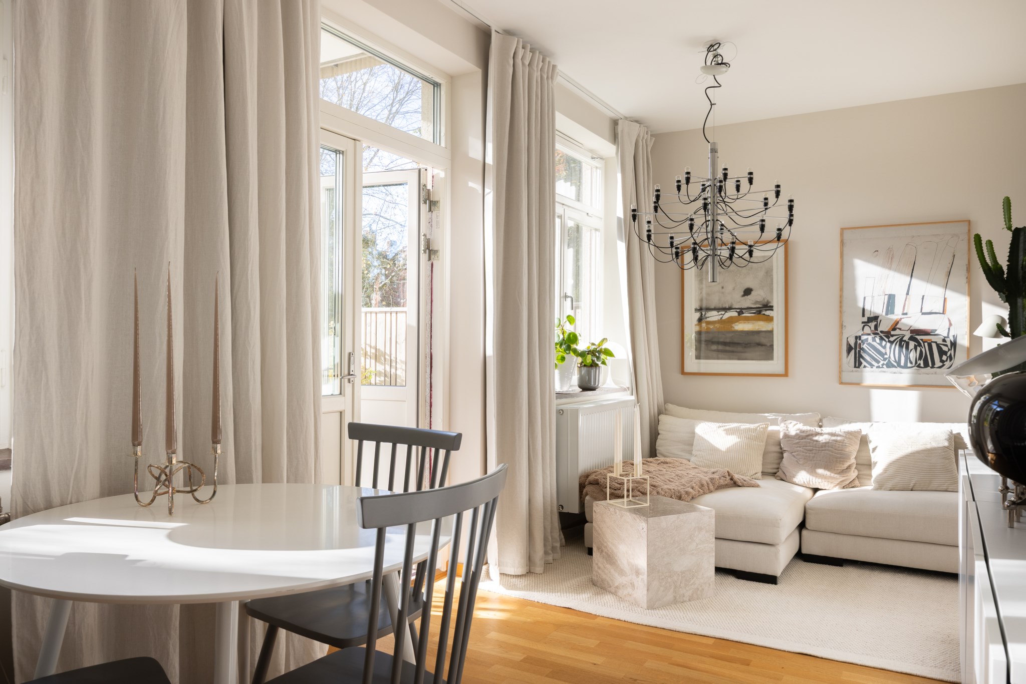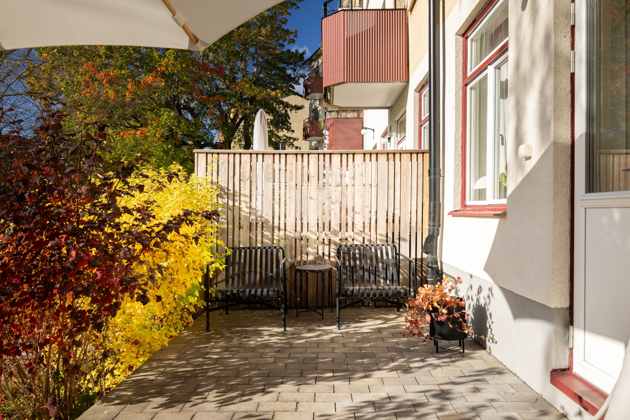 Välkommen till denna välplanerade etta med tidlösa materialval och rymlig uteplats i söderläge. Lägenheten karaktäriseras av en yteffektiv och optimal planlösning med generöst ljusinsläpp via stora fönsterpartier. Genomgående ljusa ytskikt med smakfulla materialval och öppen planlösning mellan kök och vardagsrum. Välplanerat kök med gott om förvaring och delvis maskinell utrustning från Siemens. Lättmöblerat och luftigt vardagsrum med intilliggande sovalkov. Från vardagsrummet nås även utgången till den mysiga uteplatsen om ca 16 kvm som förgyller sommarhalvåret och bidrar till en härlig radhuskänsla. Stort och helkaklat badrum med tidlöst kakel och klinker samt generösa förvaringsmöjligheter.
