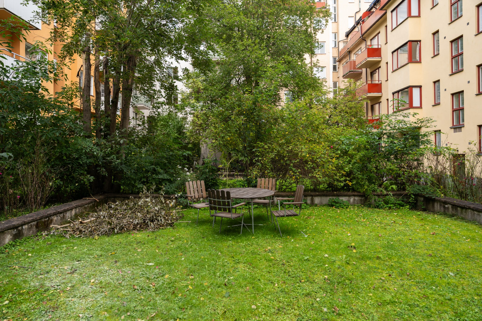 I föreningen finns flera gemensamma utrymmen att nyttja, tvättstuga och förråd. Det finns två stycken cykelrum i källaren. Föreningen har en lummig och rymlig innergård som delas med de tre andra grannföreningarna. Grillning är tillåten och utemöbler finns att tillgå.