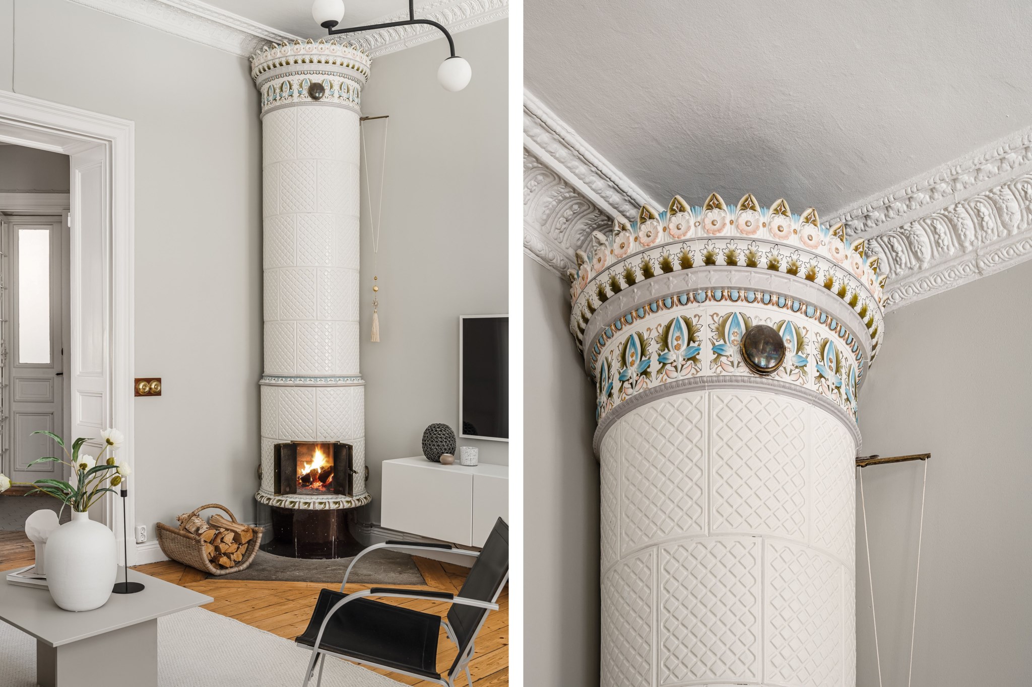 Fantastisk sekelskifteslägenhet anno 1888 med balkong, kakelugnar och och vackra originaldetaljer
