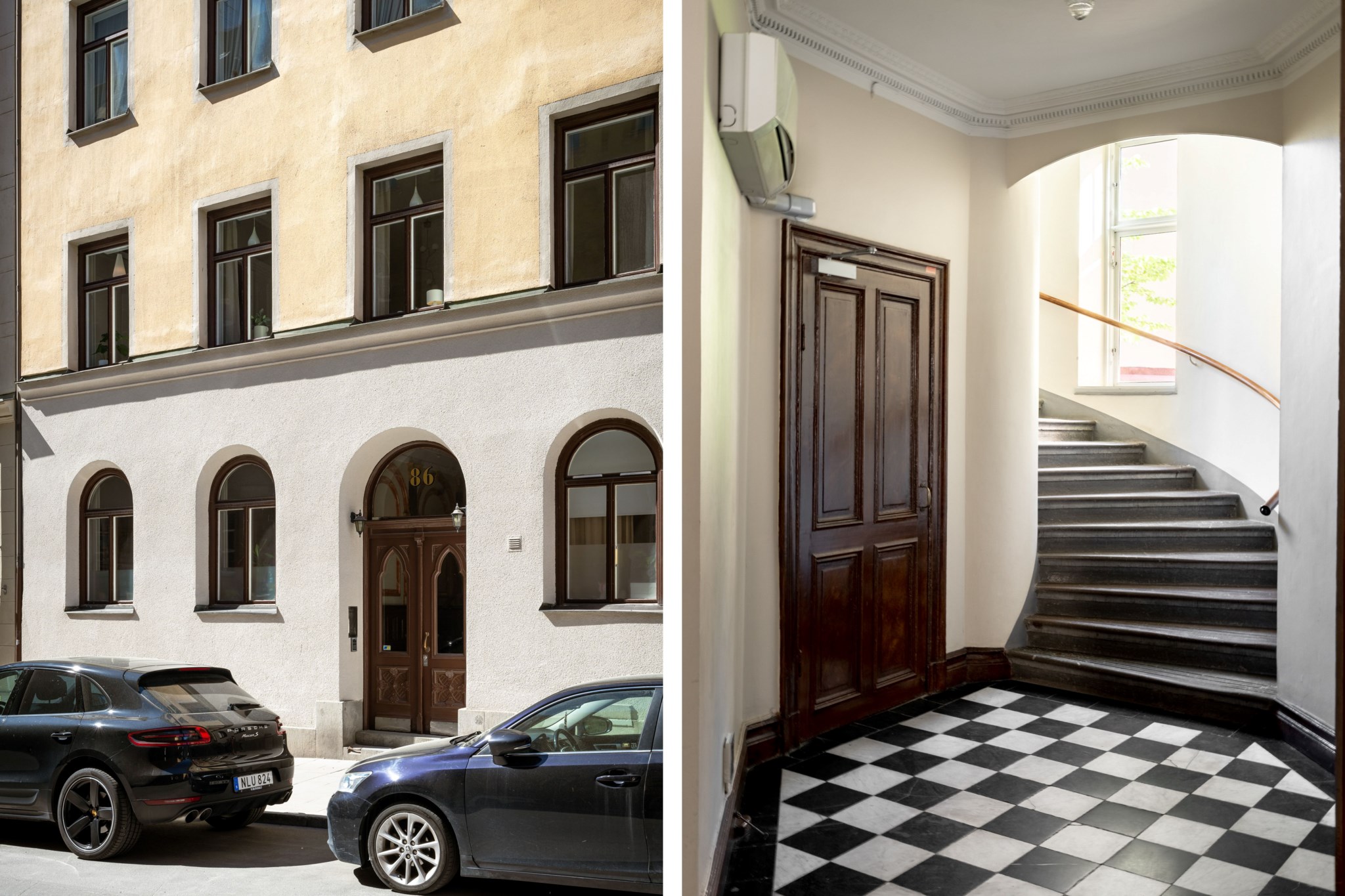 Den rymliga planlösningen erbjuder en ljuvlig balkong i soligt läge, nåbar från köket, två fullt fungerande kakelugnar, vackra takrosetter, rik stuckatur, välbevarade originaldetaljer samt djupa fönsternischer. De genomgående fiskbenslagda parkettgolven förstärker den klassiska karaktären och skapar ett exklusivt helhetsintryck, varsamt kombinerat med moderna och stilrena materialval. Det ljusa köket är fullt maskinellt utrustat och erbjuder generösa arbetsytor samt goda förvaringsmöjligheter. Helkaklat badrum med tvättmaskin och genomgående smakfulla färg- och materialval bidrar till bostadens höga standard.