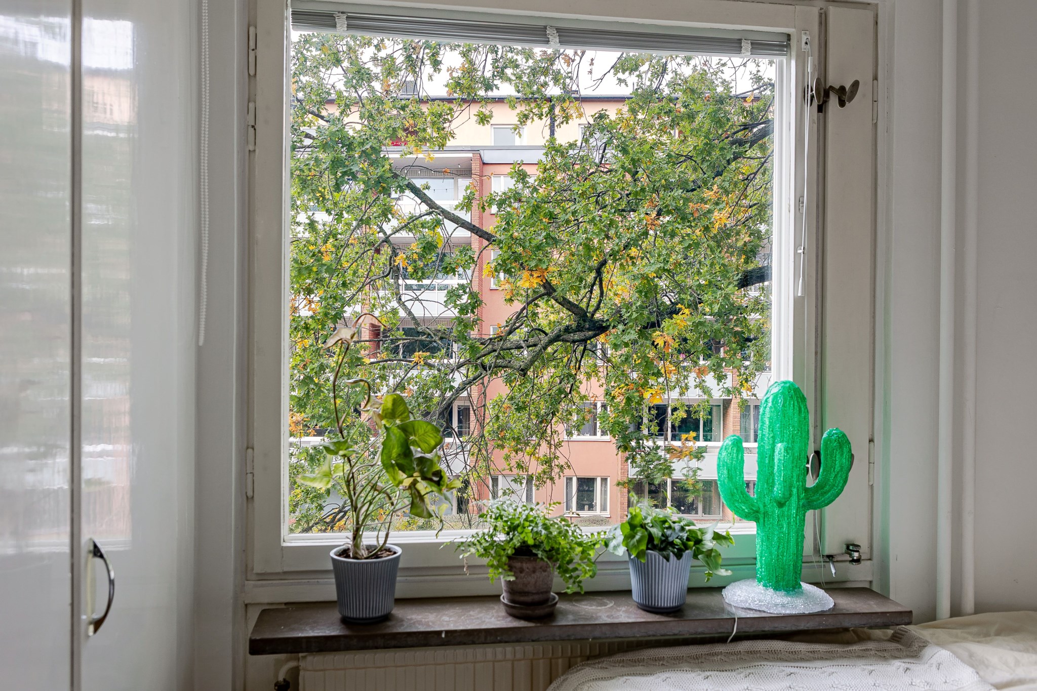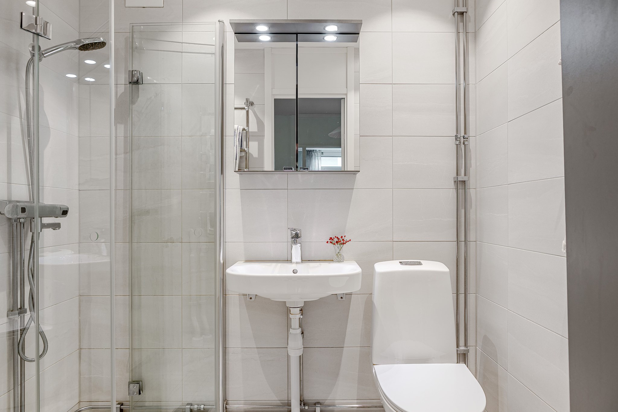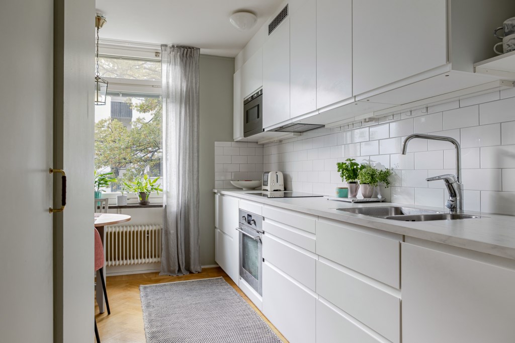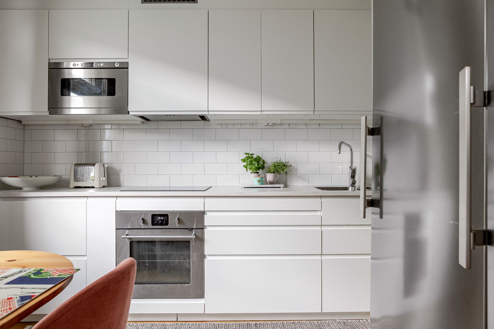 Det nyrenoverade badrummet från stambytet 2017/2018 är både stilrent och praktiskt, med förberedelse för tvättmaskin. Köket är funktionellt och inbjudande - en perfekt plats att samlas vid såväl vardagsmiddag som helgbrunch.