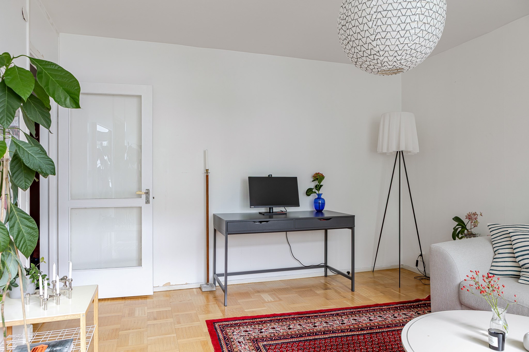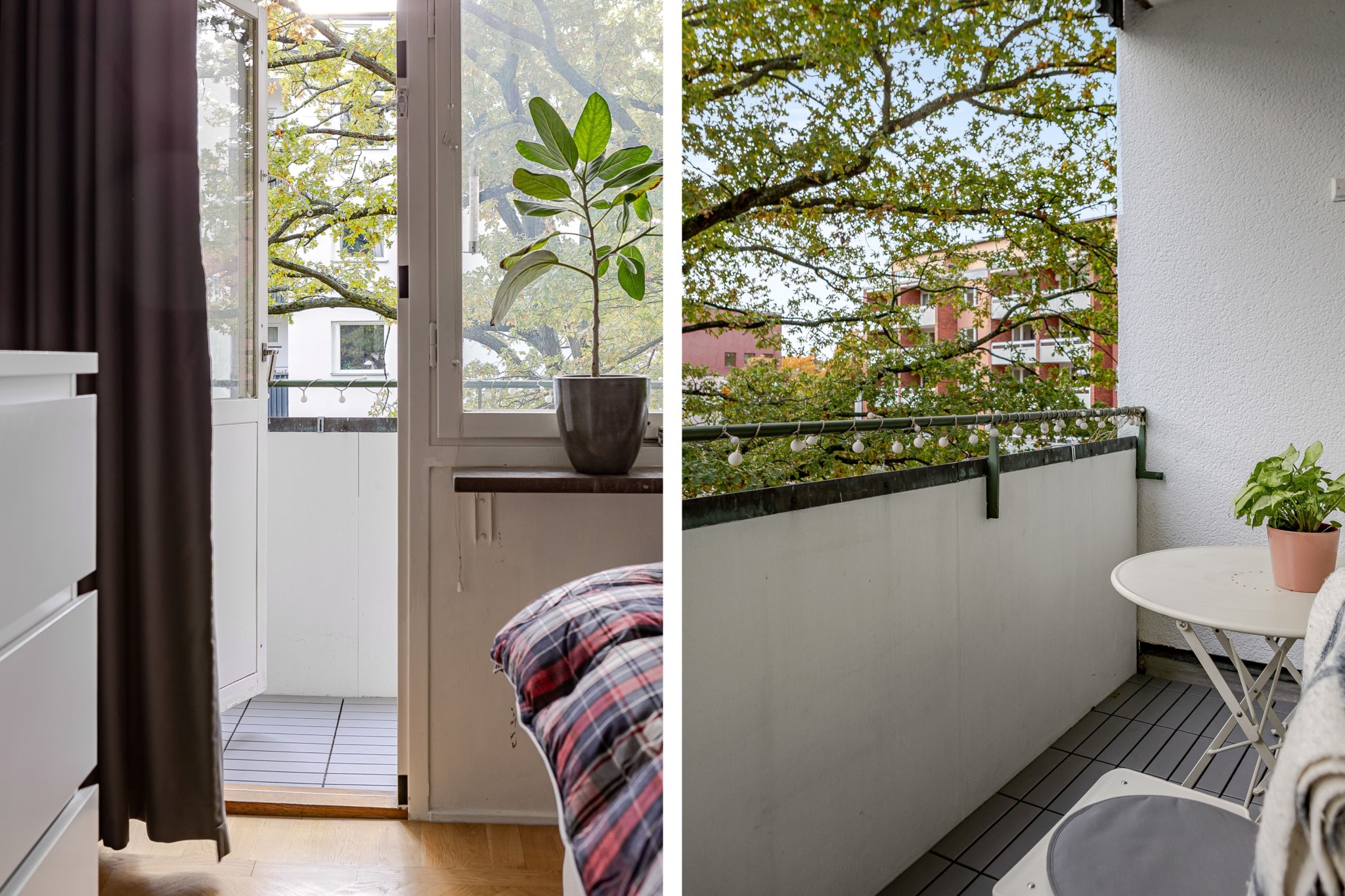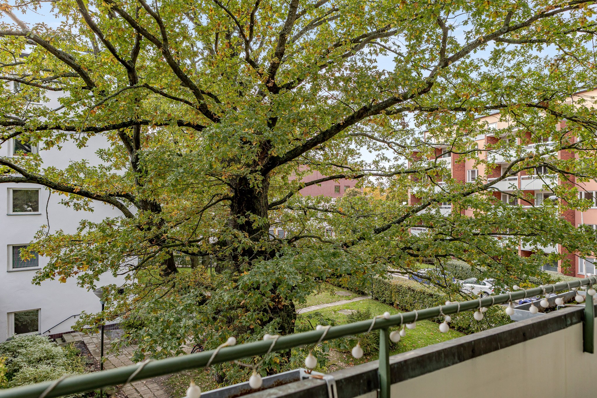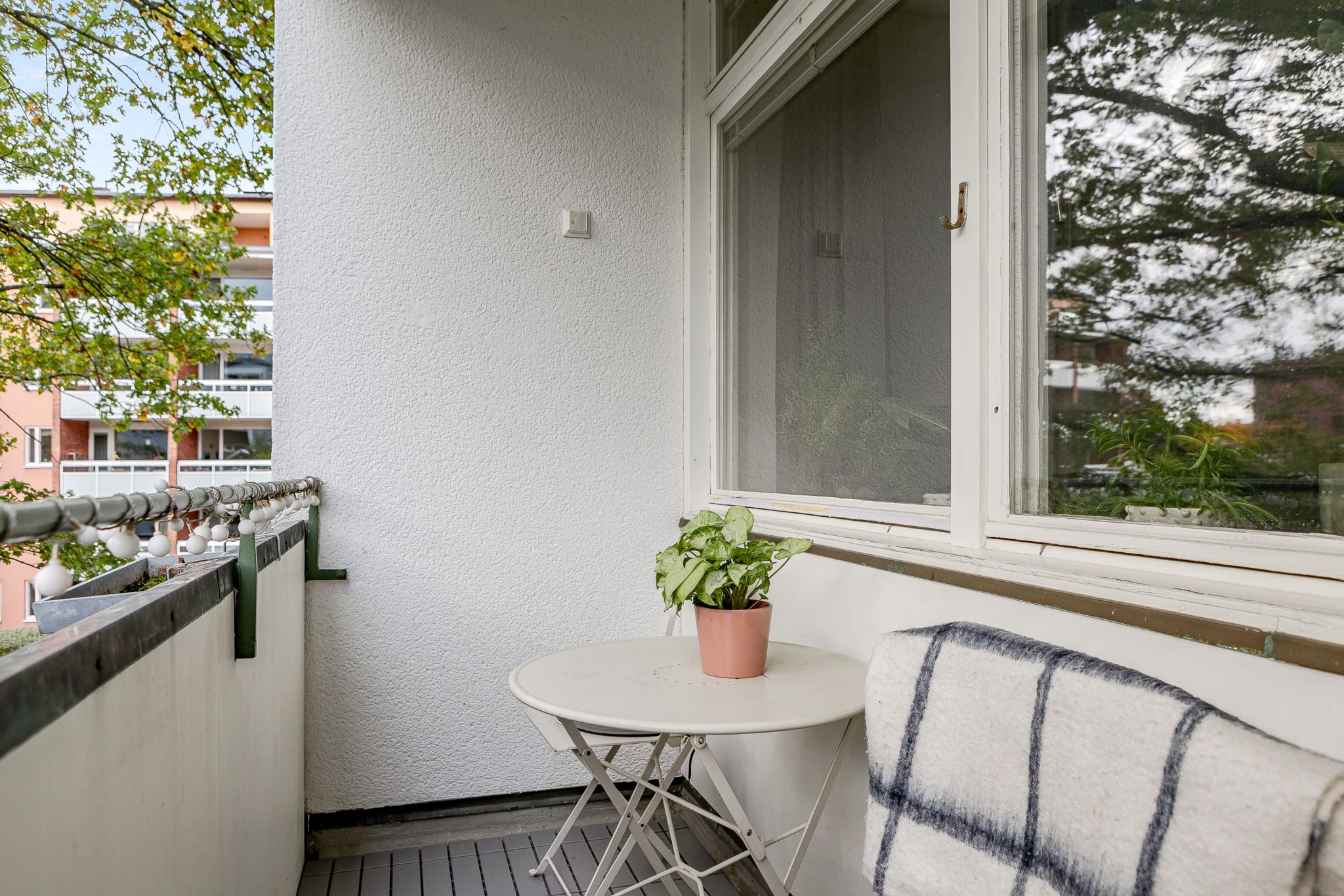 Till bostaden hör en trevlig balkong som nås från det stora sovrummet, med utsikt mot lugn grönska. Balkongen erbjuder plats för möbler och växter, med goda möjligheter att skapa en trivsam utomhusmiljö.