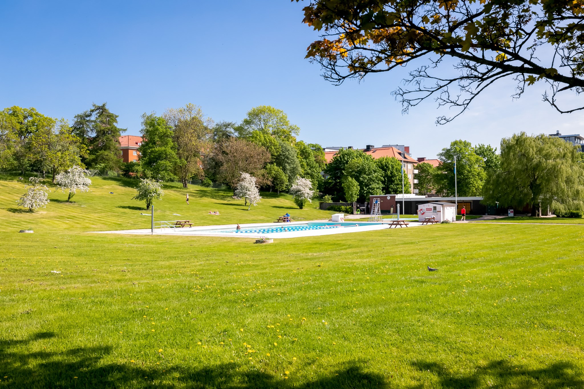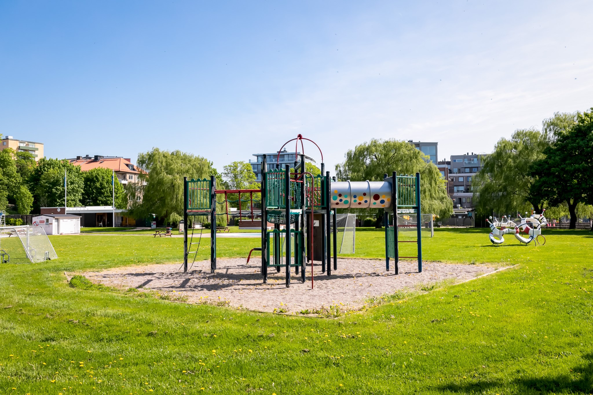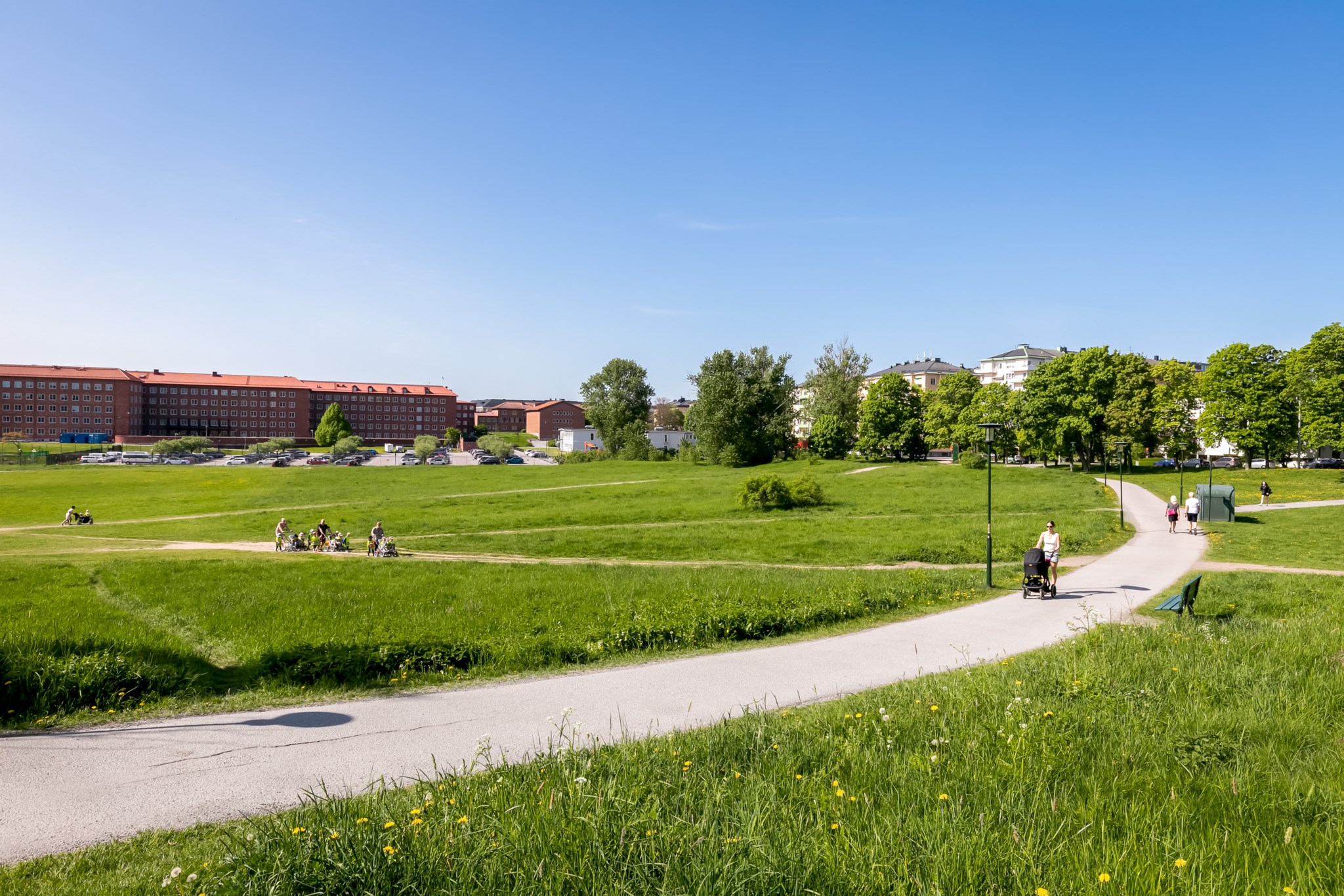 Sovrummet är ljust och charmigt med ett vackert rundat fönster samt praktisk förvaring i en hel garderobsvägg. Utöver detta finns en flexibel yta som lämpar sig utmärkt som gästrum, hemmakontor eller walk-in-closet, beroende på behov. Här bor du i ett lugnt och eftertraktat område med närhet till stora grönområden och parker, samtidigt som stadens puls finns inom bekvämt räckhåll – en perfekt kombination av natur och stadsliv.
