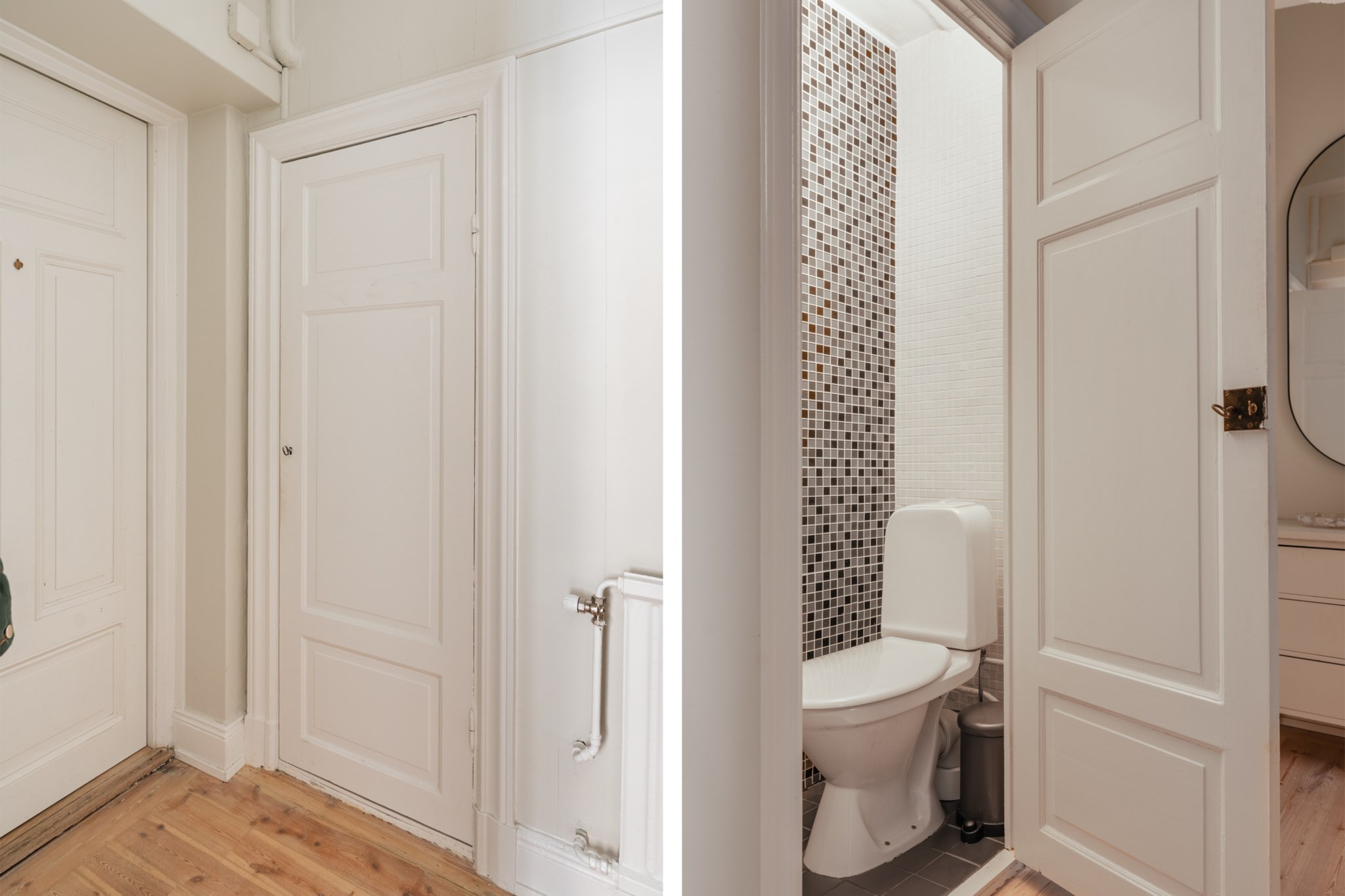 Med kakel och klinker. Här finne en WC.