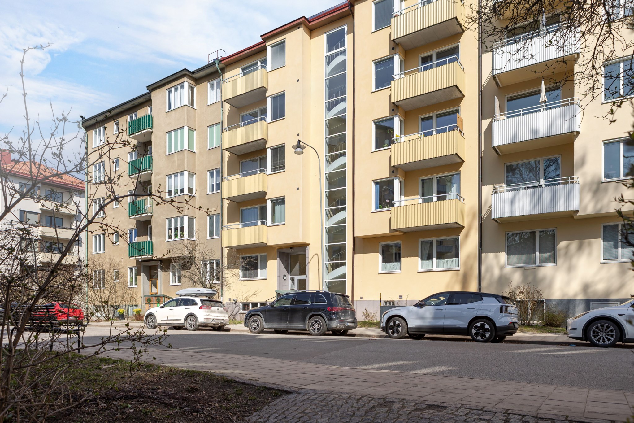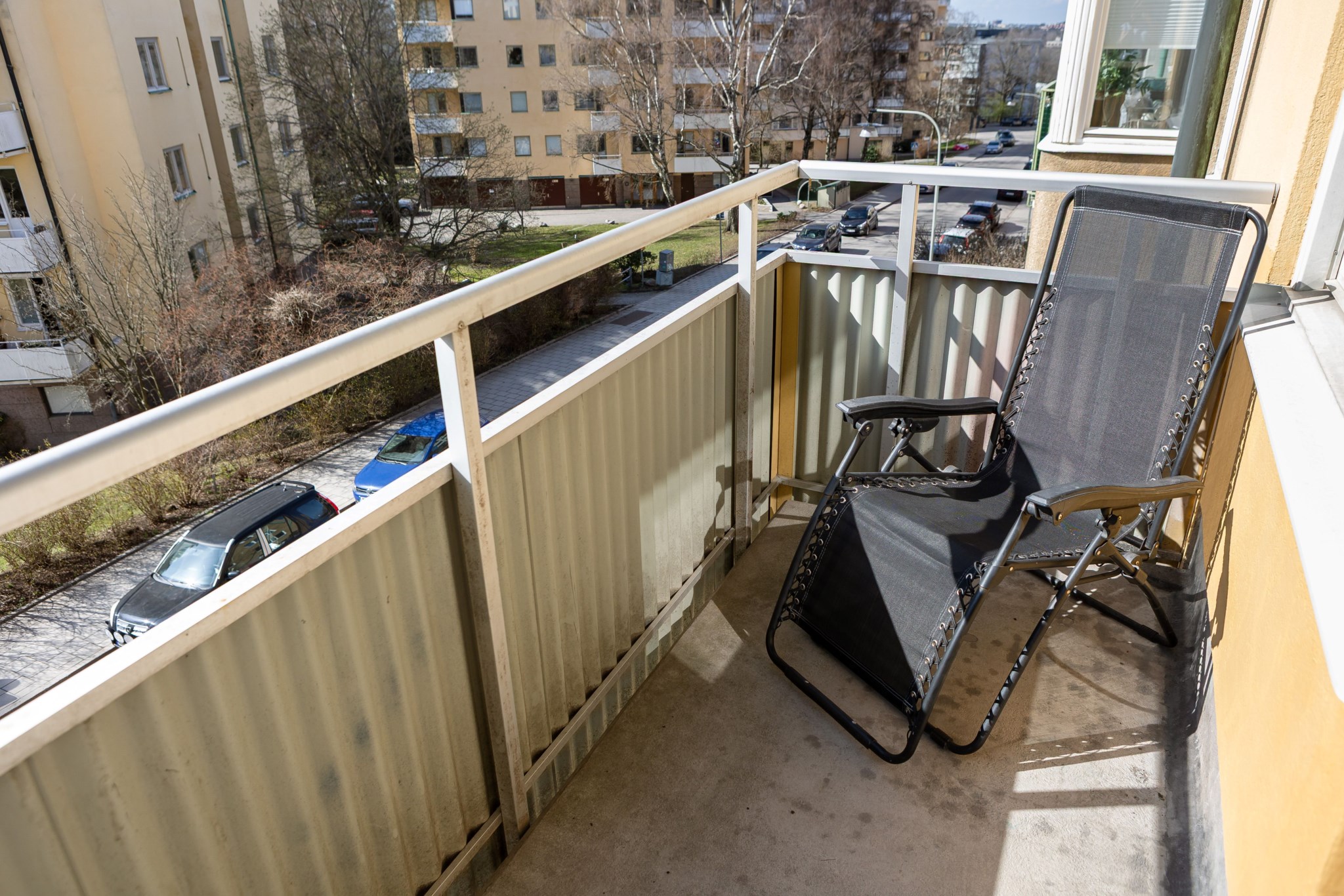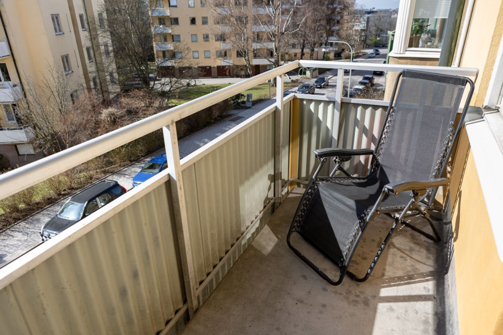 Från bostaden når du den härliga balkongen i soligt söderläge, lugnt belägen mot en stillsam gata – en perfekt plats för morgonkaffet eller avkoppling i eftermiddagssolen.