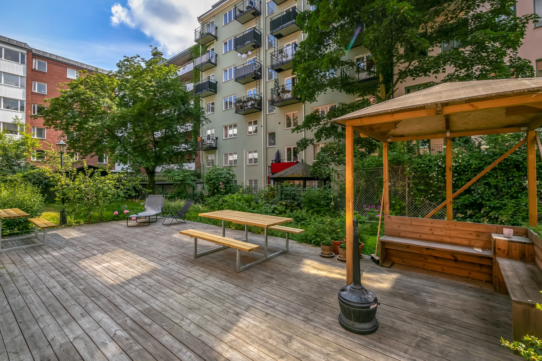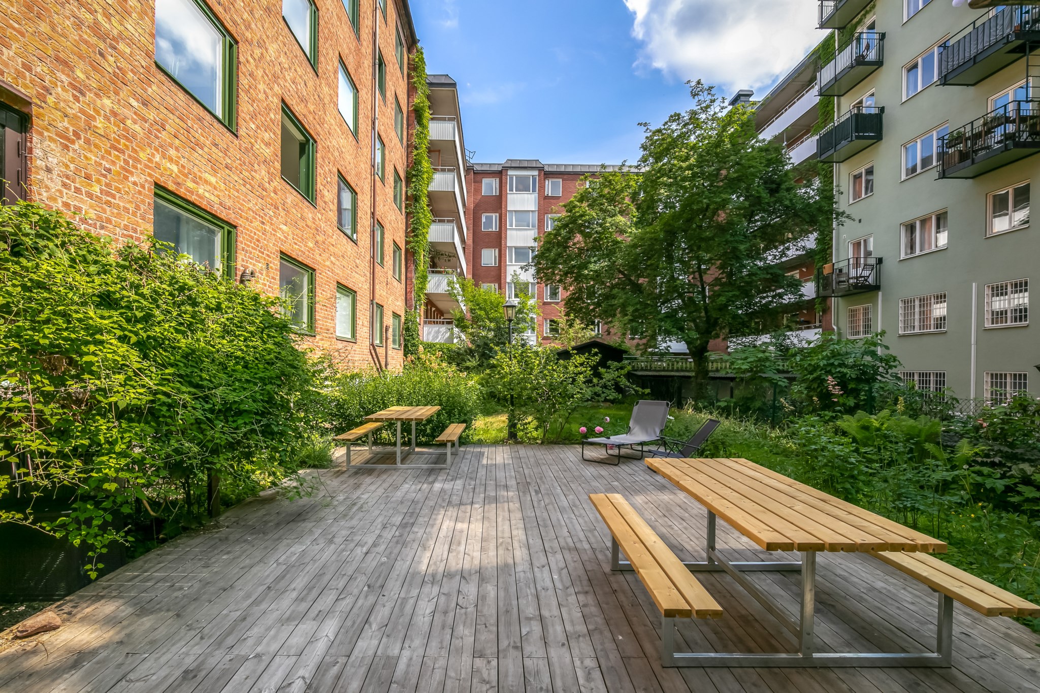 Här bor ni i hjärtat av Södermalm, med närhet till allt ni kan önska er med bara ett par minuter till T-banan (gröna linjen - hållplats Medborgarplatsen) och en kort promenad till såväl Medborgarplatsens utbud av butiker och nöjen som Mosebackes vackra utsikt över Stockholm. Mängder av småbutiker och caféer i kvarteren runtomkring och promenadvänliga gator med mysigt folkliv. I närheten ligger Götgatsbacken med shopping och bra restauranger i Brunogallerian samt Skrapan som nås på några få minuter.