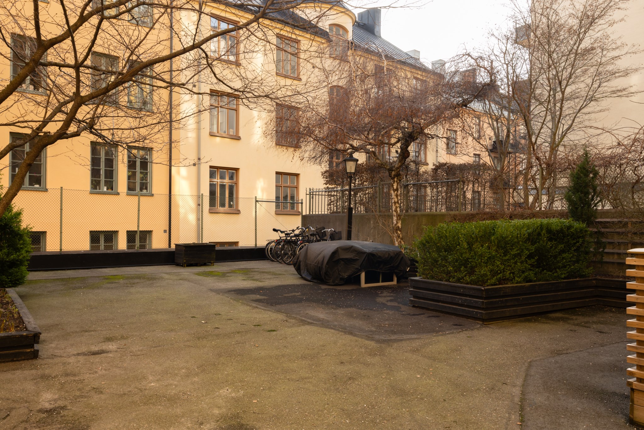 - Cykelförråd finns i källaren i gårdshuset och cykelställ finns på gården. Soprum med access från gatan.