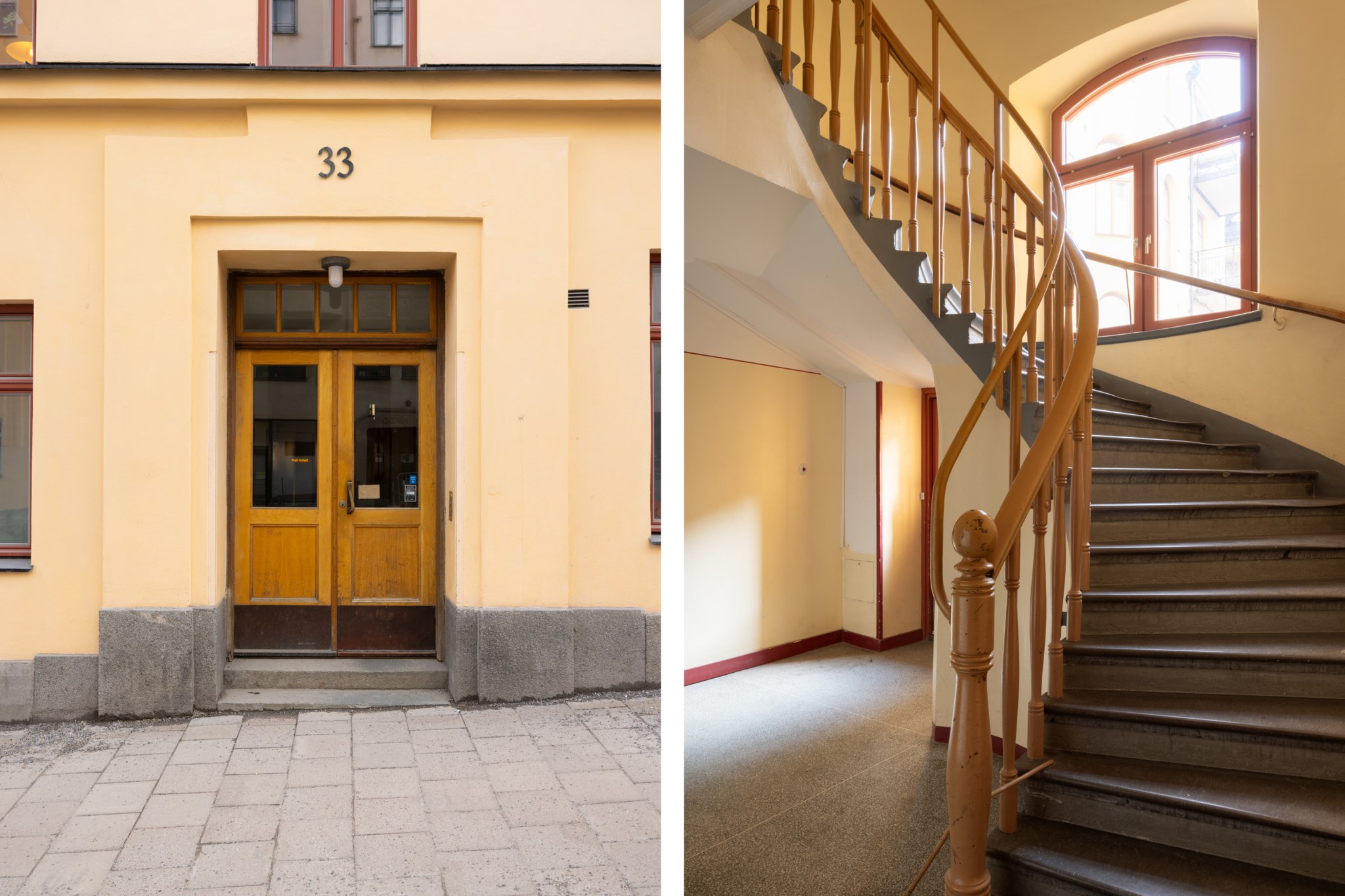 - Barnvagnsrum och cykelrum på bottenplan i gatuhuset tillgängligt utan trapp från gatan.